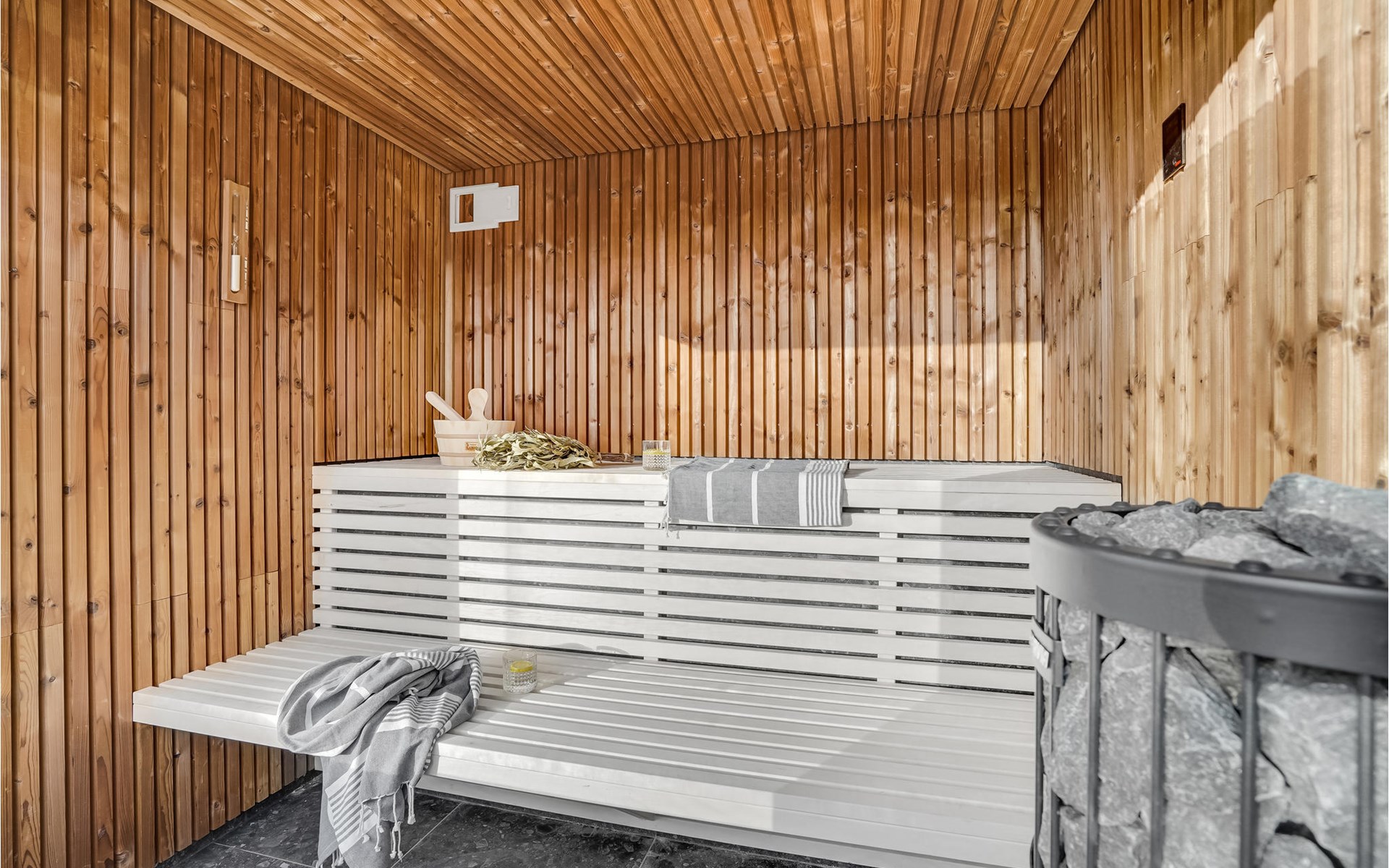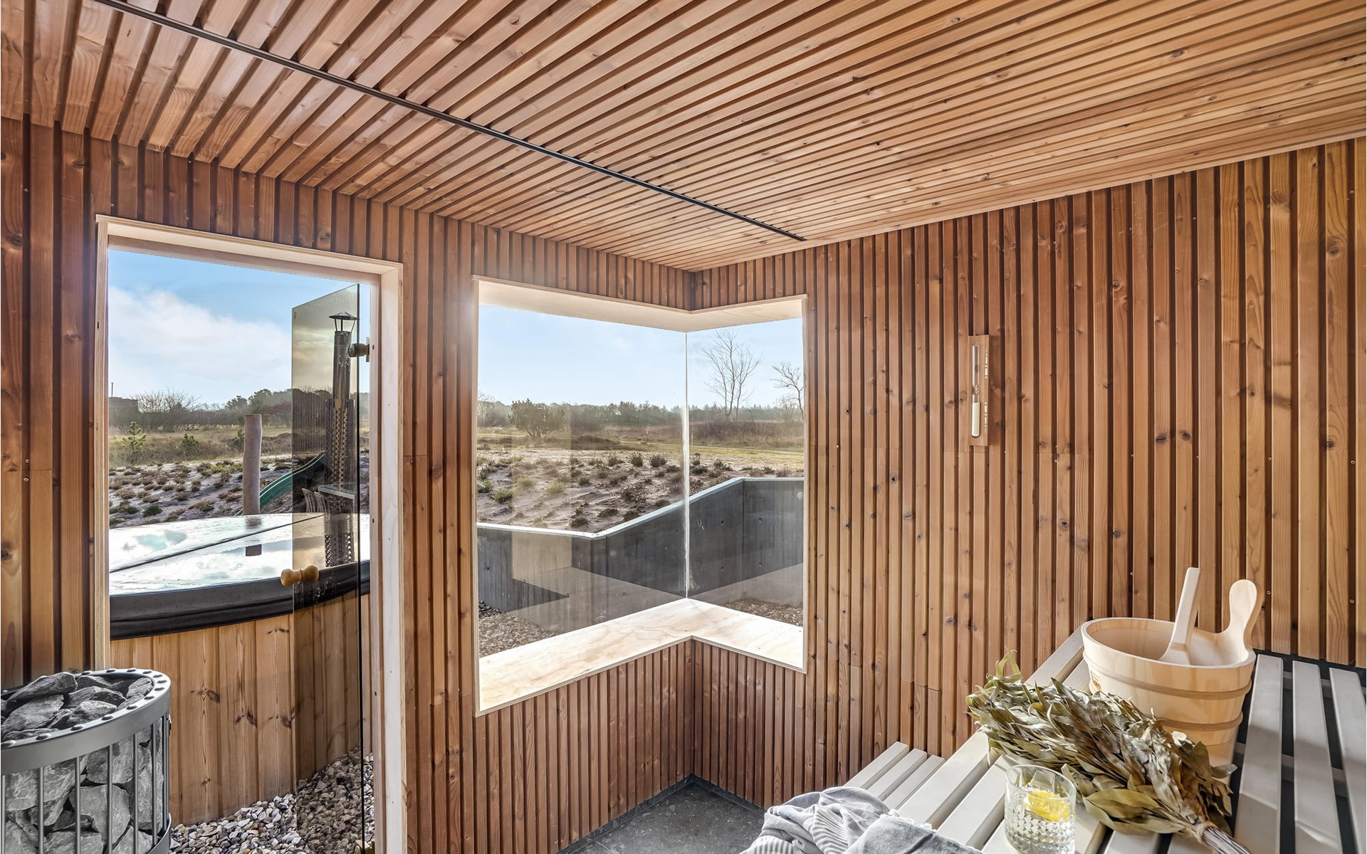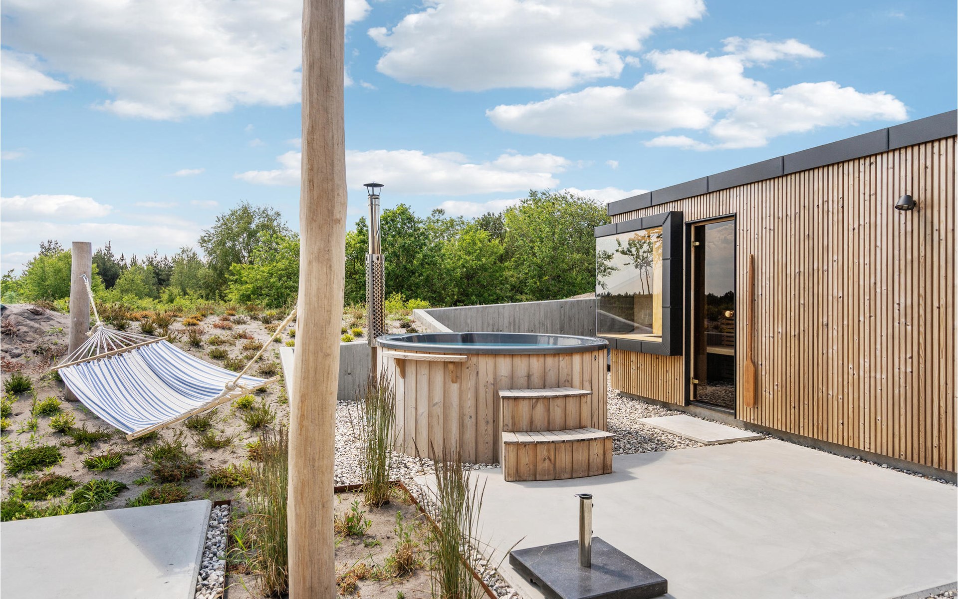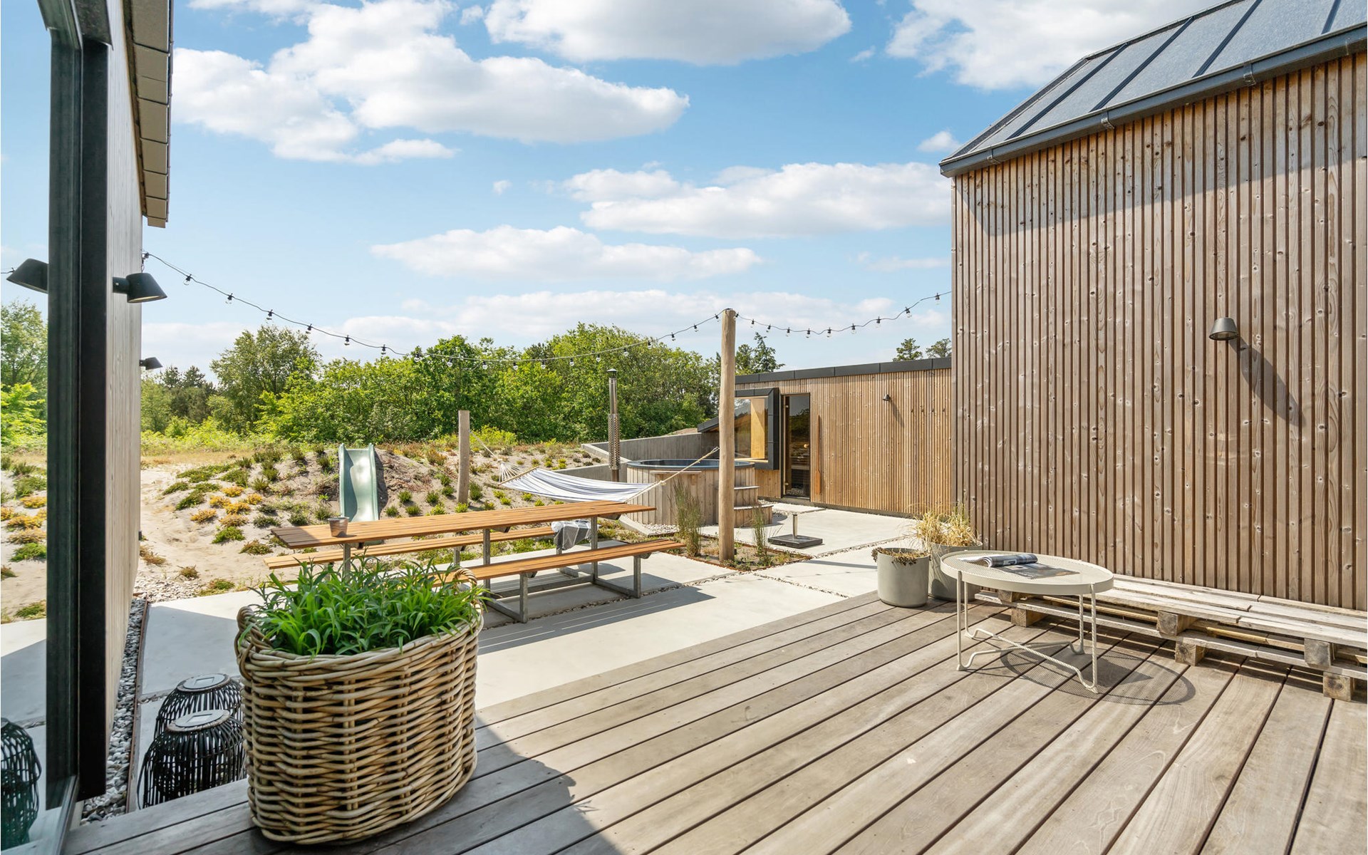 Geniet van heerlijke uren buiten op het terras van het vakantiehuis. Of het nu gaat om zonnebaden, een middagbarbecue met het hele gezin of een paar drankjes in de buitenlucht aan het einde van een heerlijke vakantiedag, je hebt hier alle mogelijkheden. Rond de ervaring af met een duik in het Finse houten bad onder de sterren.