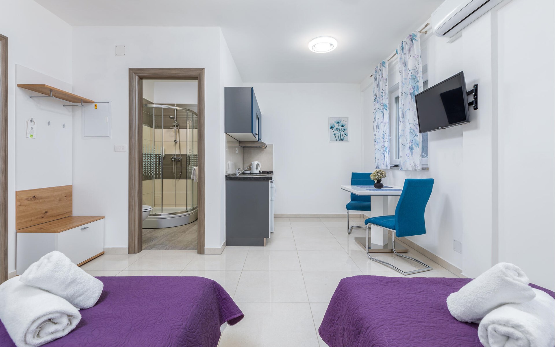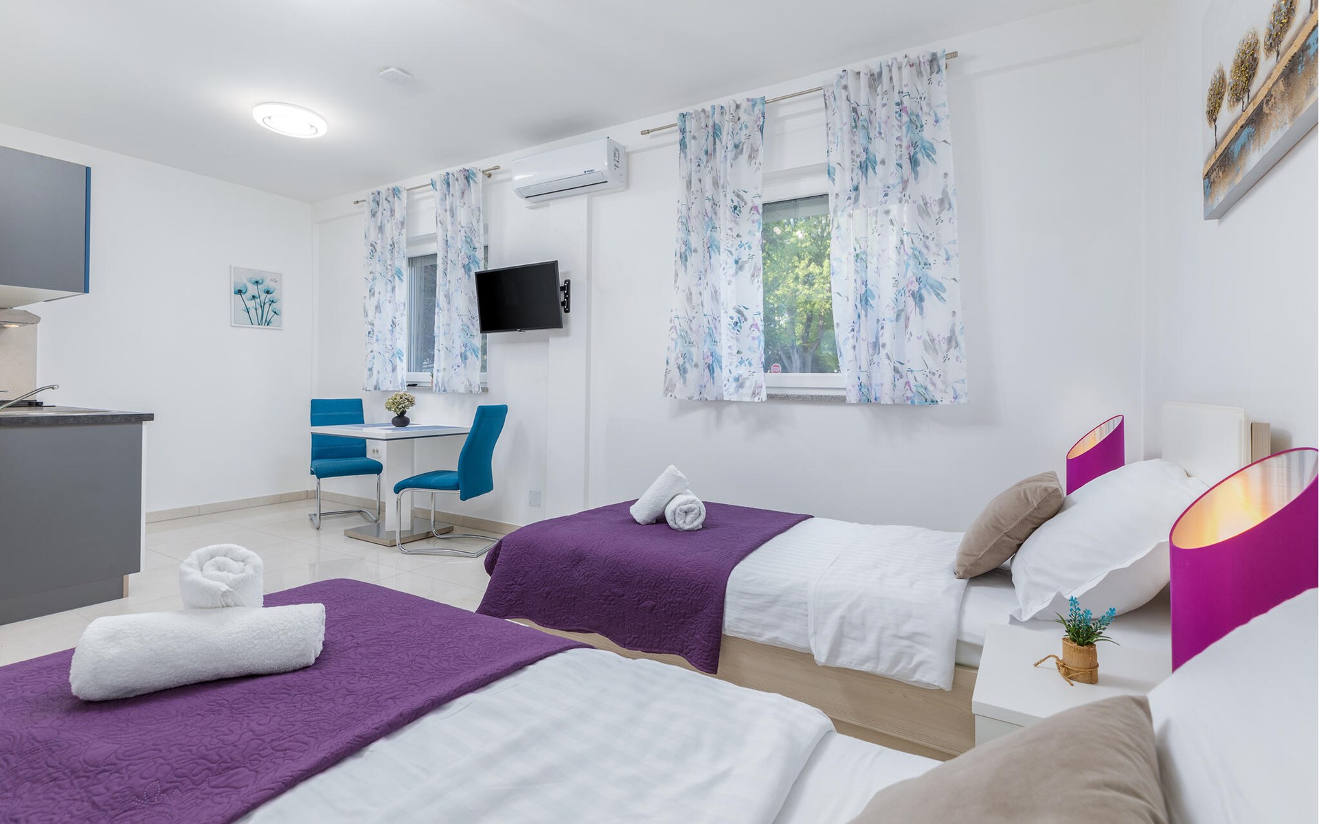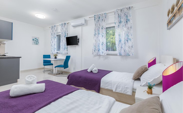 Deze vriendelijke studio biedt je een comfortabel, klein tijdelijk thuis in het hart van Pula, terwijl je elke dag nieuwe bezienswaardigheden rond de bruisende kuststad ontdekt. Plan je activiteiten voor de komende dag aan de uitnodigende eettafel, bereid kleine maaltijden in de open keuken en stream een film of verdiep je in een goed boek na een lange dag.