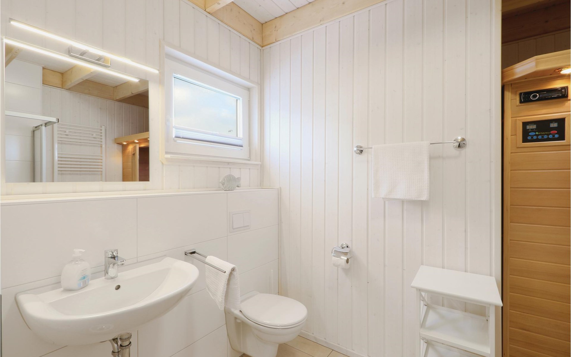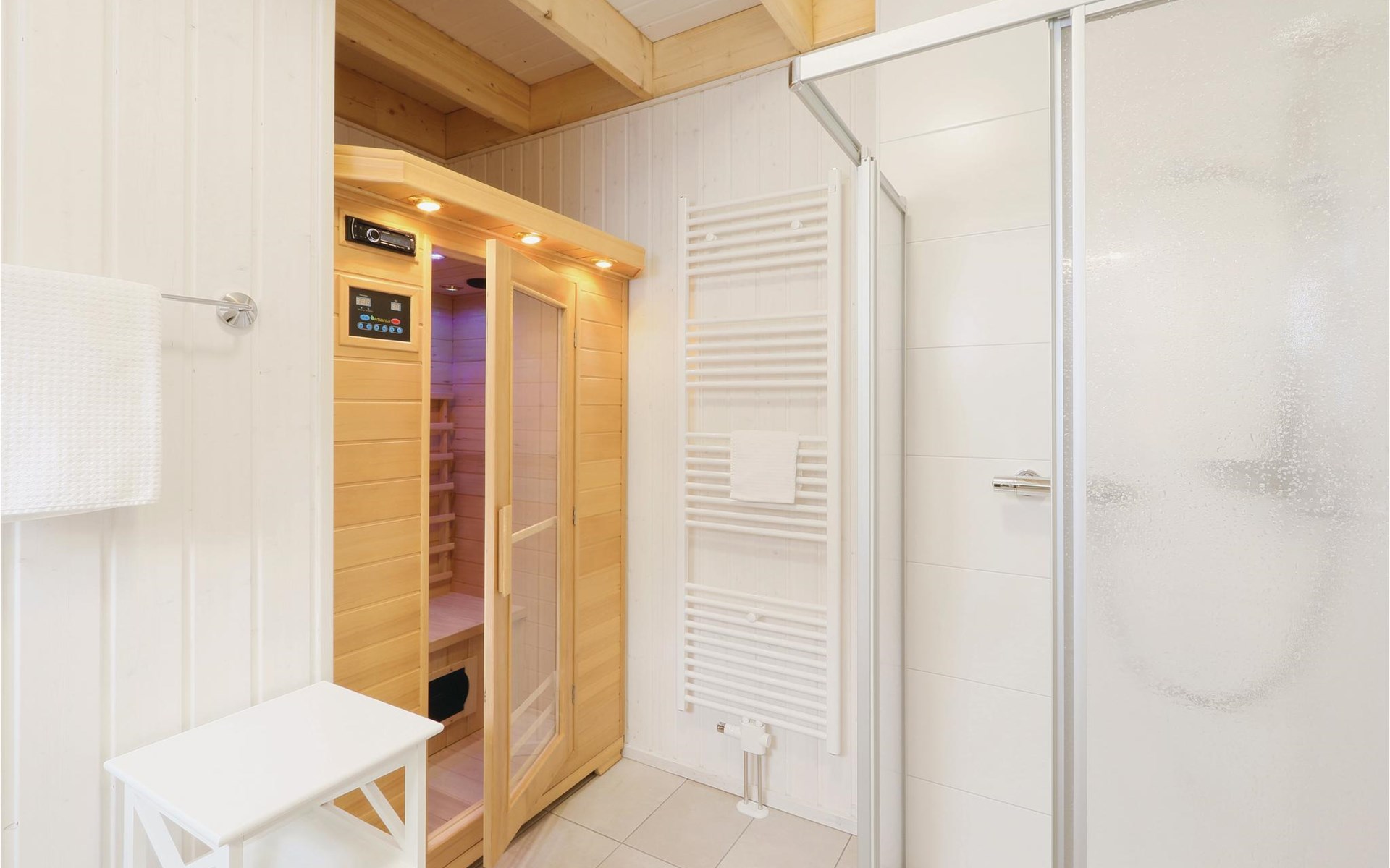 Het hoogtepunt van het huis is de infrarood warmtecabine in de badkamer. Hier kunt u heerlijk ontspannen na een lange wandeling op de Oostzee. De twee slaapkamers zijn uitgerust met een gezellig tweepersoonsbed en twee eenpersoonsbedden. Twee andere slaapplaatsen bevinden zich in het woongedeelte van het huis. Hier kunt u het uzelf ook comfortabel maken met de hele familie voor de knisperende open haard.