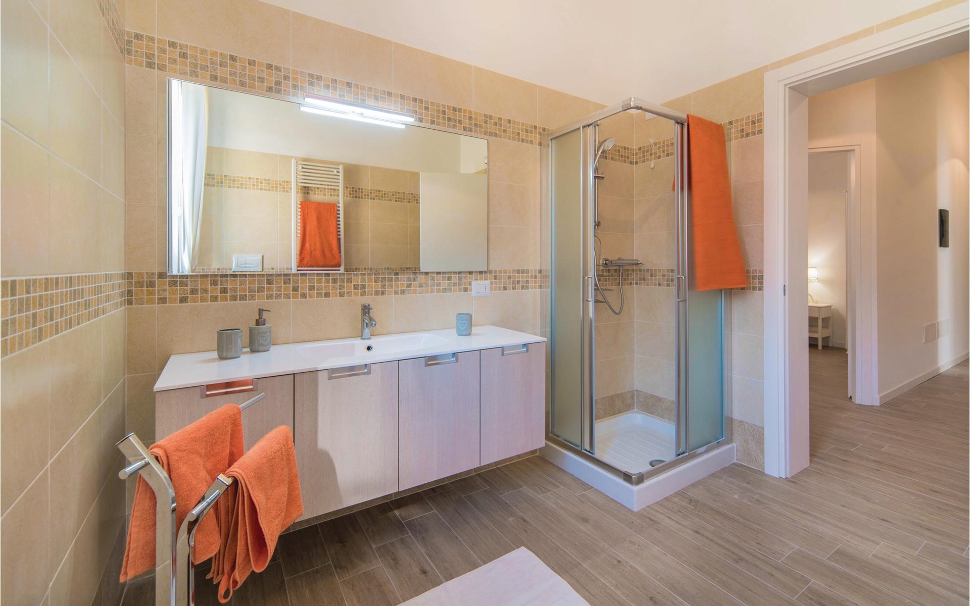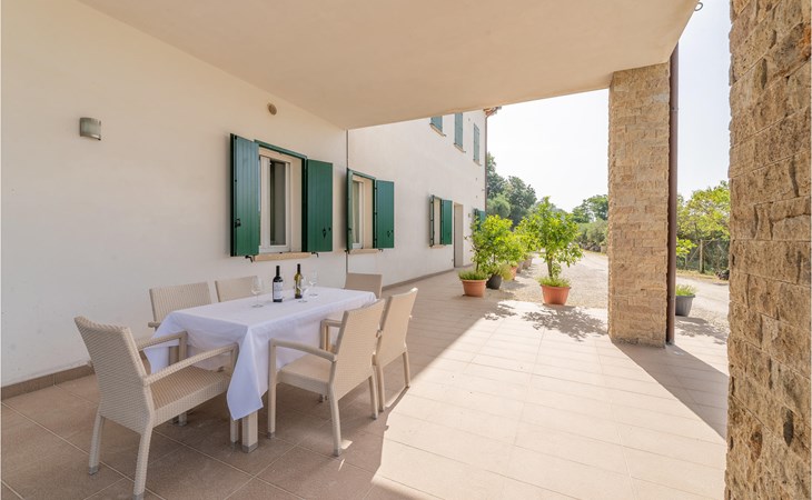 Gezellige, ruime en lichte flat op de begane grond in Valnogaredo (Padua) op de Monte Venda, een van de meest fascinerende van de Euganeese heuvels. Het appartement ligt, samen met drie andere eenheden, op een landelijke boerderij met een gemeenschappelijk zwembad, grenzend aan de wandelpaden van de Monte, waar gasten kunnen genieten van lange en ontspannende wandelingen. De eigenaren beheren een boerderij en restaurant, bekleed met trachietsteen uit de Euganeese heuvels en hout. Hier kunt u de lokale gerechten proeven, met name de pasta gemaakt met tarwemeel en het spit gekookt op houtskool; deze worden uitsluitend bereid met zelfgemaakte producten en de producten kunnen worden gekocht en/of geproefd. Op de boerderij wordt ook vee gehouden: Varkens, hanen, kippen, fazanten, kwartels, eenden en konijnen, en zoetwatergarnalen (kreeften) worden gekweekt in kweekvijvers. Een ideale bestemming voor wie op zoek is naar ontspanning, contact met de natuur en lekker eten, zonder af te zien van de mogelijkheid om de belangrijkste kunststeden in de omgeving te bezoeken, zoals Padua (33 km), Venetië (69 km), Verona (75 km), de beroemde thermale baden van Abano Terme en niet te vergeten het Gardameer (154 km) met zijn pretparken (op ongeveer een uur rijden). Gazebo met tafel en stoelen voor exclusief gebruik. De eigenaren organiseren tegen betaling rondleidingen en excursies voor hun gasten. Zie ook IVC218, IVC220.