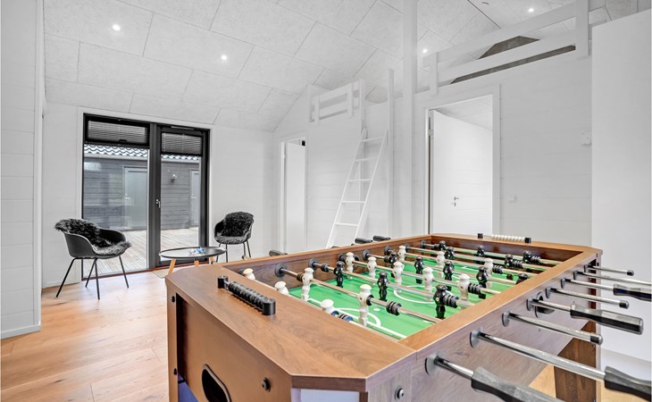 In een modern, slim ontwerp vindt u alle meubels die u nodig heeft voor een ontspannen en teruggetrokken vakantie. Alles straalt kwaliteit en levensvreugde uit: lekker ontspannen in de sauna na één van uw lange strandwandelingen, of een middagje spelletjes doen met vrienden of familie in de activiteitenruimte. De inrichting en de ligging zullen u telkens weer verrassen.