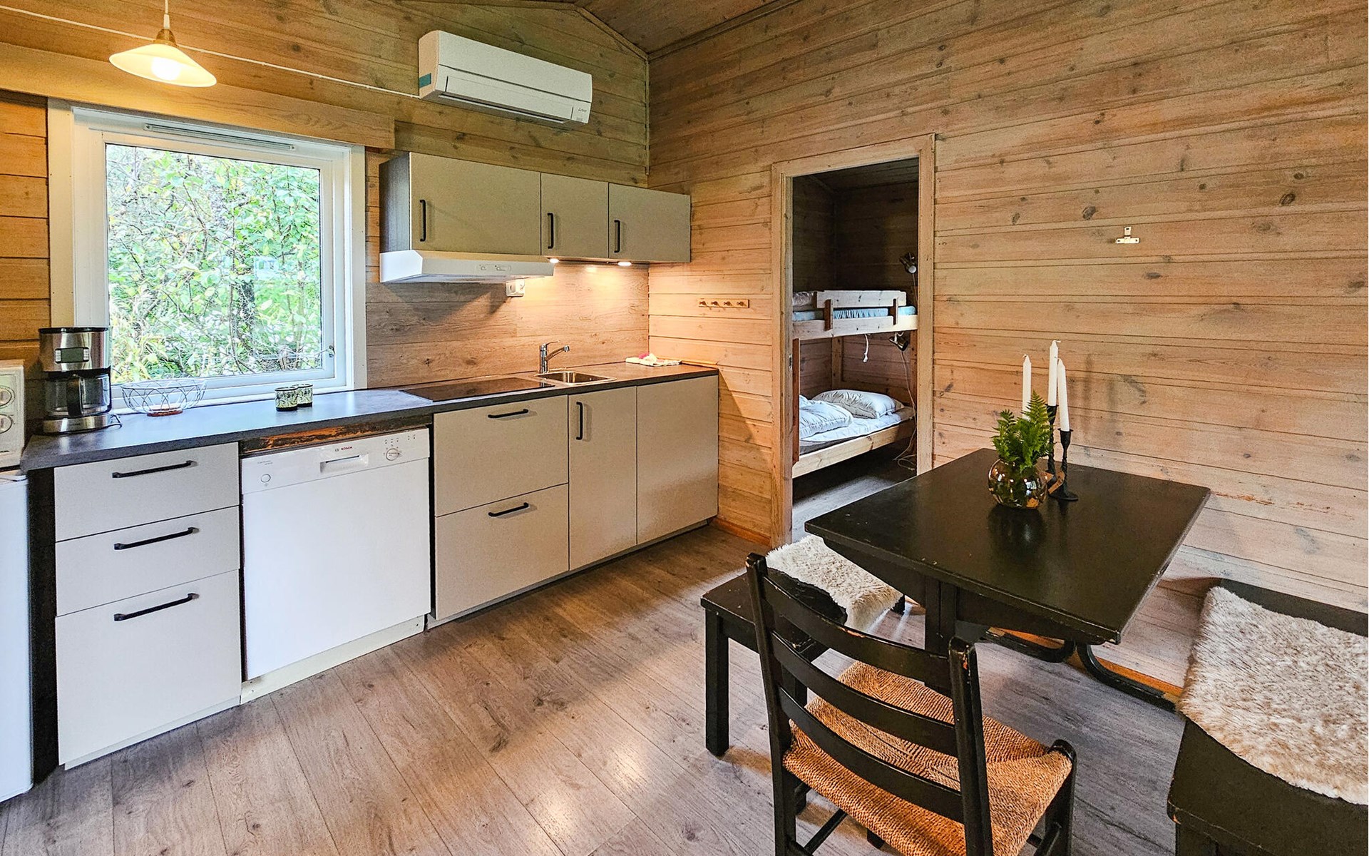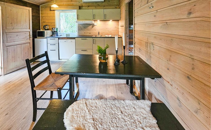 Beleef een heerlijke tijd in dit houten huis, dat je een prachtige locatie midden in de Noorse natuur biedt. Geniet van het warme, gezellige interieur met veel hout en grote ramen die een prachtig uitzicht op het platteland bieden. Maak het jezelf gemakkelijk op de bank of breng gezellige uren door aan de eettafel. Kook eenvoudige maaltijden in de aantrekkelijke, open kitchenette.
