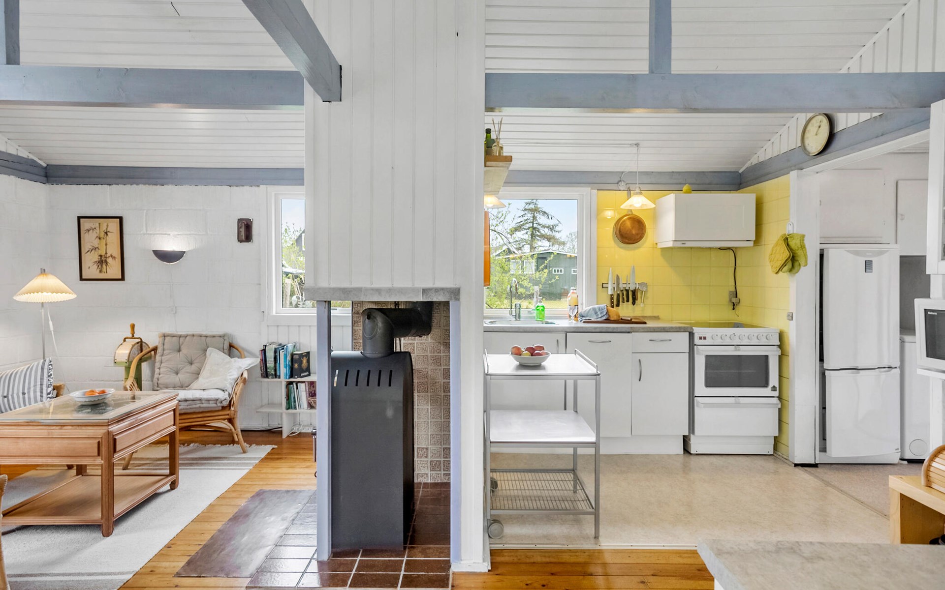 Je functioneel ingerichte vakantiehuis biedt een solide basis voor ontspannen dagen in een natuurlijke omgeving. Geniet van de nabijheid van de Oostzee en verheug je op de lichte woonkamer van je vakantiehuis, die is uitgerust met functionele meubels. Gebruik de zithoek voor een kopje thee of een bordspel en bereid je maaltijden in de open keuken met uitzicht op de tuin. De centrale houtkachel zorgt voor gezellige warmte op koelere dagen. De grote ramen zorgen voor veel licht in de kamers en creëren een vriendelijke en open sfeer.