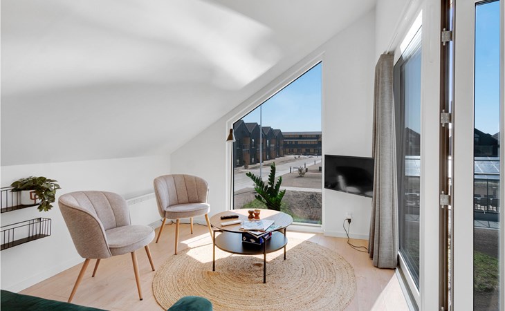 Uw appartement maakt deel uit van een modern vakantiegebied aan de rustige haven in Mullerup. Daarom wordt uw vakantie ook onvergetelijk dankzij de mooie zomerdagen op het terras, waar u met een glas wijn of een koud bruisend drankje kunt genieten van het uitzicht op zee over de Grote Belt, terwijl de geur van eten van de gasgrill zich langzaam verspreidt.