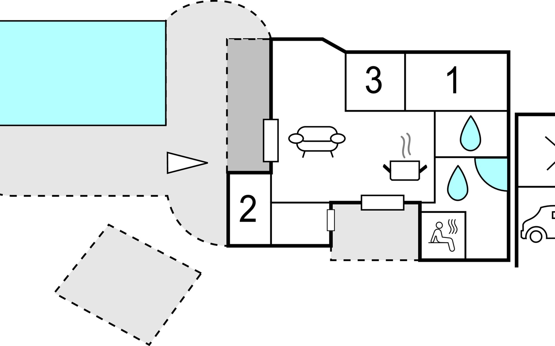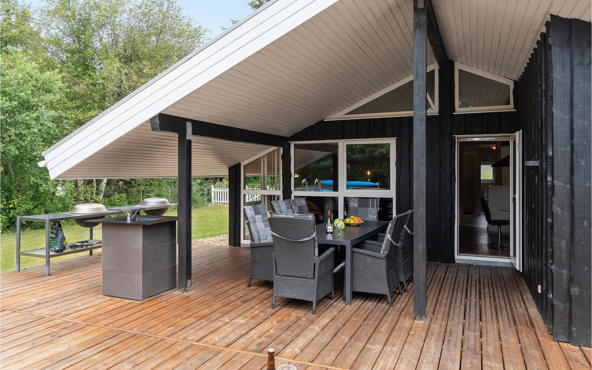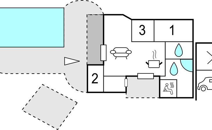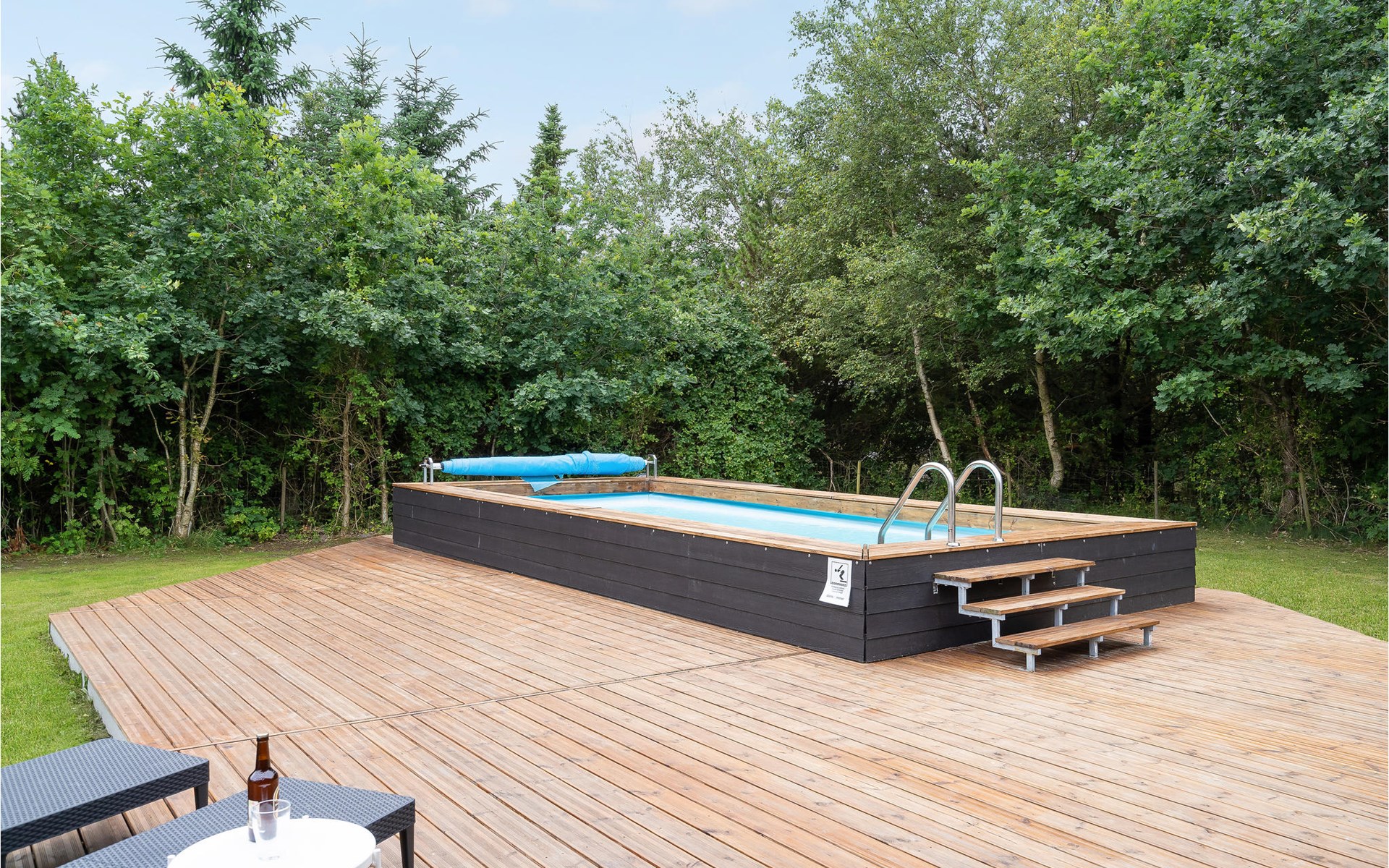 Vanuit de woonkamer heeft u toegang tot een groot terras waar zich het grote hoogtepunt van het huis bevindt - het buitenzwembad. Het zwembad is beschikbaar van week 21 tot week 38. Op het mooie terras kunt u genieten van het spel van de kinderen in het zwembad terwijl de verse aardappelen en groenten worden gewassen in de buitenkeuken. s Avonds, als het koeler wordt, kunt u onder het overdekte terras of in de gezellige gazebo kruipen.