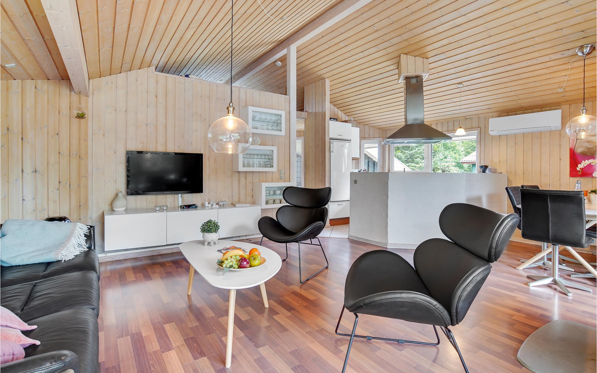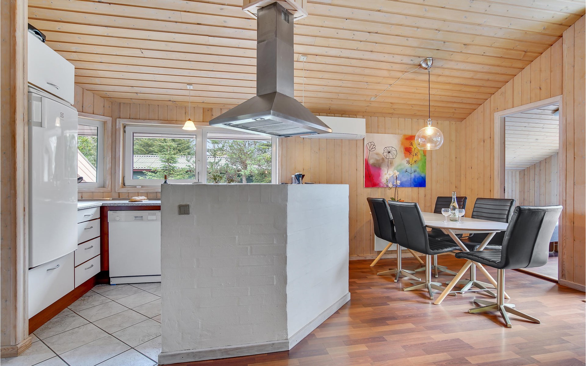 Het huis is voorzien van 3 goede slaapkamers - 2 met een tweepersoonsbed en de laatste met 4 stapelbedden. Daarnaast is er de mogelijkheid van extra bedden op de zolder. Het huis biedt ook een grote badkamer met toegang tot de sauna en spa en een gastentoilet. De keuken staat in open verbinding met de woonkamer, zodat u de activiteiten kunt bekijken terwijl u kookt. Daarnaast kunnen de kinderen spelen en leuke films streamen via een 50/50 internetverbinding.