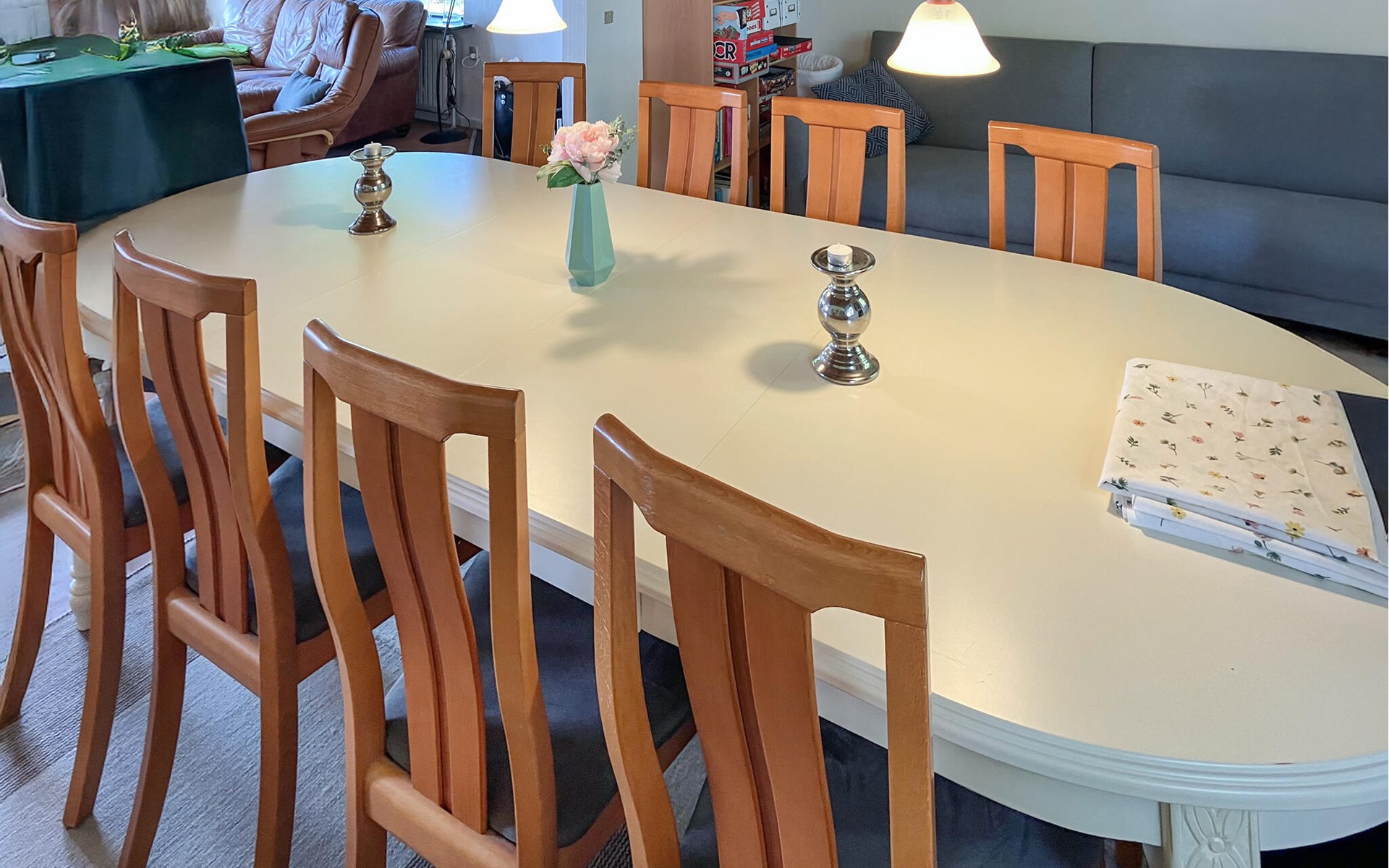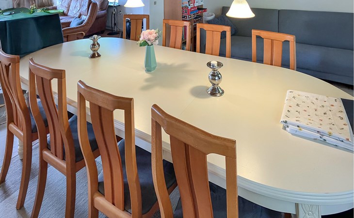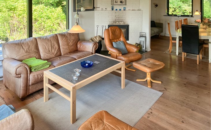 Je vakantiehuis ligt in een rustige omgeving en biedt ideale omstandigheden voor ontspannen dagen met familie of vrienden. Stap de lichte woonkamer binnen en maak het jezelf comfortabel op de banken. Ontspan voor de houtkachel of maak gebruik van de open ruimte, die wonen, eten en koken harmonieus combineert. Neem plaats aan de grote eettafel en geniet samen van maaltijden met uitzicht op het groen.