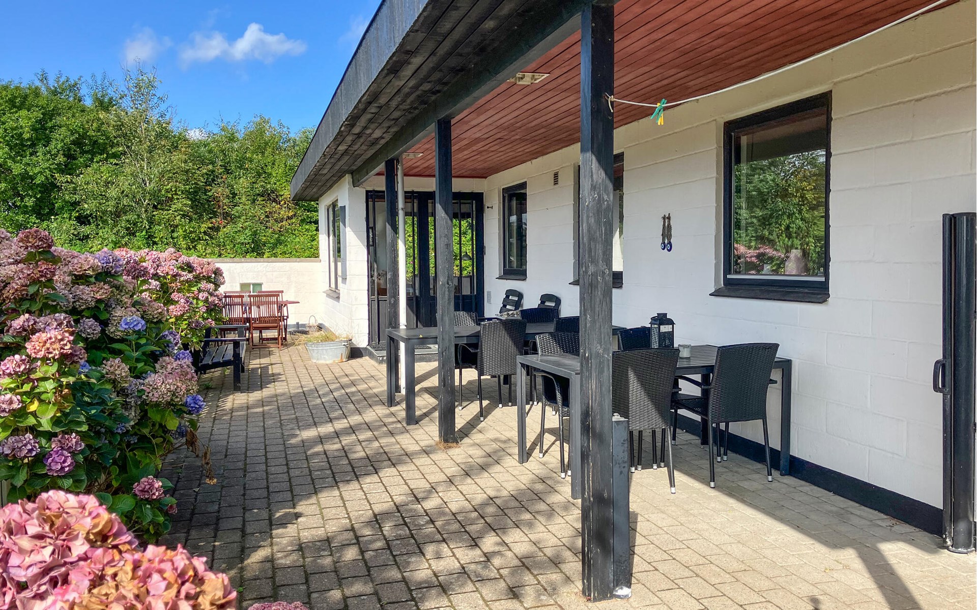Stap het grote terras op en neem plaats op de vele zitmeubels. Gebruik het overdekte gedeelte om buiten te eten of gezellig samen te zijn. Kinderen zullen dol zijn op de schommel, glijbaan en tuin met veel ruimte om te spelen.