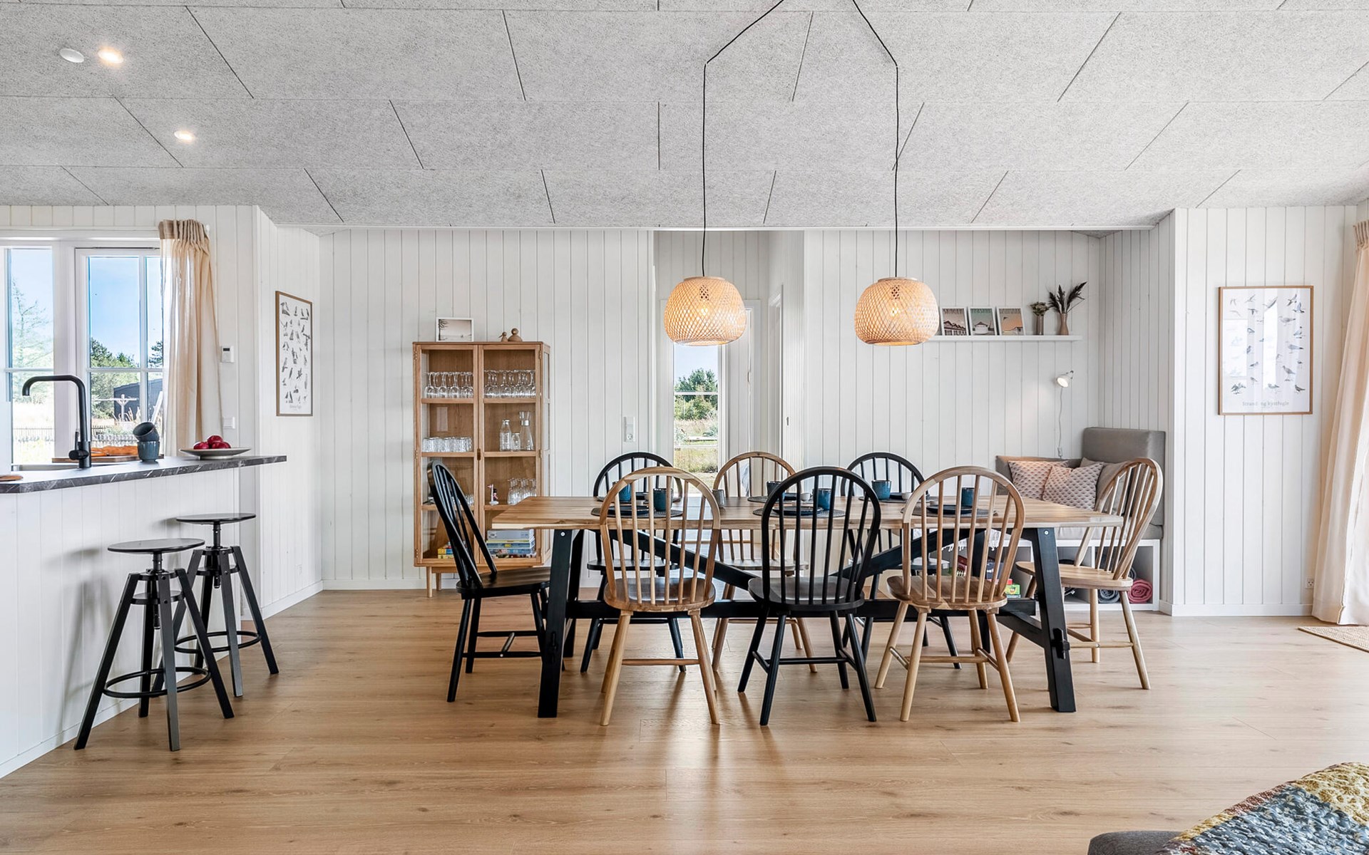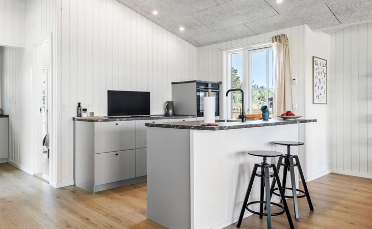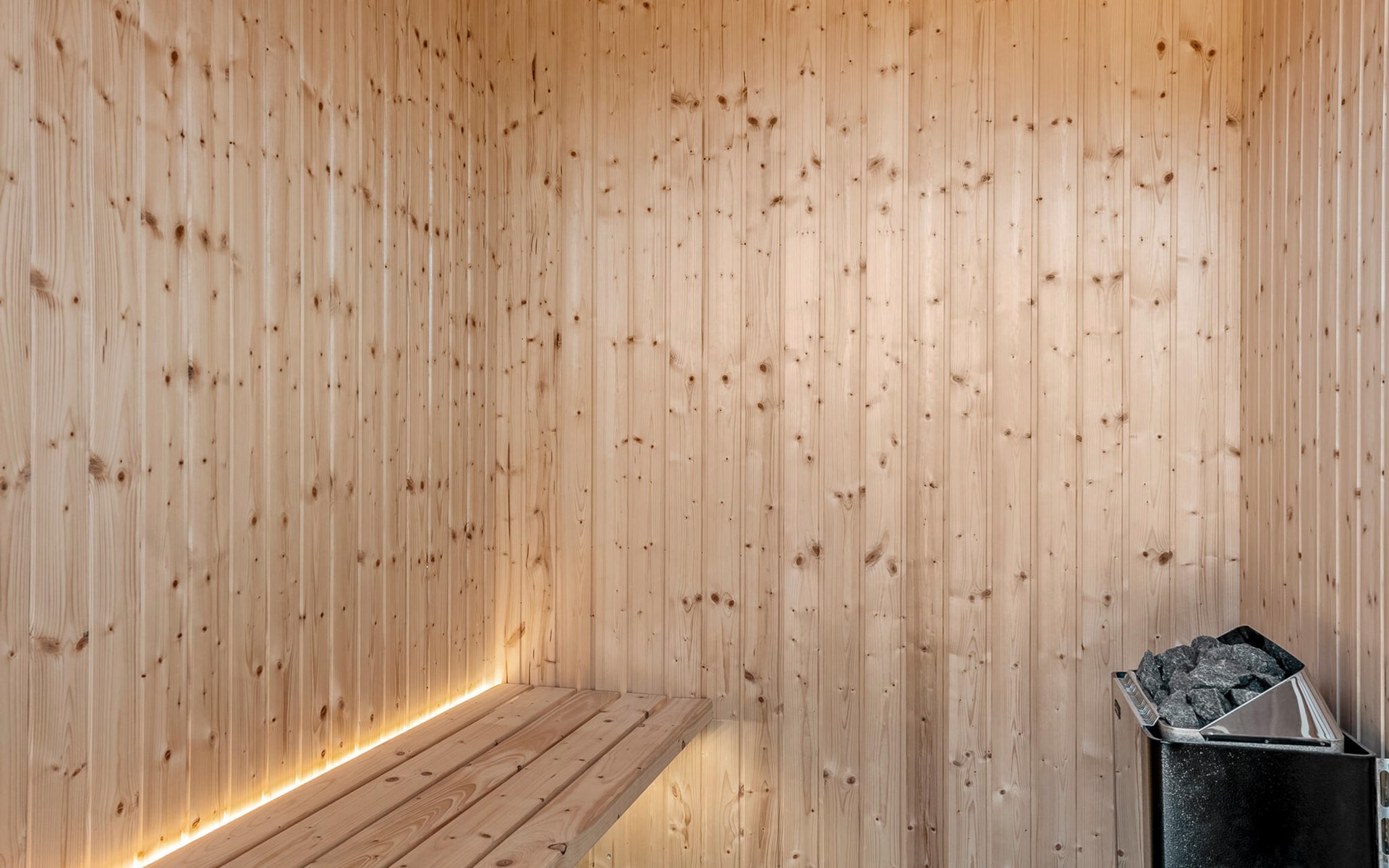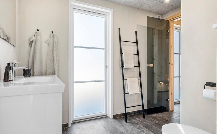 Een geslaagde combinatie van helder design en lichtgekleurd hout geeft dit huis een uitnodigende en harmonieuze uitstraling. Ramen van vloer tot plafond zorgen voor veel helder daglicht, terwijl de goed uitgeruste keuken uitnodigt om samen te koken. Hier vind je een plek waar je tot rust kunt komen en ontspannen dagen kunt doorbrengen, of je nu naar muziek luistert, kletst of opwarmt in de sauna.