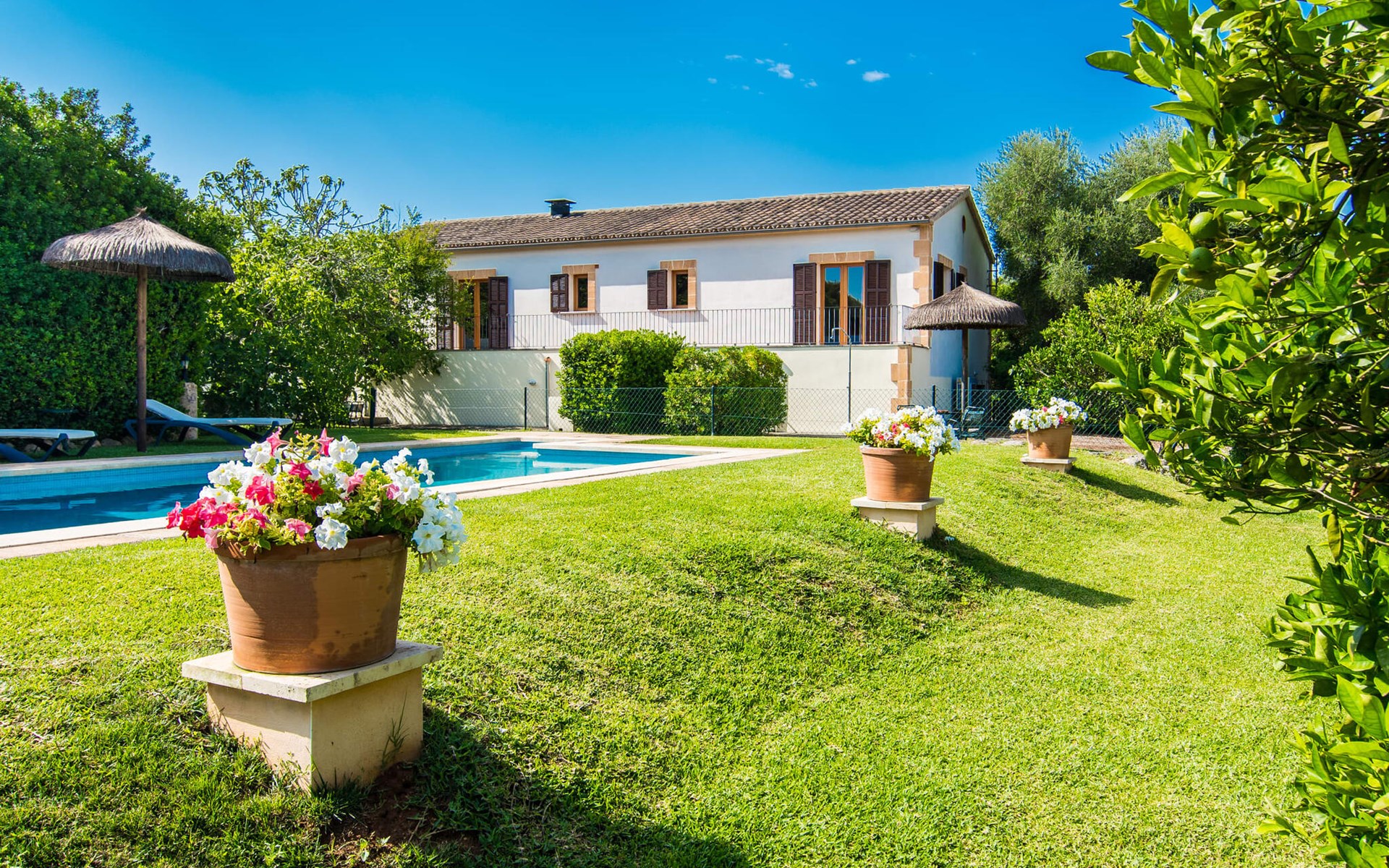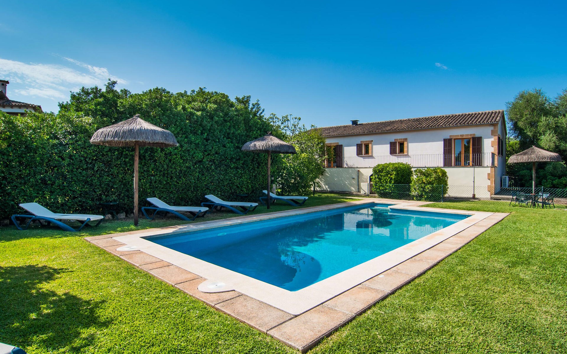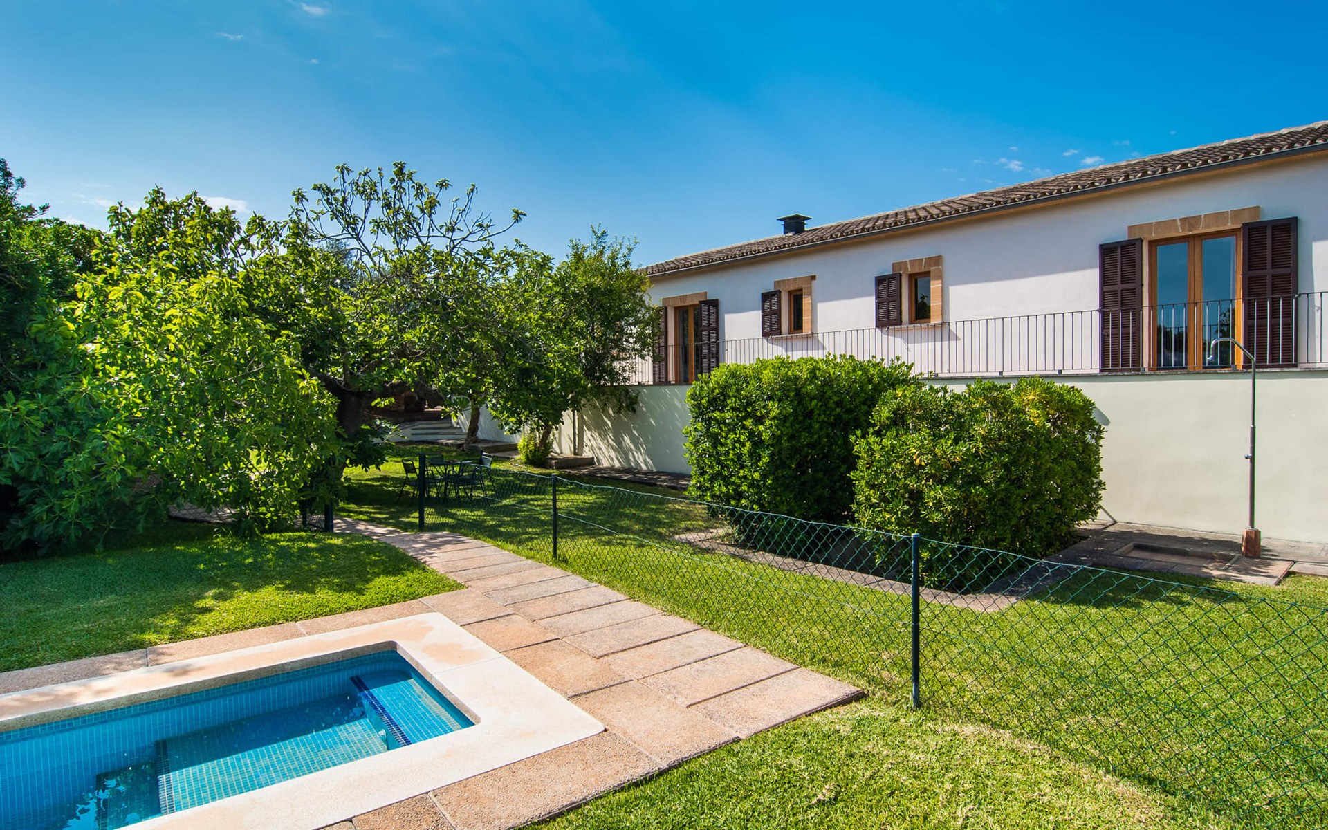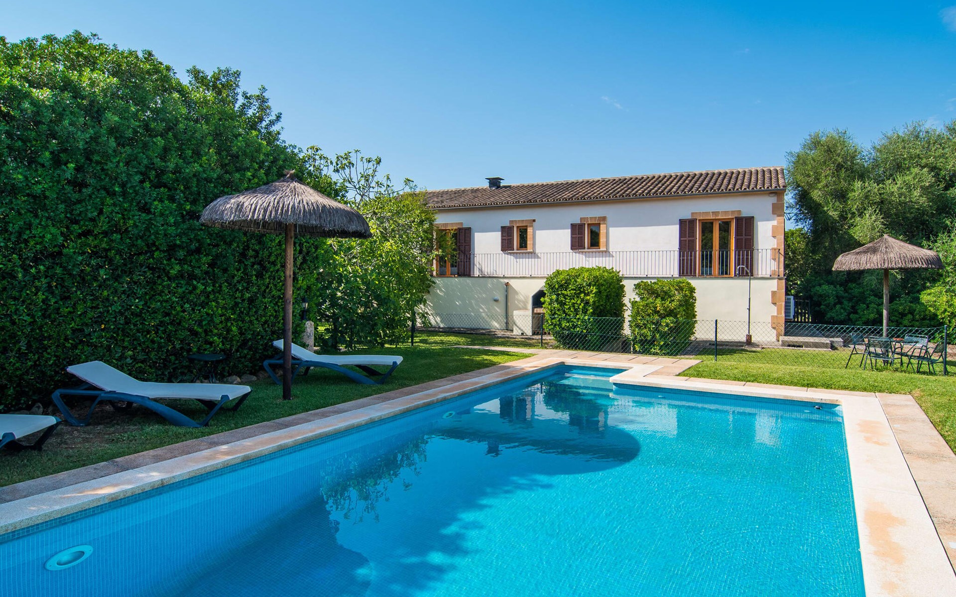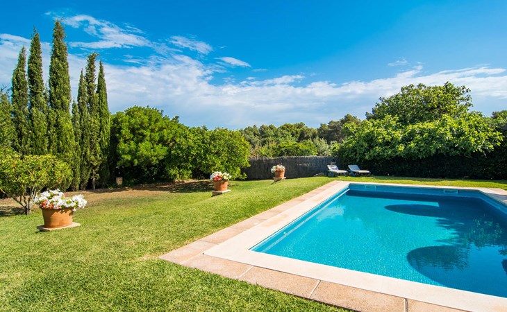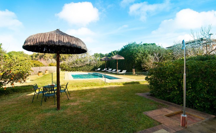 Charmante traditie en modern comfort, dit pand biedt een unieke mix van beide en biedt een gevoel van welzijn in combinatie met een eilandsfeer. Sla gewoon linksaf bij de ingang net voor de rotonde ten zuiden van Can Picafort en je vindt het huis met zijn uitnodigende en mooie receptie, die je nieuwsgierigheid zal wekken om verder te verkennen. Het ligt in een landelijk, dunbevolkt gebied en letterlijk op slechts een paar minuten van het strand. Maar als je op een warme dag binnen wilt blijven, is het 9 meter lange zwembad aan de zijkant van het huis heerlijk verfrissend. Het is betegeld met blauwe mozaïektegels, toegankelijk via een trapje en loopt af tot een aangename diepte van 2 meter. Het is ook veilig omheind voor de veiligheid van je kinderen.