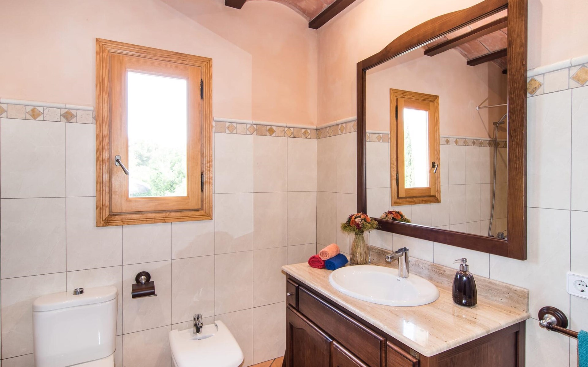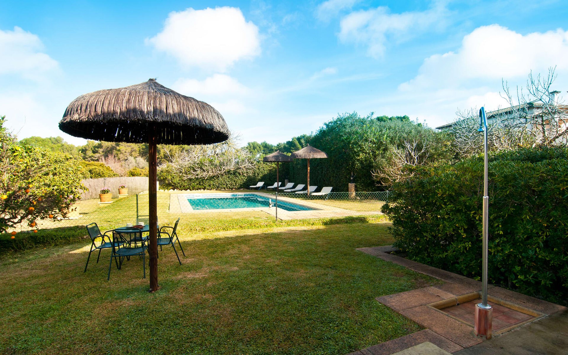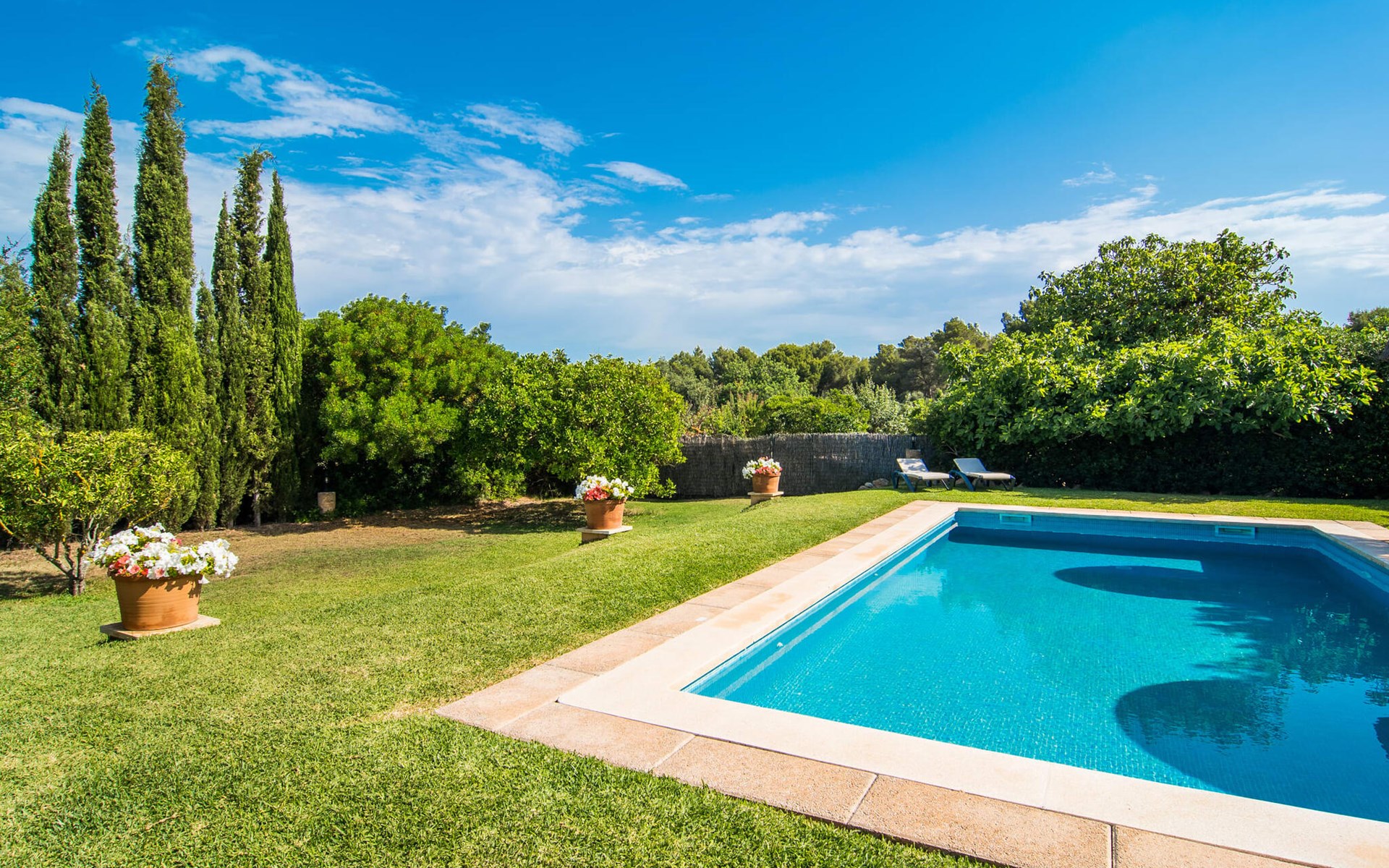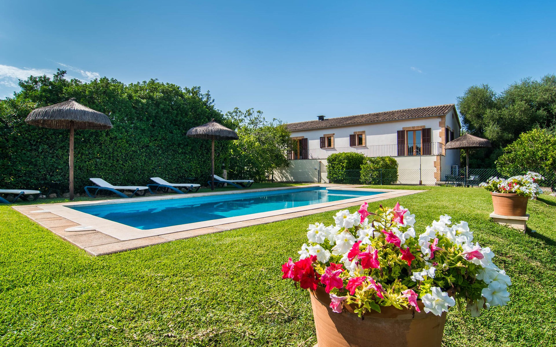 Charmante traditie en modern comfort, dit pand biedt een unieke mix van beide en biedt een gevoel van welzijn in combinatie met een eilandsfeer. Sla gewoon linksaf bij de ingang net voor de rotonde ten zuiden van Can Picafort en je vindt het huis met zijn uitnodigende en mooie receptie, die je nieuwsgierigheid zal wekken om verder te verkennen. Het ligt in een landelijk, dunbevolkt gebied en letterlijk op slechts een paar minuten van het strand. Maar als je op een warme dag binnen wilt blijven, is het 9 meter lange zwembad aan de zijkant van het huis heerlijk verfrissend. Het is betegeld met blauwe mozaïektegels, toegankelijk via een trapje en loopt af tot een aangename diepte van 2 meter. Het is ook veilig omheind voor de veiligheid van je kinderen.