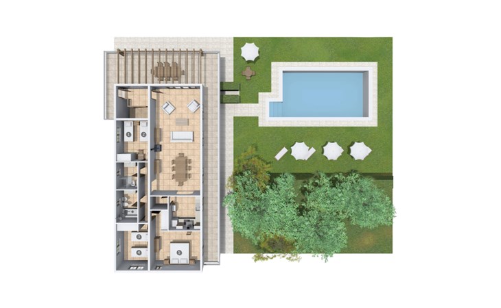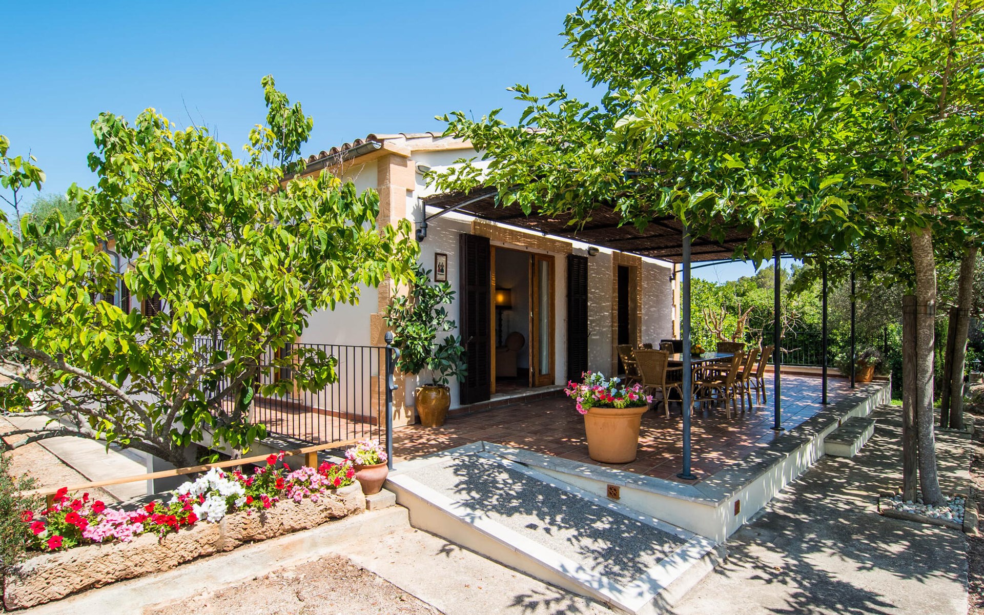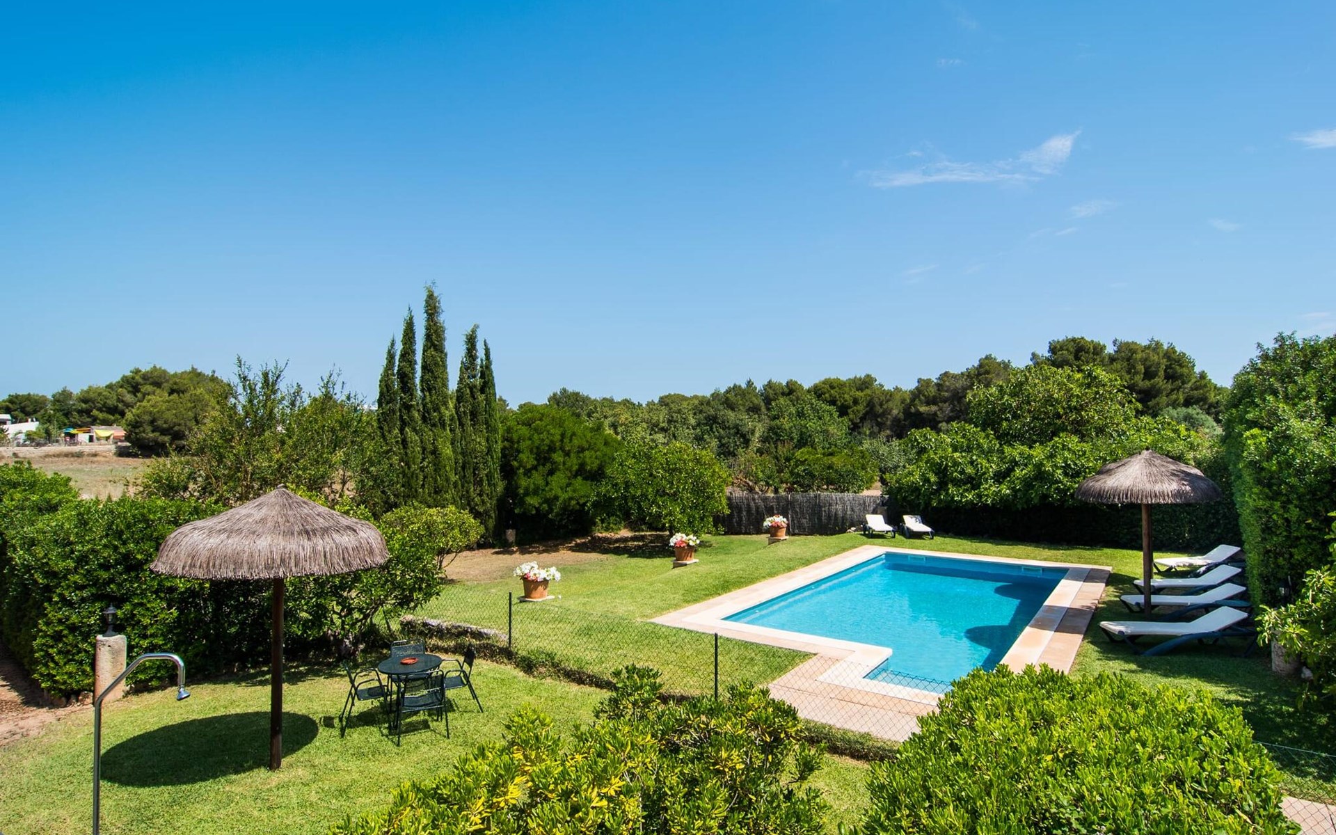 Het omringende gebied ligt in de schaduw van cipressen en enkele oude vijgenbomen, waardoor er een gezellige buitensfeer ontstaat, terwijl het gazon voldoende ruimte biedt om in de zon te liggen of de kinderen te laten spelen. Het huis heeft een overdekt en een open terras. Het open terras kijkt uit op het zwembad, terwijl het overdekte terras de perfecte plek biedt om op elk moment van de dag een maaltijd te delen of gewoon iets te drinken. Er is ook een stenen barbecue op het terrein; als je overdag een van de omliggende markten bezoekt, kun je verse regionale specialiteiten inslaan, waar je later in je eigen tuin van kunt genieten. De vriendelijke eigenaren wonen naast de villa op hetzelfde terrein, maar hebben hun eigen oprit zodat je kunt genieten van je privacy en een contactpersoon in de buurt hebt als je vragen of zorgen hebt.