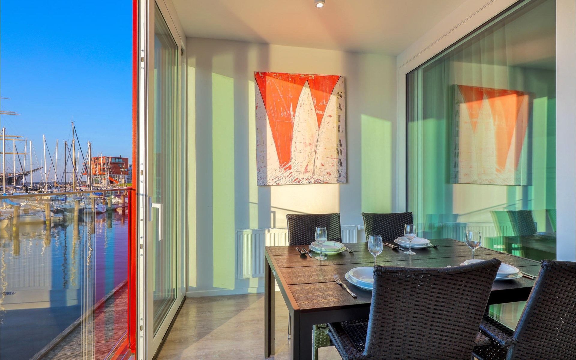 Geniet van het uitzicht op het indrukwekkende museumschip "Passat" en de grote Scandinavische veerboten die bijna op aanraakafstand voorbij glijden vanuit de verwarmde serre - een uniek panoramisch uitzicht! Er zijn tuinmeubelen beschikbaar in de serre zodat je hier een gezellige avond kunt doorbrengen.