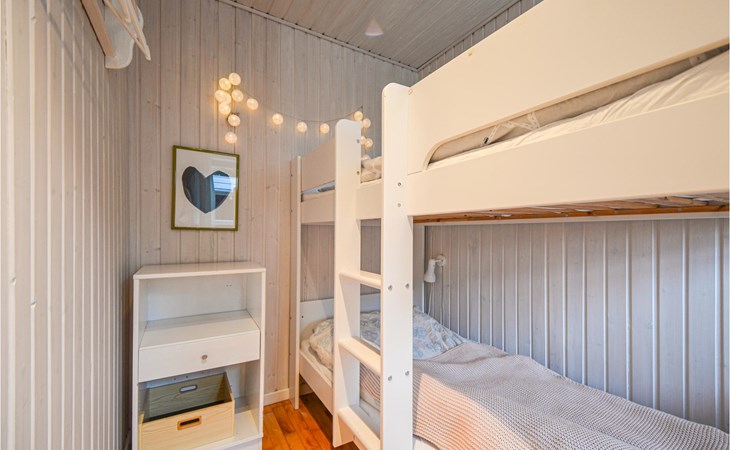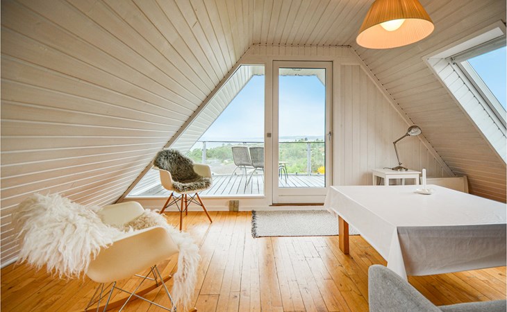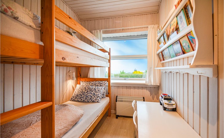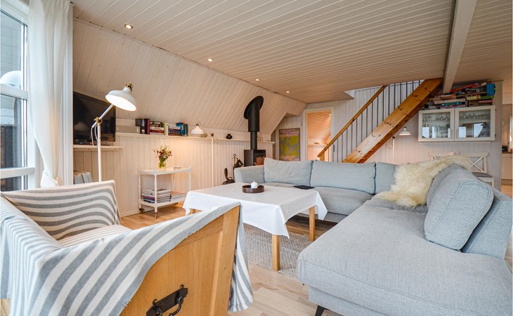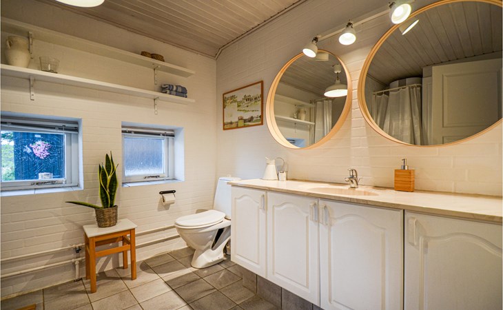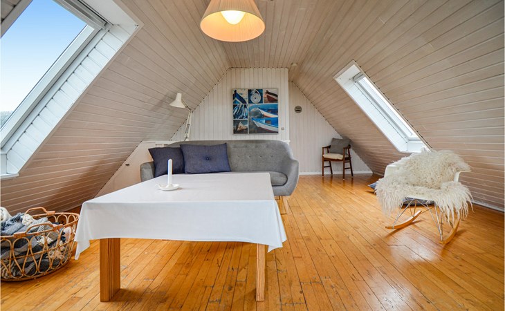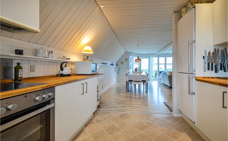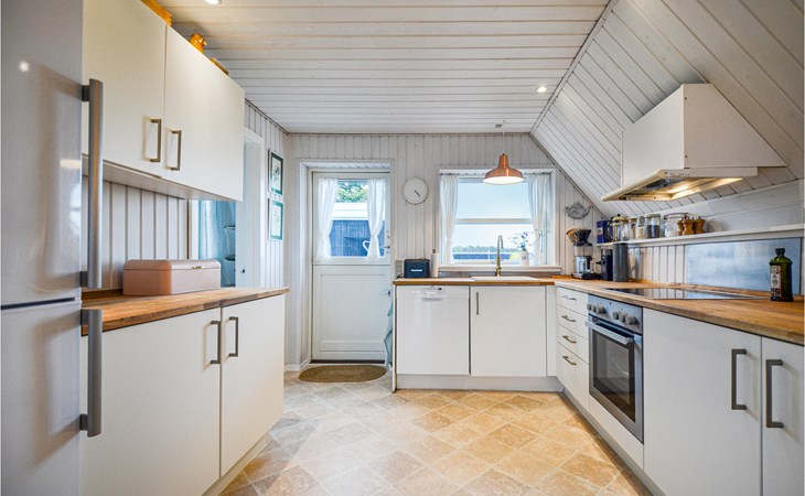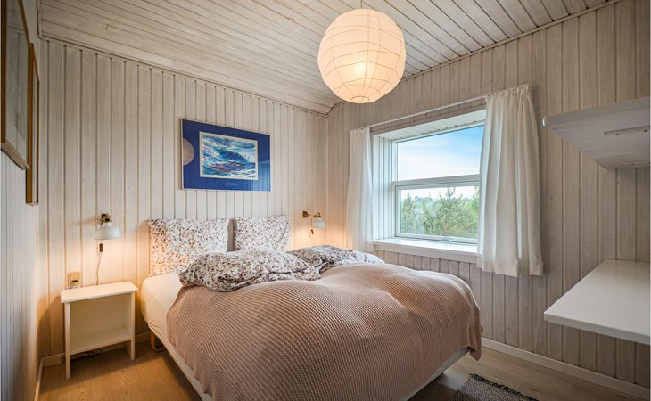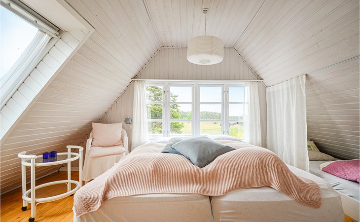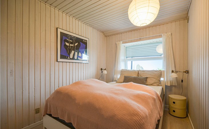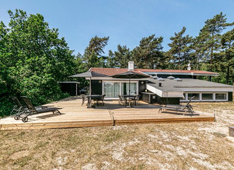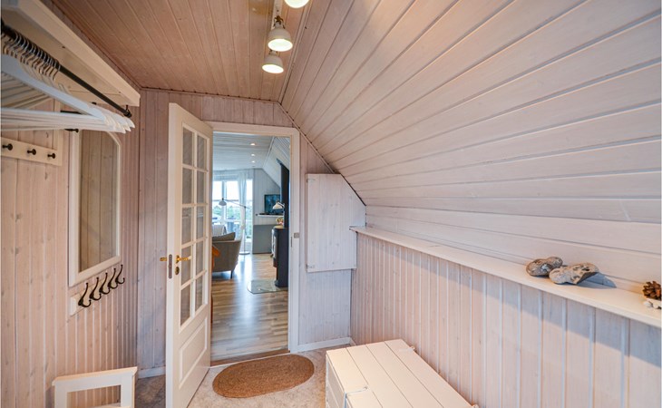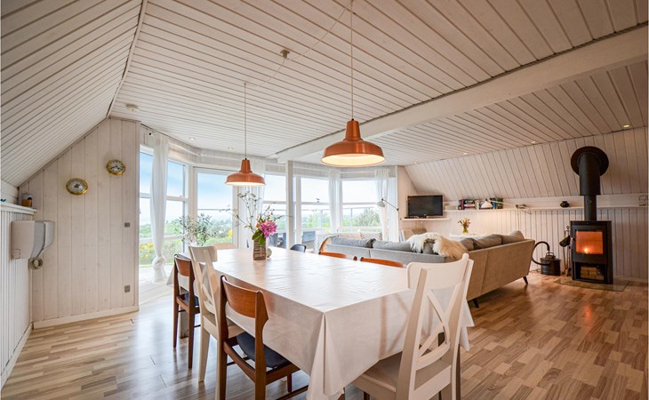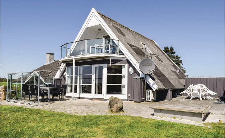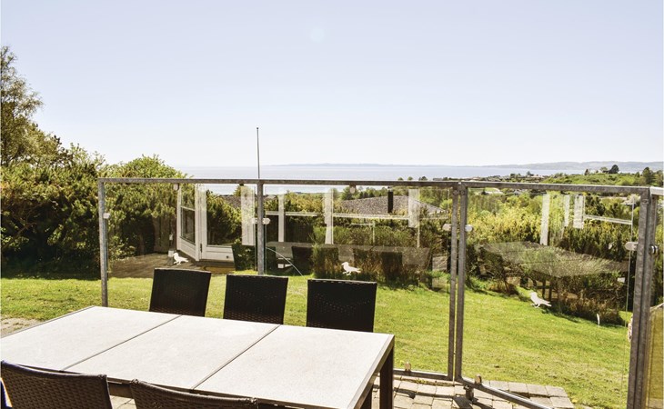 Vanuit het hooggelegen huis heeft u een prachtig uitzicht op Ebeltoft Vig en de omgeving. Het huis is stijlvol ingericht in lichte, vriendelijke kleuren, met mooie meubels en een keuken-woonkamer. Op de 1e verdieping bevindt zich een slaapkamer en de kijkkamer met balkon, waar u zeker graag zult vertoeven om de zonsondergang over Mols Bjerge te bewonderen. Op de begane grond zijn er twee badkamers, de grote met een sauna en een whirlpool, vier goede slaapkamers en al met al veel ruimte voor het hele gezin. Het huis ligt aan het einde van een rustige laan in het recreatiegebied, op een goed onderhouden perceel met gazons en aantrekkelijke beplanting.