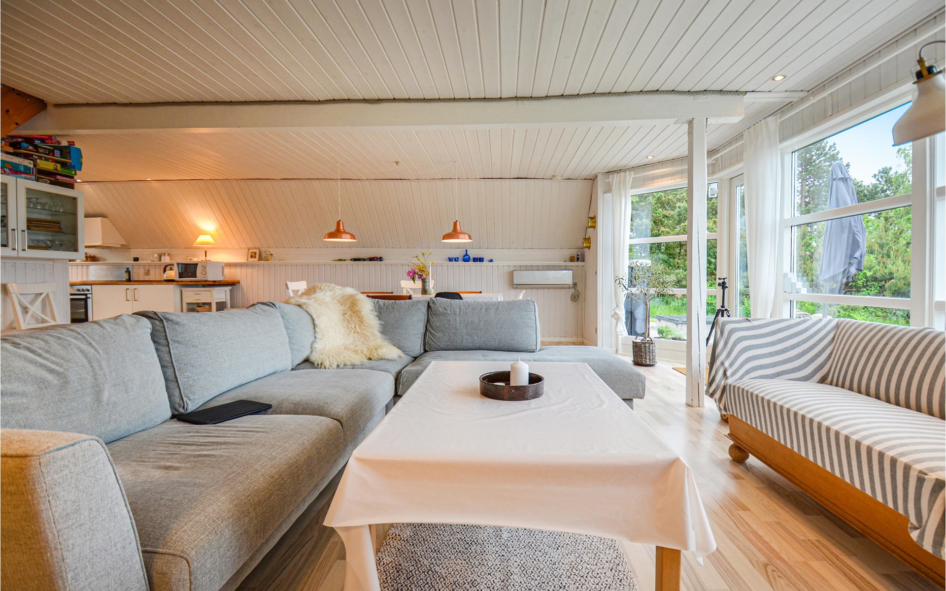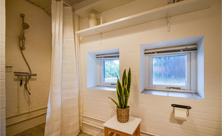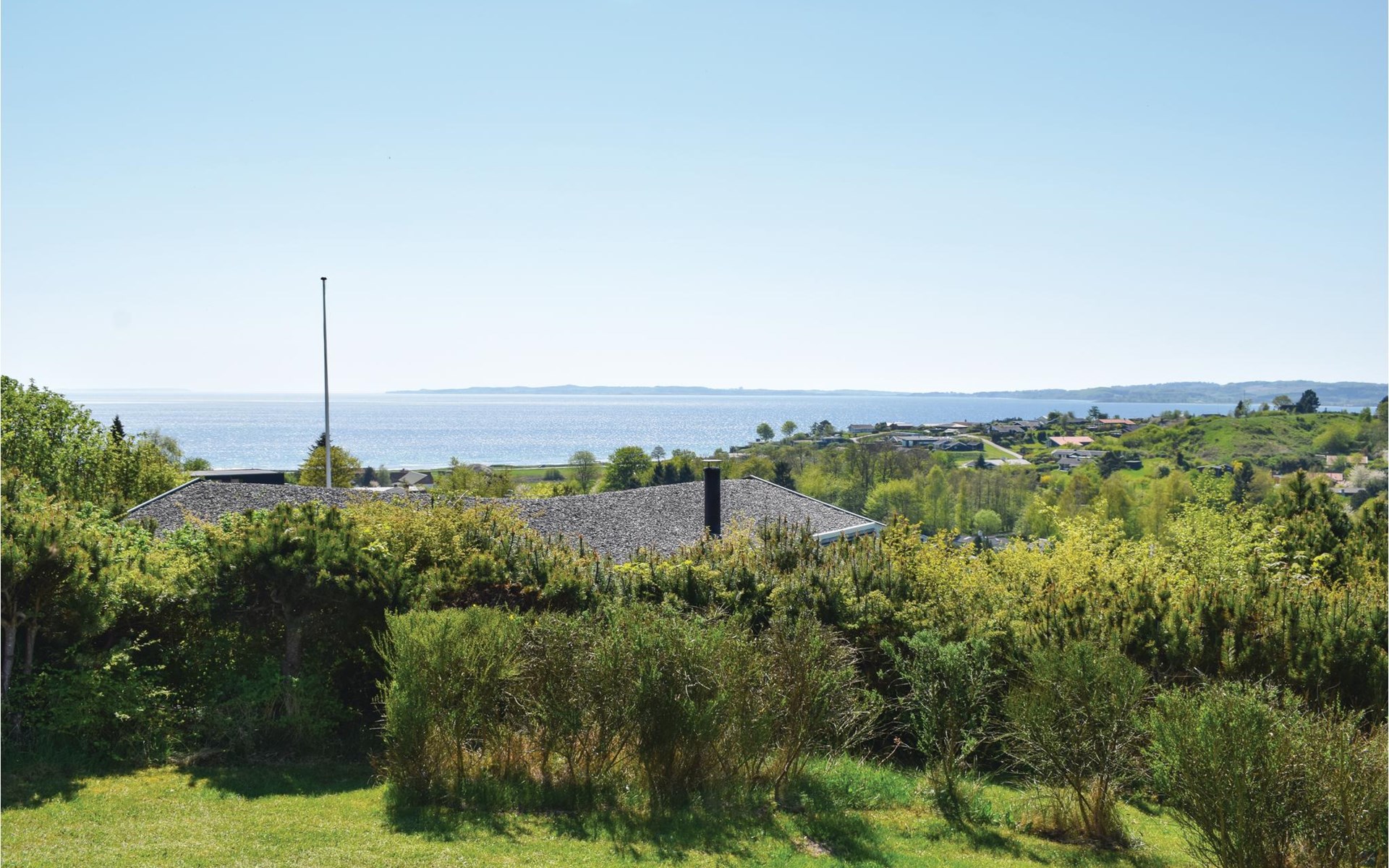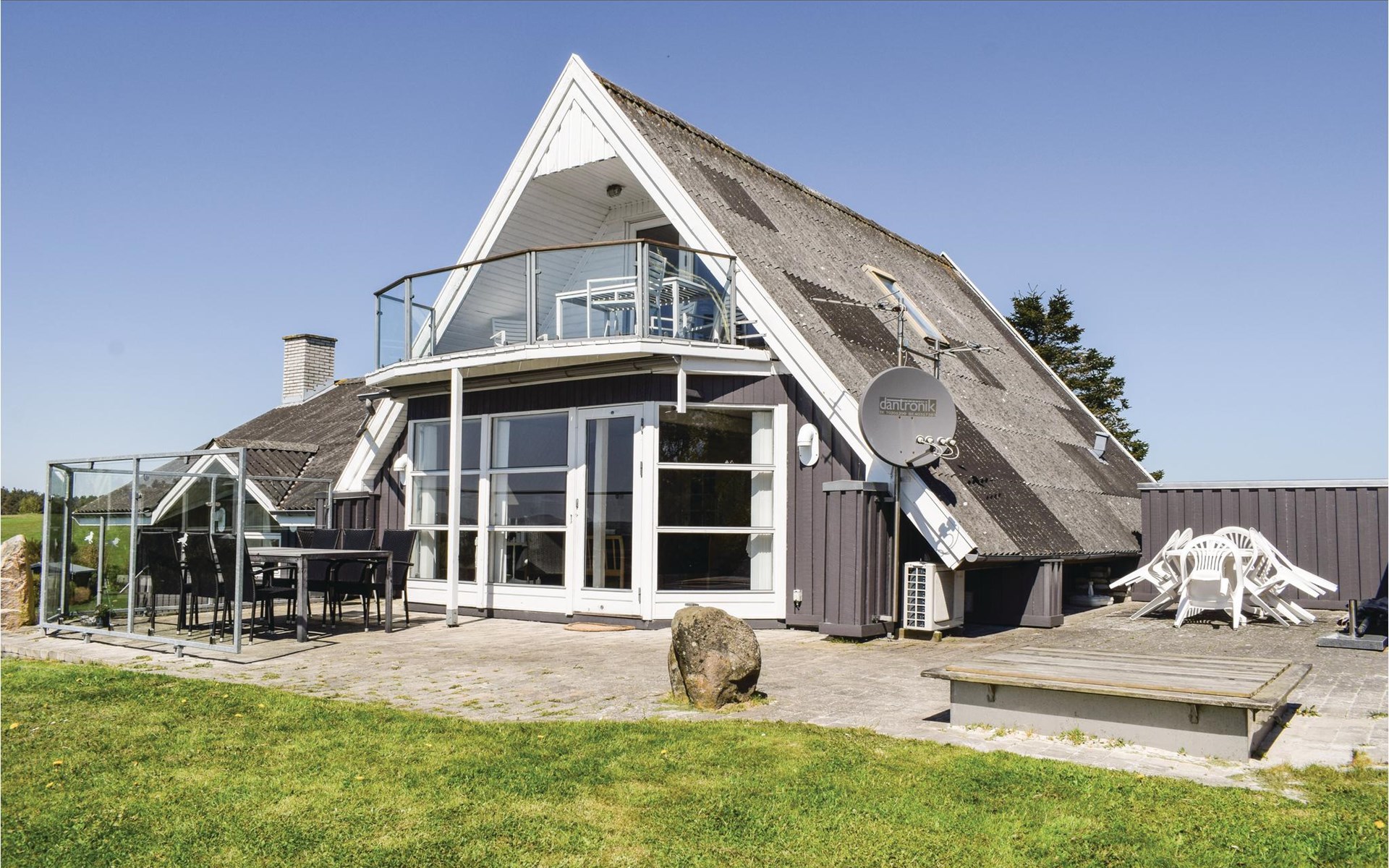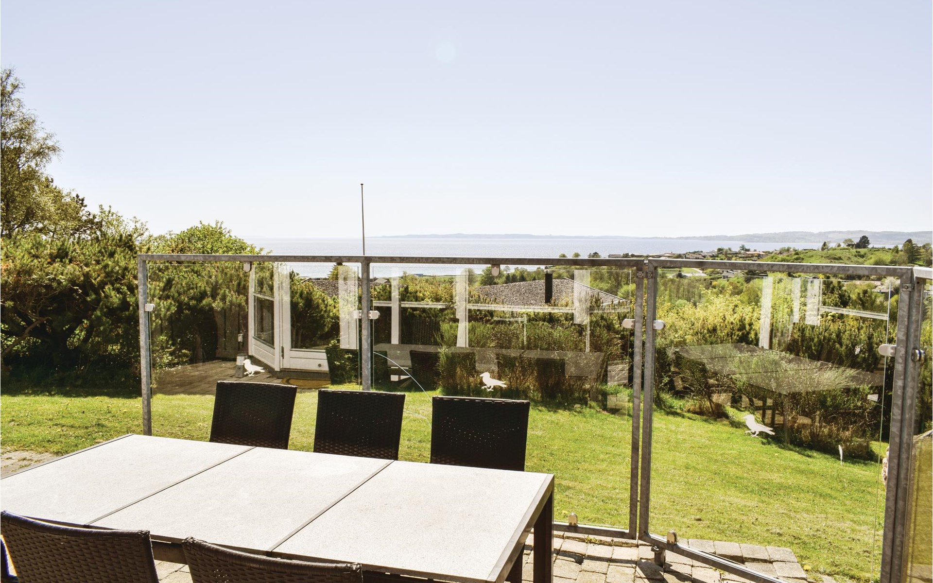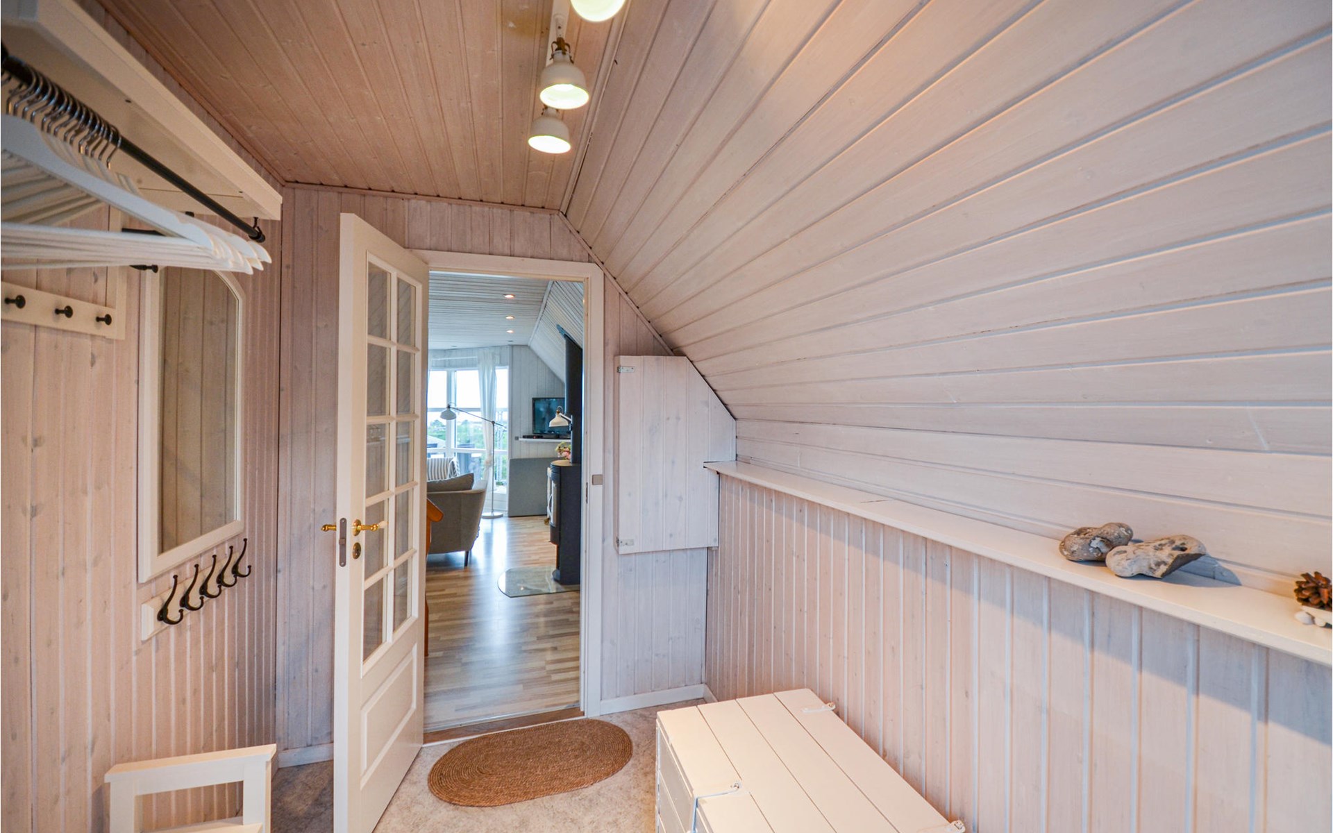 Vanuit het hooggelegen huis heeft u een prachtig uitzicht op Ebeltoft Vig en de omgeving. Het huis is stijlvol ingericht in lichte, vriendelijke kleuren, met mooie meubels en een keuken-woonkamer. Op de 1e verdieping bevindt zich een slaapkamer en de kijkkamer met balkon, waar u zeker graag zult vertoeven om de zonsondergang over Mols Bjerge te bewonderen. Op de begane grond zijn er twee badkamers, de grote met een sauna en een whirlpool, vier goede slaapkamers en al met al veel ruimte voor het hele gezin. Het huis ligt aan het einde van een rustige laan in het recreatiegebied, op een goed onderhouden perceel met gazons en aantrekkelijke beplanting.
