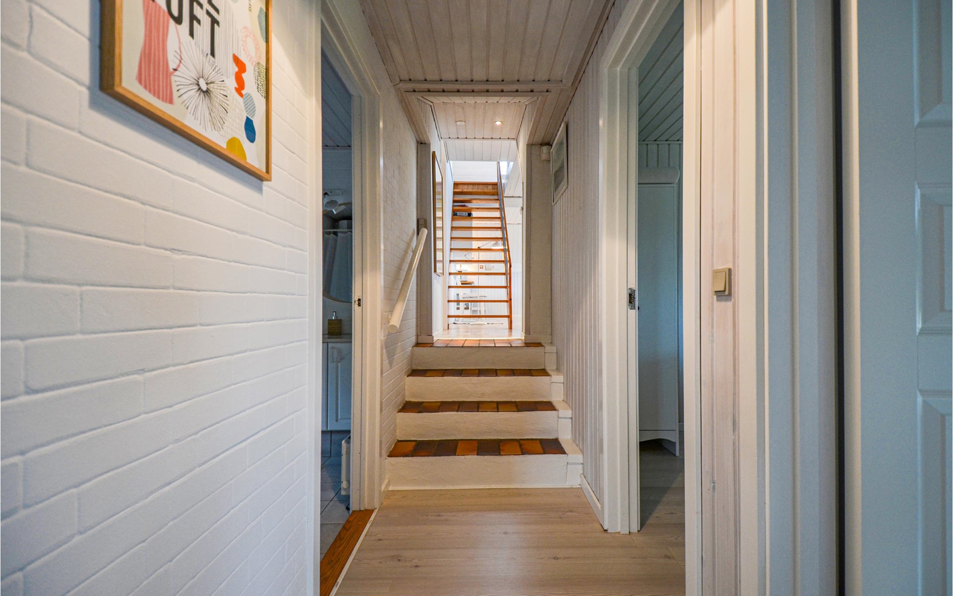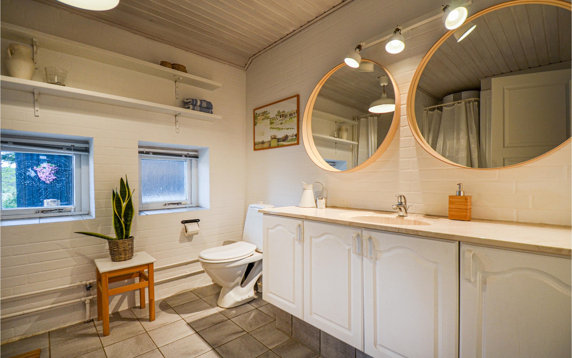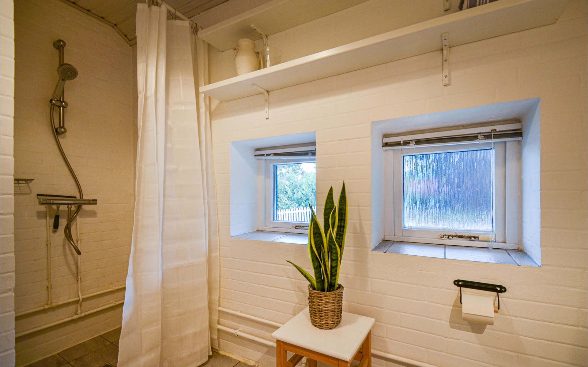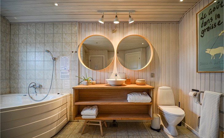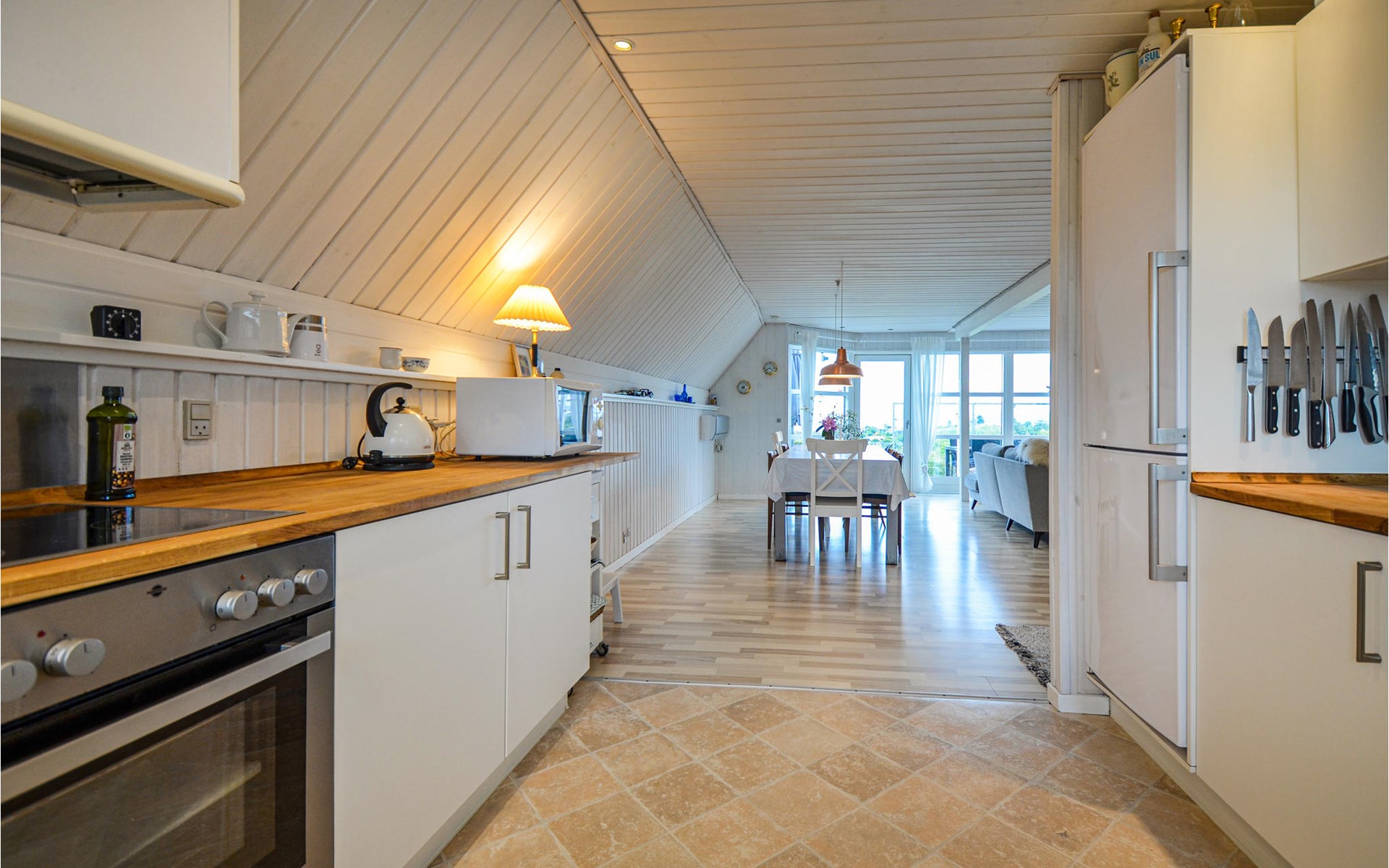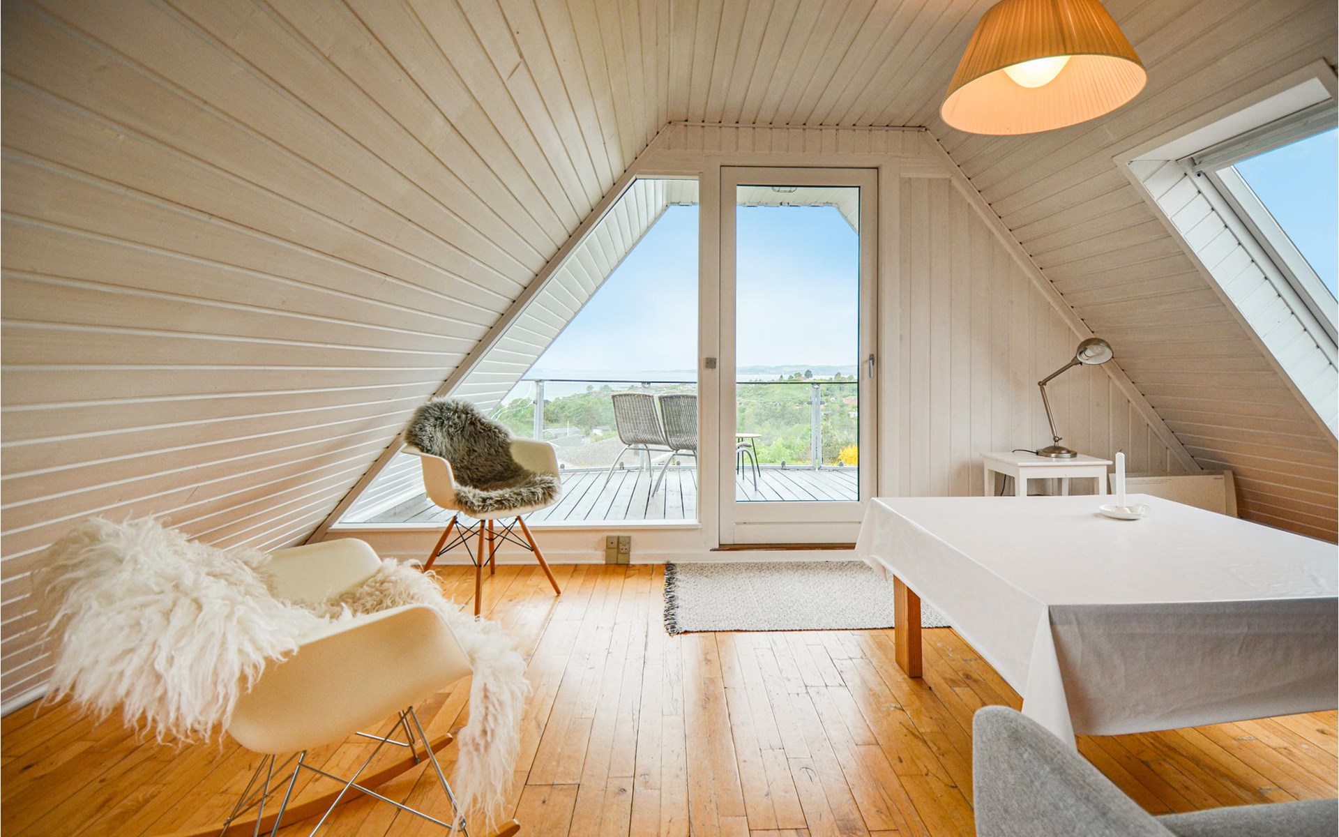 Vanuit het hooggelegen huis heeft u een prachtig uitzicht op Ebeltoft Vig en de omgeving. Het huis is stijlvol ingericht in lichte, vriendelijke kleuren, met mooie meubels en een keuken-woonkamer. Op de 1e verdieping bevindt zich een slaapkamer en de kijkkamer met balkon, waar u zeker graag zult vertoeven om de zonsondergang over Mols Bjerge te bewonderen. Op de begane grond zijn er twee badkamers, de grote met een sauna en een whirlpool, vier goede slaapkamers en al met al veel ruimte voor het hele gezin. Het huis ligt aan het einde van een rustige laan in het recreatiegebied, op een goed onderhouden perceel met gazons en aantrekkelijke beplanting.