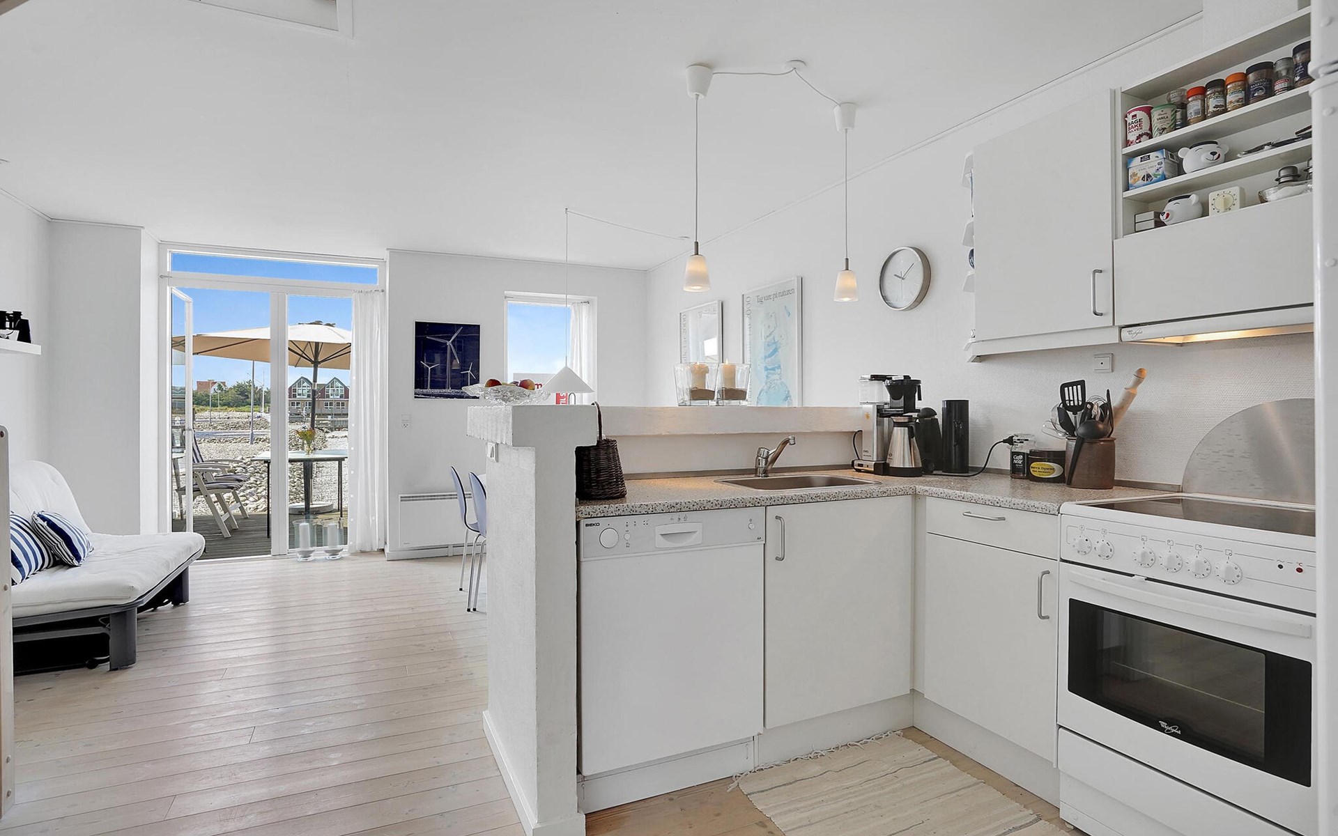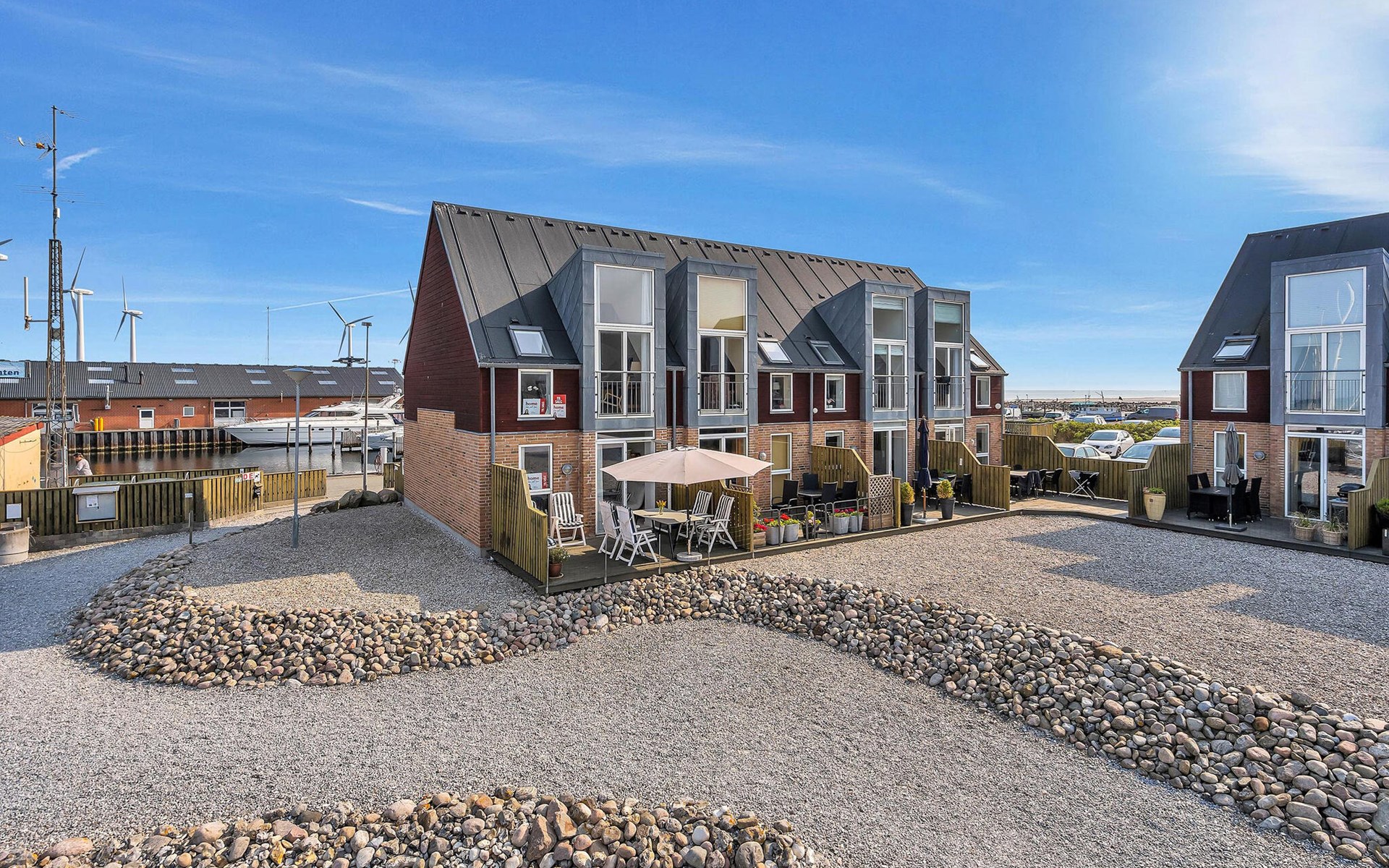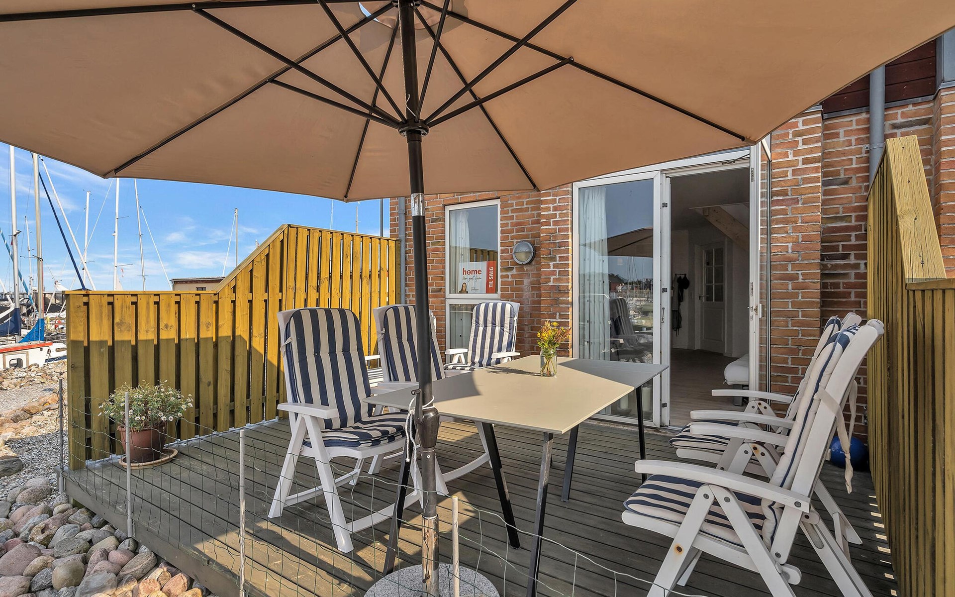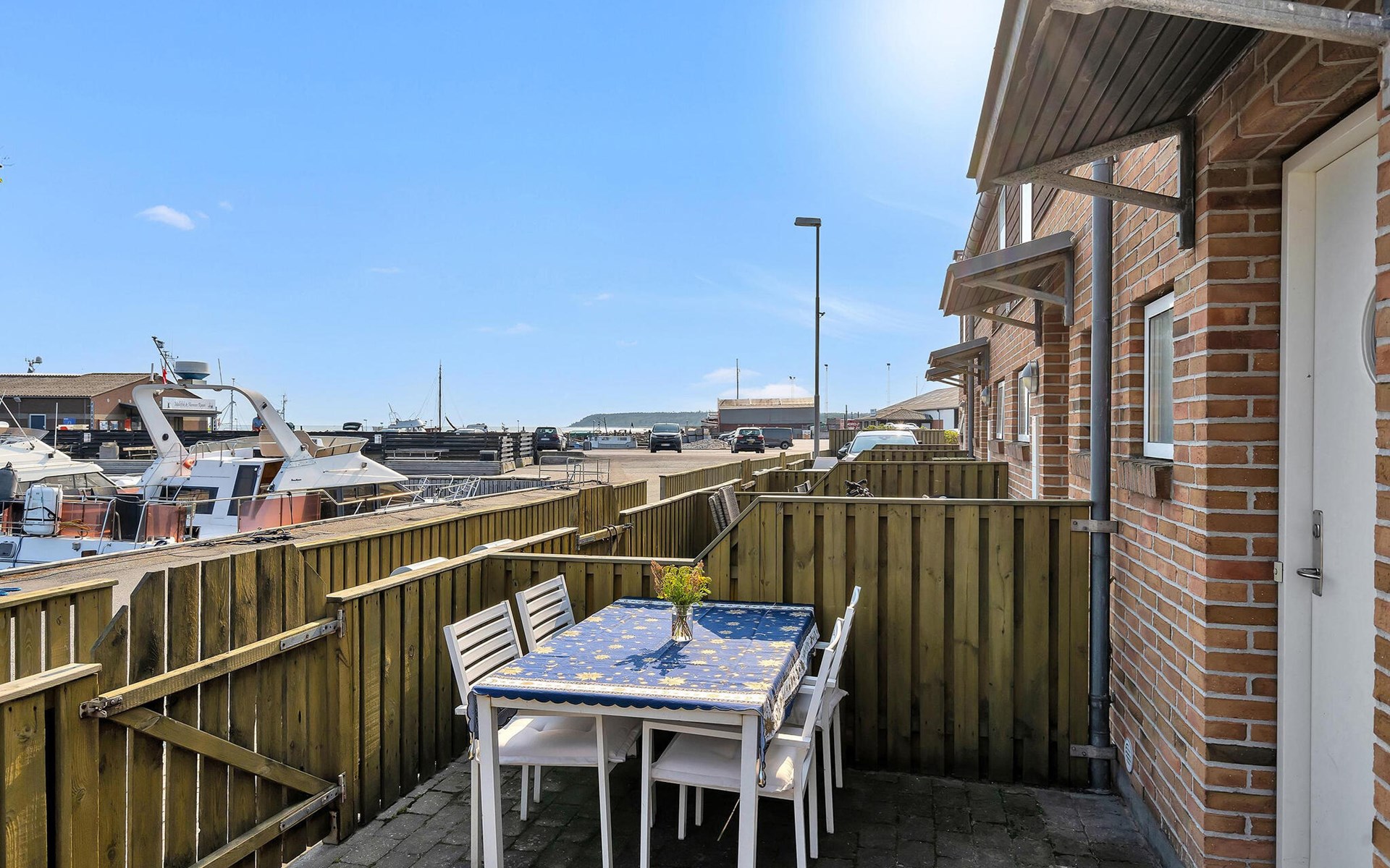 Ontdek de buitenruimte en ontspan op het beschutte terras. Geniet van je ontbijt onder de grote parasol of sluit de dag af met een glas wijn terwijl je kijkt naar de bedrijvigheid van de haven. Het tweede terras aan de achterkant biedt nog een gezellige zithoek.
