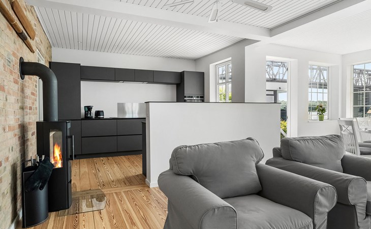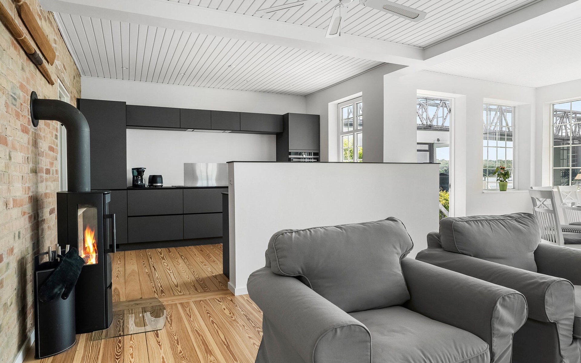 Ervaar de unieke locatie direct aan de oevers van de Kleine Belt. Dit liefdevol ontworpen vakantiehuis combineert modern comfort met nostalgische charme en een panorama dat elke dag bijzonder maakt. Geniet van het open woonconcept met gezellige zitjes, stijlvolle meubels en een houtkachel. Laat je blik door de grote ramen over het water dwalen, lees een boek of kook samen in de hoogwaardige, moderne keuken. De eethoek in de glazen veranda biedt je het beste uitzicht op het water, wat voor weer het ook is.