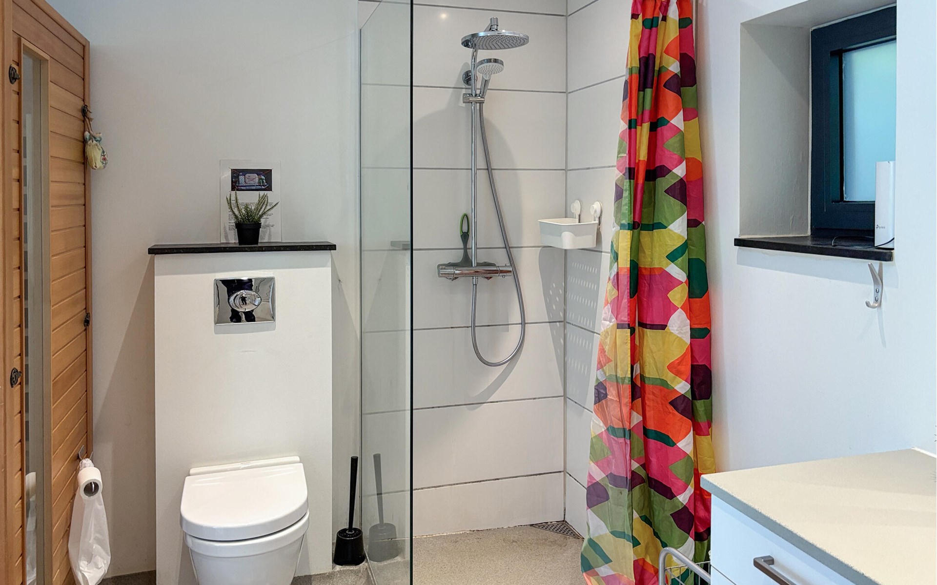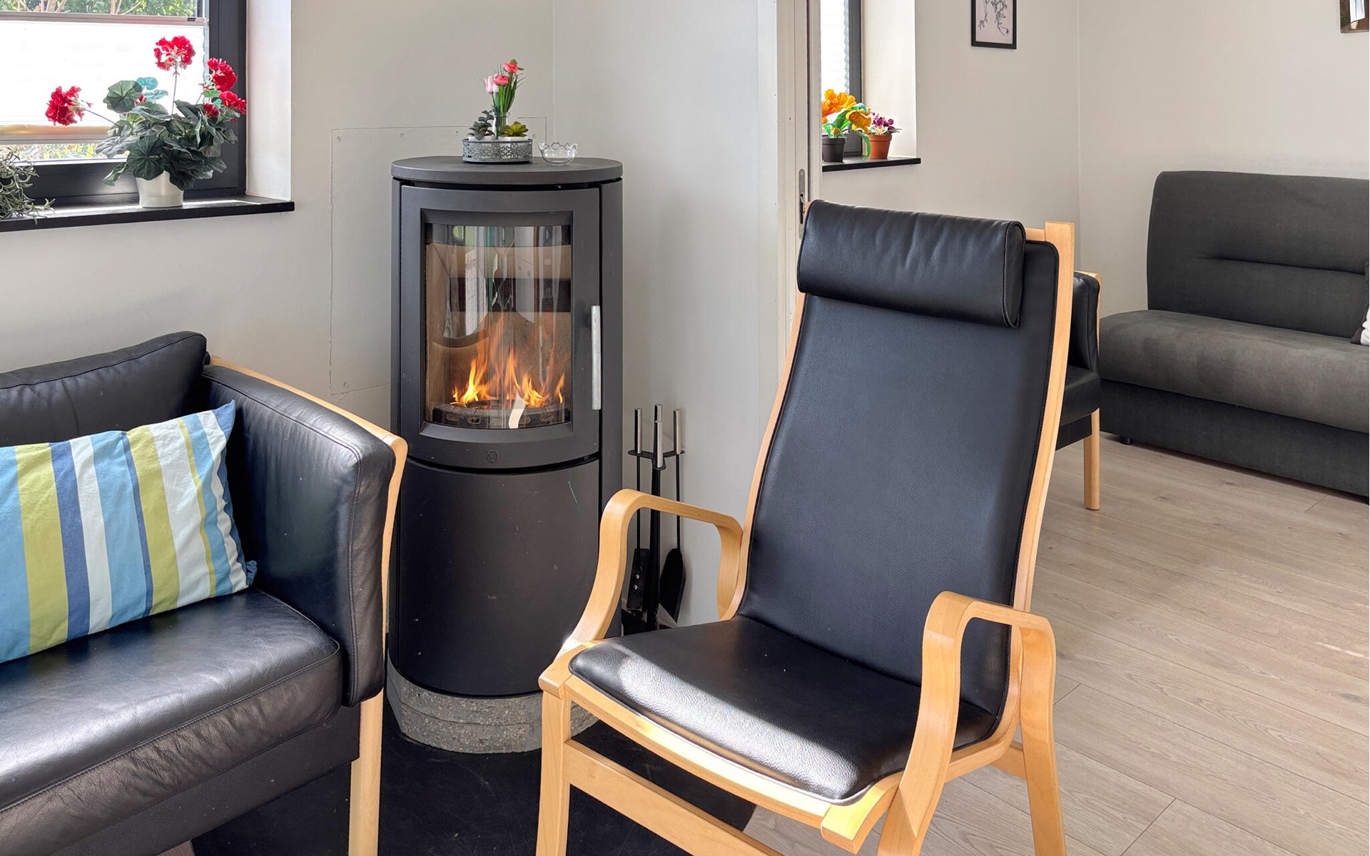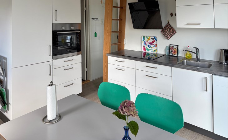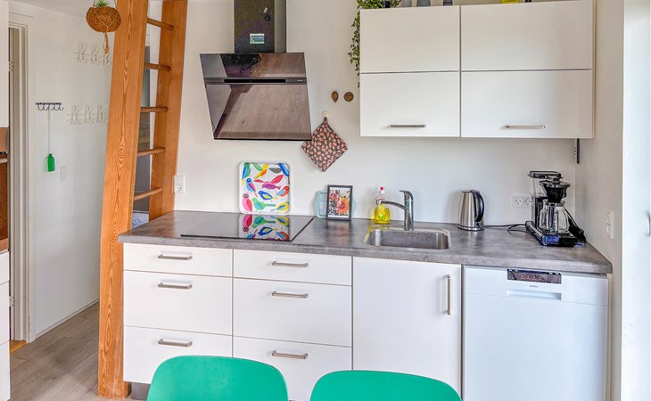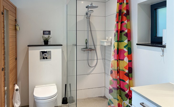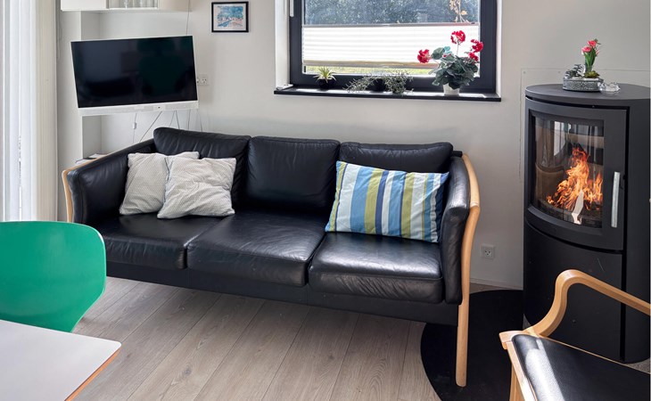 De combinatie van natuur, ontspanning en uitzicht op zee maakt dit vakantiehuis tot een ideaal toevluchtsoord. Binnen vind je een smaakvol ingerichte woonkamer met een houtkachel en comfortabele stoelen, ideaal om op te warmen na een dag in de frisse lucht. Lees een boek, kijk een film of geniet gewoon van de gezellige warmte van het vuur. De keuken is modern en goed uitgerust, zodat je gemakkelijk samen kunt koken. Een infraroodsauna zorgt voor extra ontspanning en welzijn.