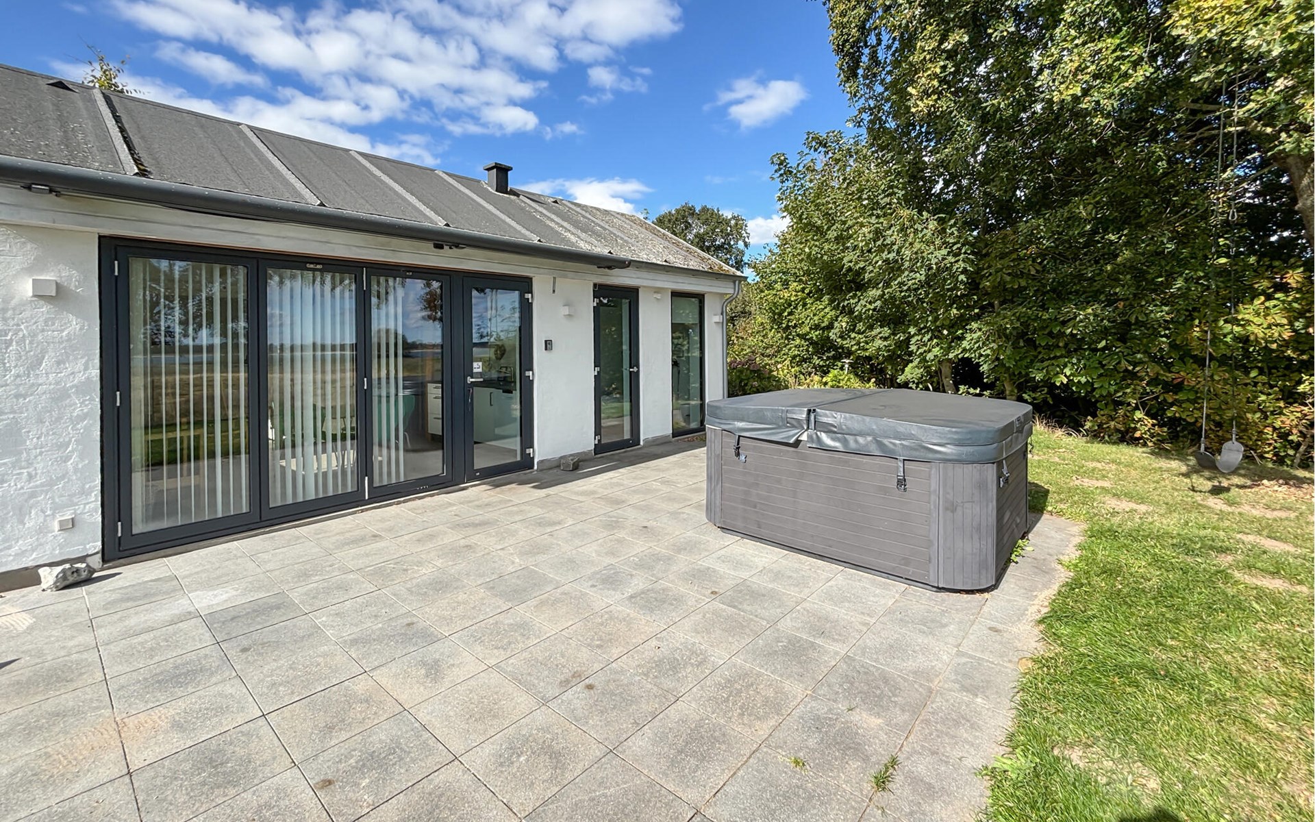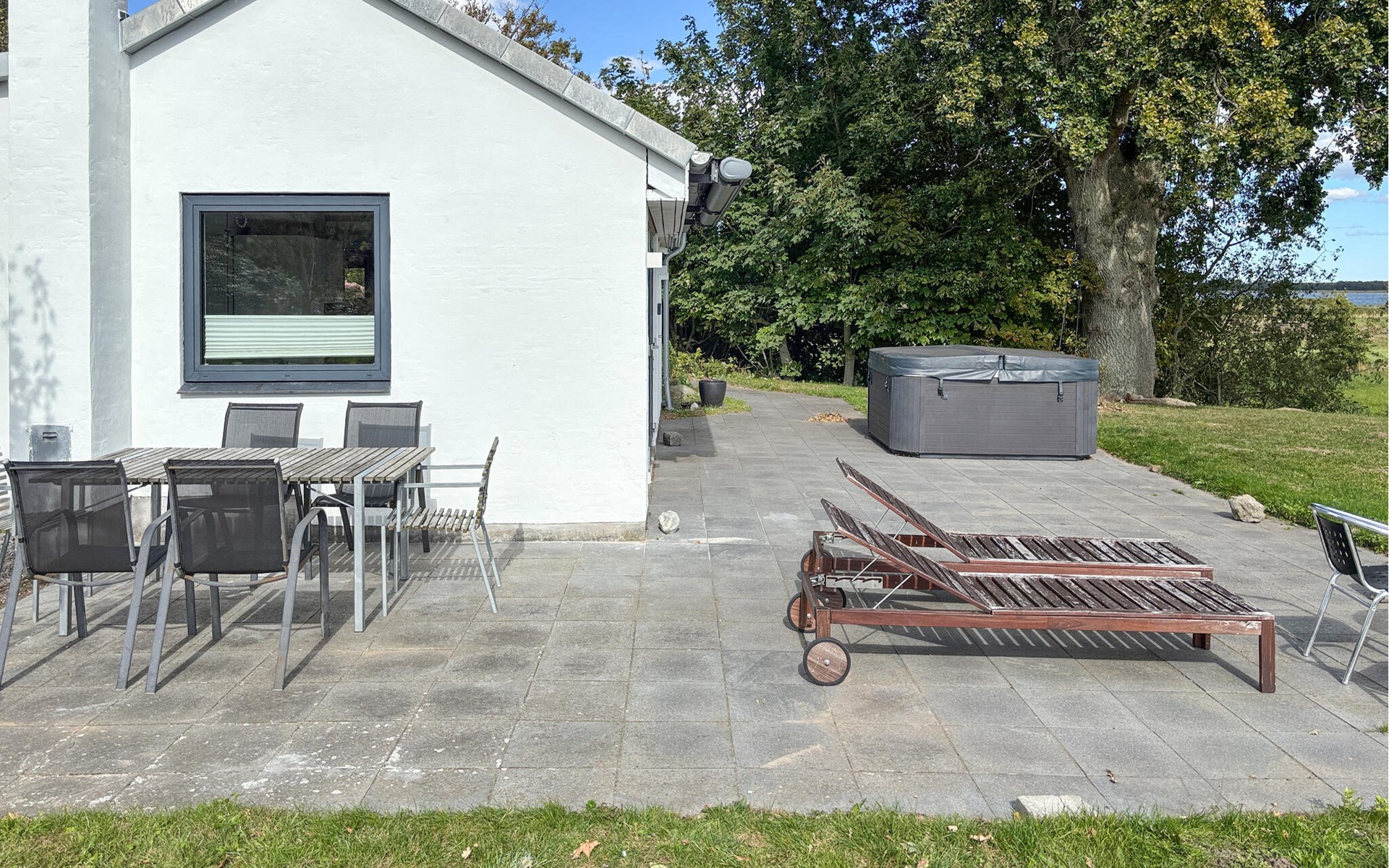 Ontbijt in de zon op het grote terras of sluit de dag af in de bruisende whirlpool buiten. Leun achterover op de ligstoelen, geniet van het uitzicht op het groene landschap en laat je blik afdwalen tot aan het water. Tuinmeubilair en een barbecue zijn beschikbaar om buiten te eten, terwijl kinderen kunnen graven in de zandbak. s Avonds zorgt de vuurplaats voor een gezellige sfeer.