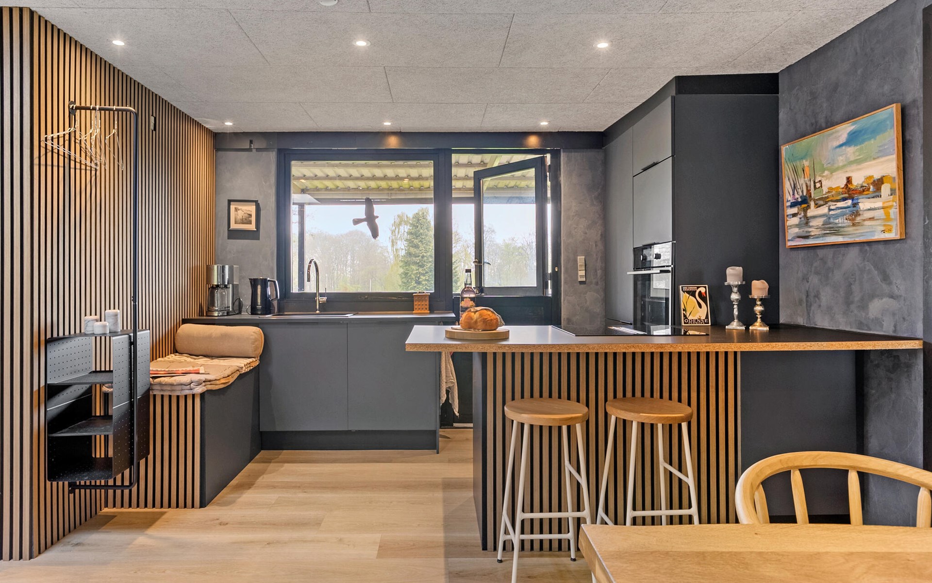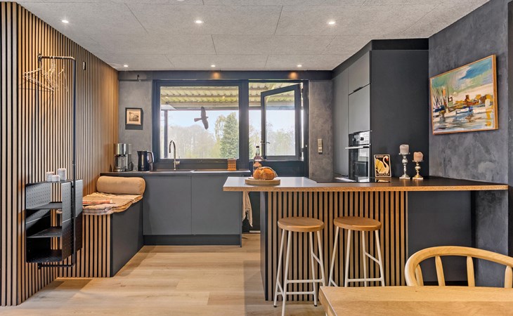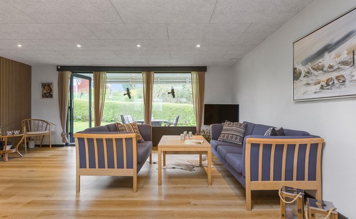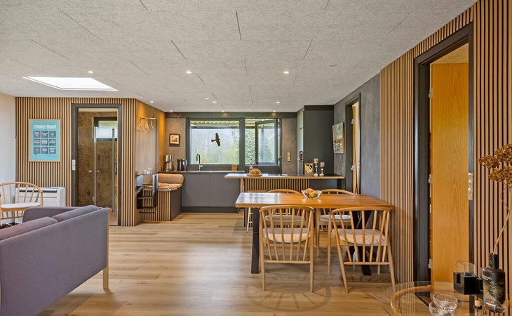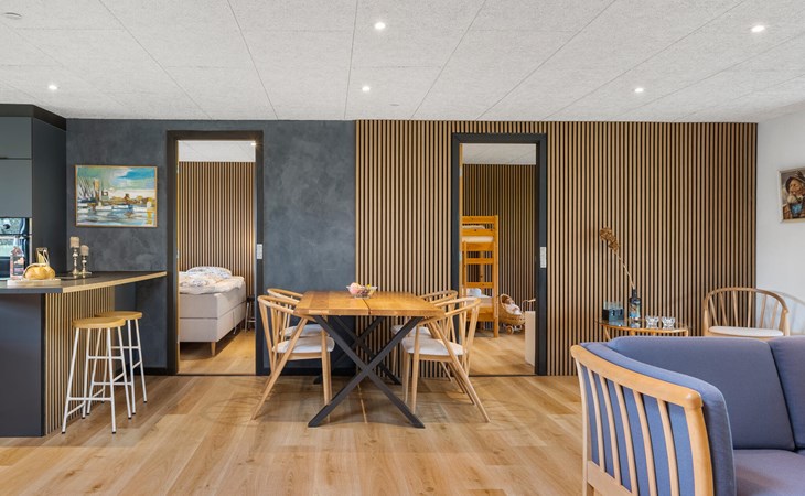 Breng je vrije tijd door in dit gezellige houten huis, dat je uitnodigt om te ontspannen met zijn warme sfeer. Begin de dag met een ontspannen ontbijt aan de eettafel naast de open, moderne keuken en gebruik de lichte woonkamer om samen tijd door te brengen. Speel kaart, kijk een film of leun achterover met een boek op de ruime banken.