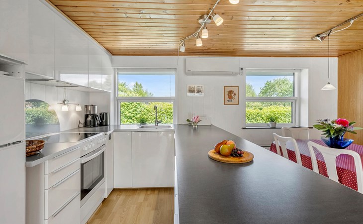 Beleef een ontspannen vakantie in dit prachtig gelegen huis, dat op slechts een steenworp afstand van de zee ligt. De inrichting van het huis is gezellig en uitnodigend. De grote ramen zorgen voor veel licht in de woonkamer, die met zijn comfortabele meubels en houtkachel uitnodigt tot vertoeven en door de overvloed aan hout erg gezellig aanvoelt. De open keuken biedt genoeg ruimte om samen heerlijke maaltijden te bereiden en in gezellig gezelschap te dineren.