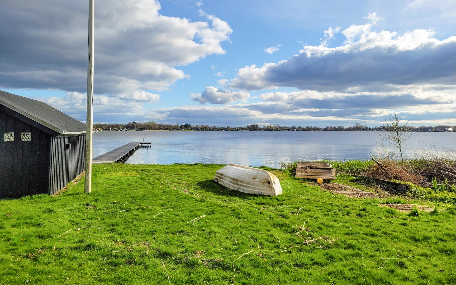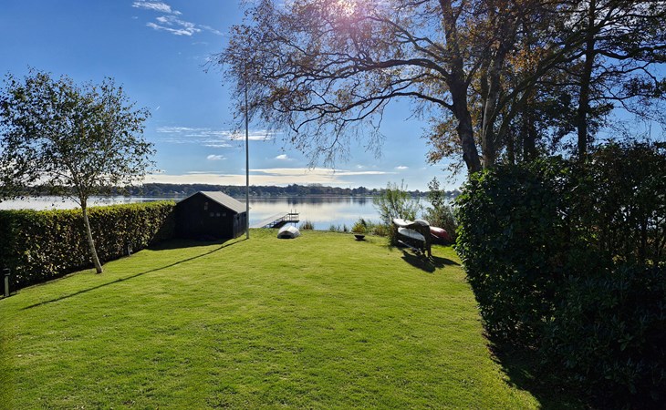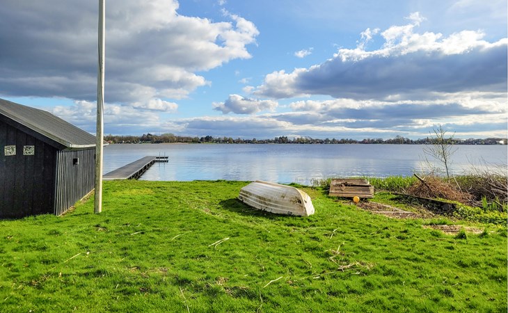 Breng tijd door op het grote houten terras met comfortabele zitplaatsen en uitzicht op het water. Geniet van de rust in de goed onderhouden tuin, omringd door bomen en heggen die voor privacy zorgen. Ontspan in de zon of wandel direct over het terrein naar het meer.