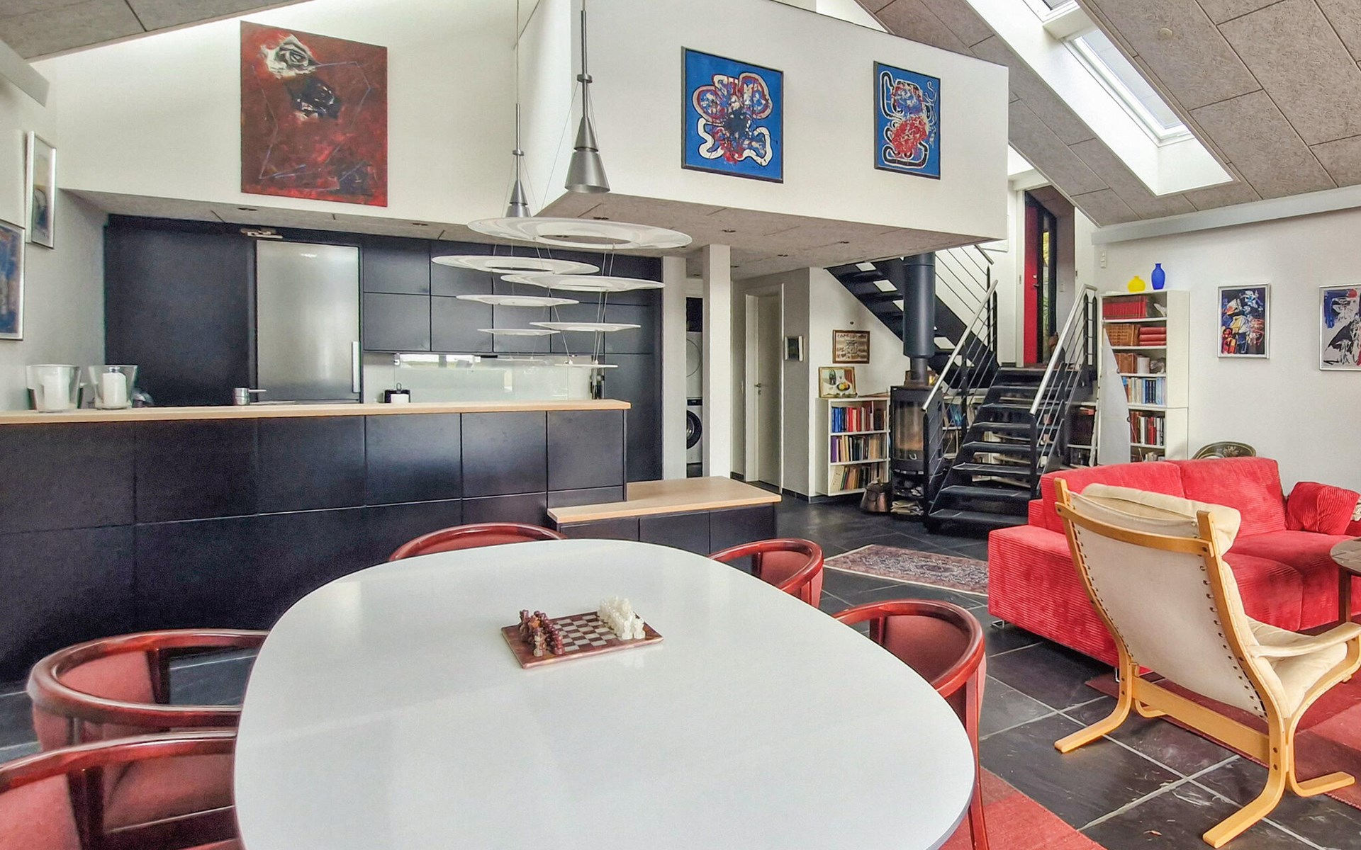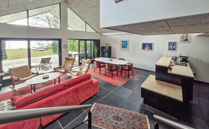 Geniet van je verblijf in dit uitzonderlijke vakantiehuis, dat indruk maakt met zijn heldere architectuur en directe ligging aan het water. Stap binnen en laat je imponeren door het ruime interieur. De hoge plafonds, grote vensterpuien en open woonruimte creëren een lichtdoorstroomde sfeer. Maak het jezelf gemakkelijk op de gezellige zithoek en geniet van het uitzicht op het meer. De moderne keuken is elegant geïntegreerd in de woonkamer en biedt alles wat je nodig hebt om te koken en samen van maaltijden te genieten. De eethoek met mooi meubilair nodigt je uit om te genieten van lange avonden met lekker eten en stimulerende gesprekken. Mooie materialen, kunst aan de muren en een whirlpool in de badkamer ronden de hoogwaardige ambiance af.