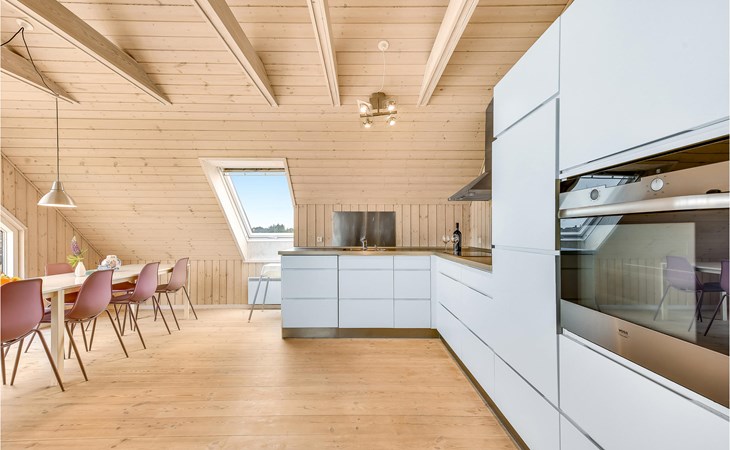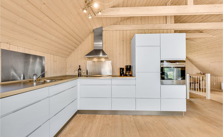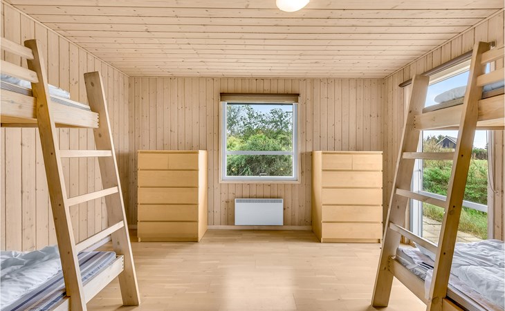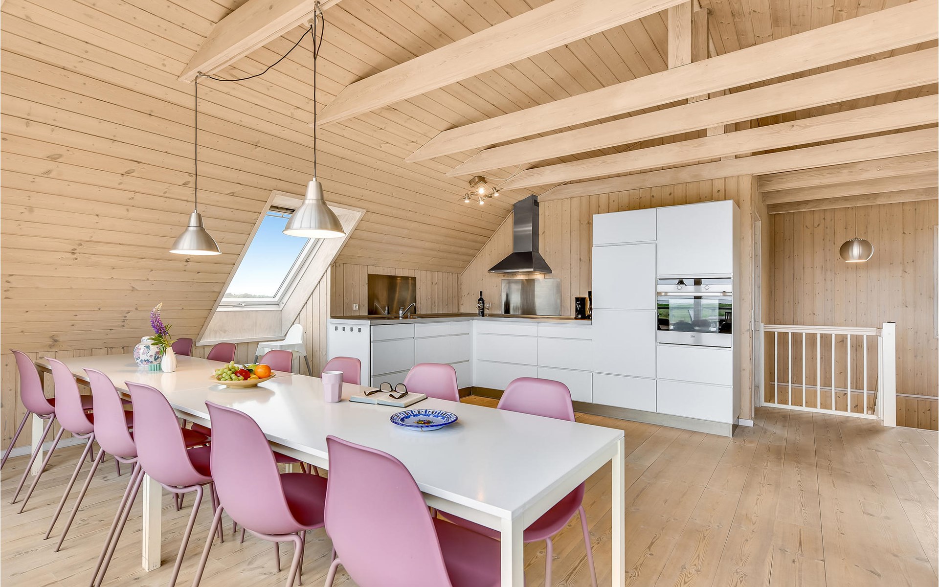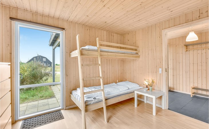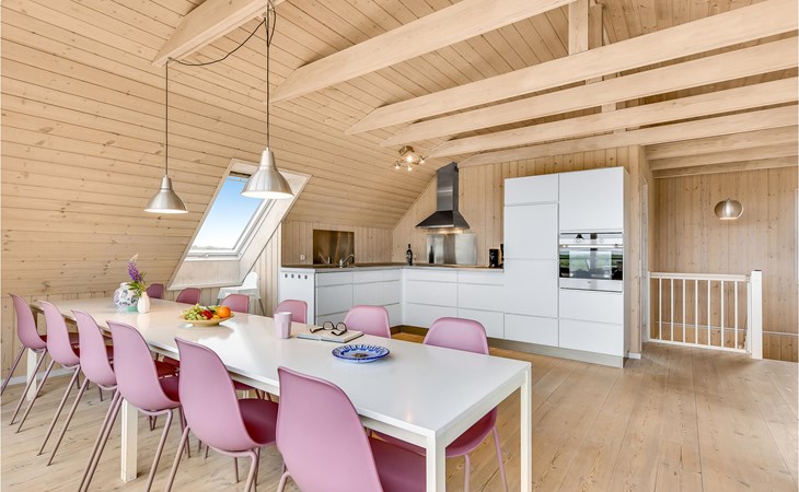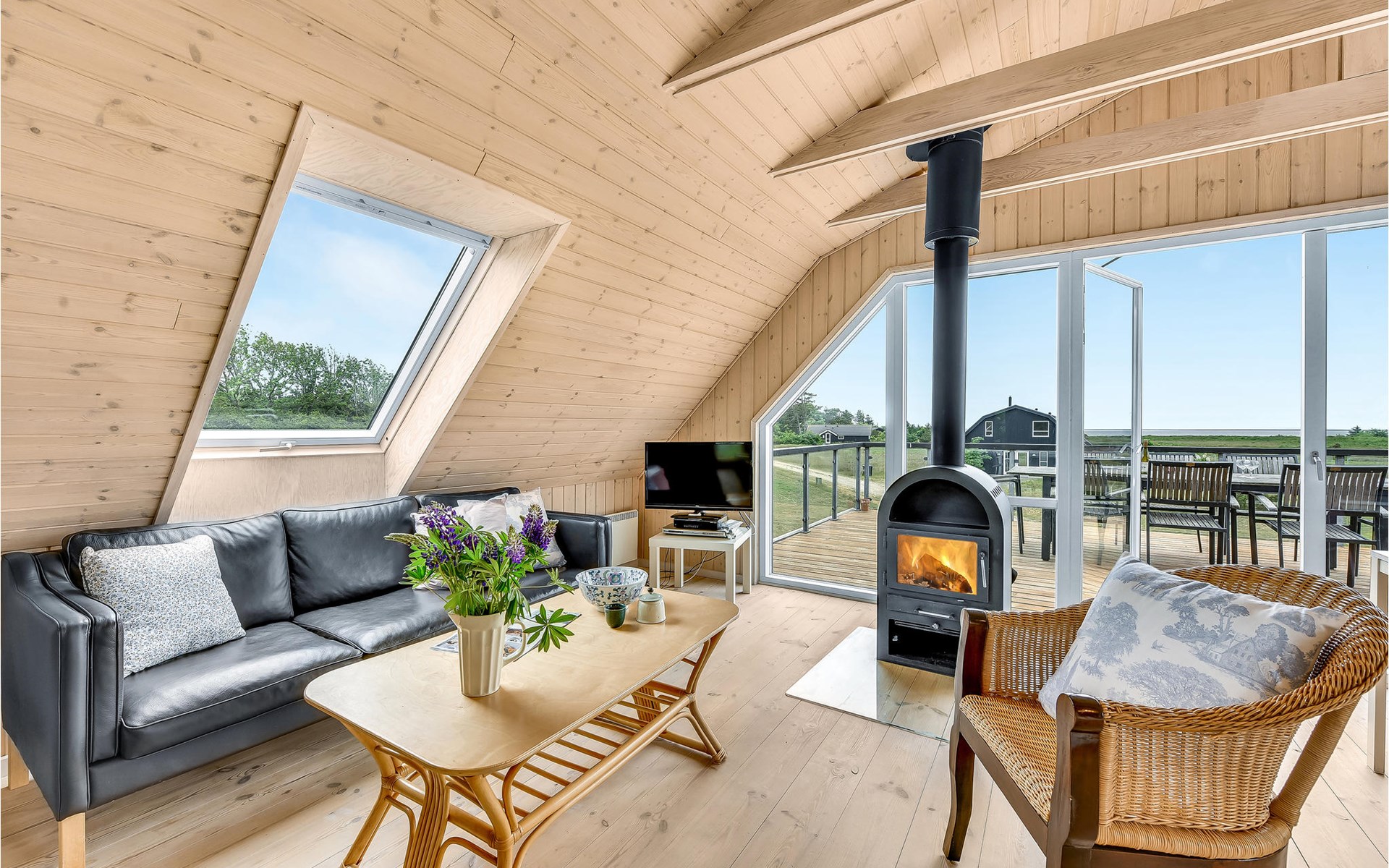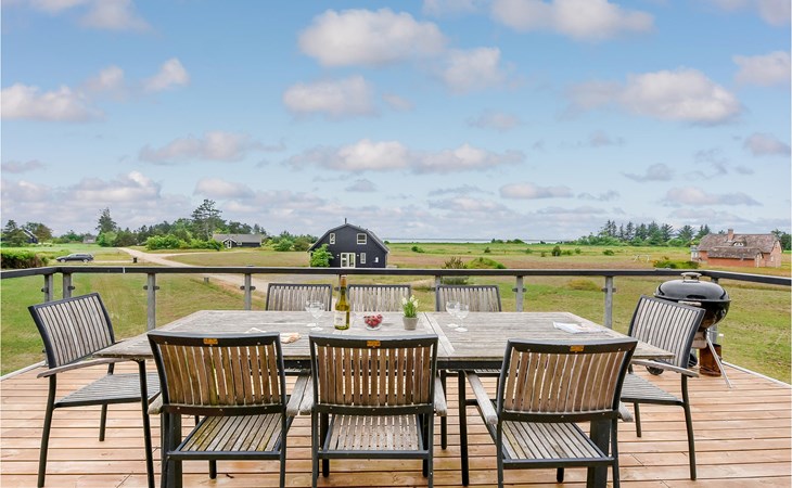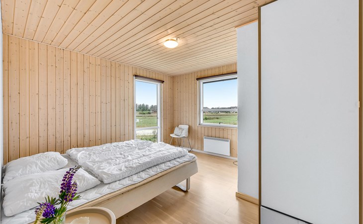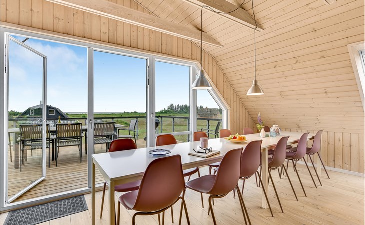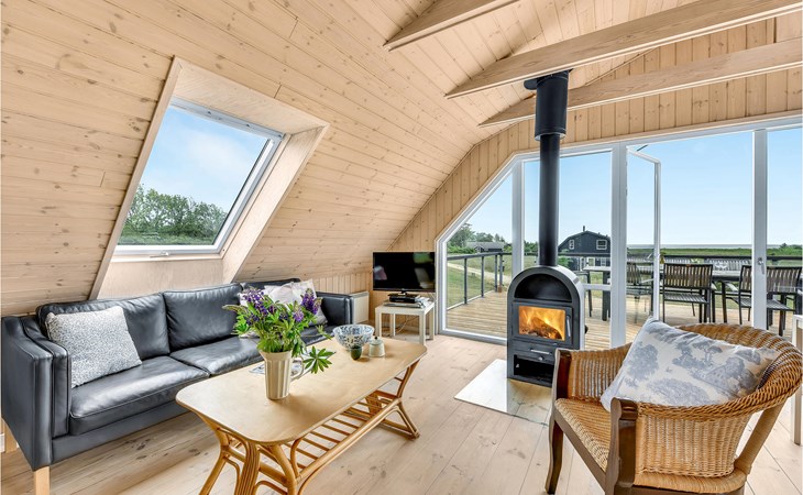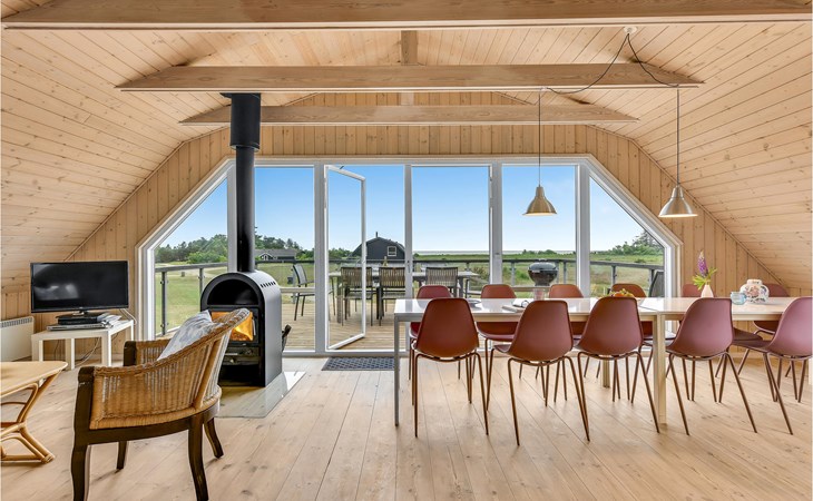 Minimalistisch ingericht vakantiehuis met panoramisch uitzicht over de fjord van Ringkøbing. Het huis is interessant en ongewoon ingericht en vanuit de ruime woonkamer en keuken met de verwarmende open haard heeft u de mogelijkheid om vanaf de eettafel te genieten van een panoramisch uitzicht over de fjord. Geen gordijnen in de woonkamer. Er zijn verschillende goede put en take meren in de omgeving en fietspaden die leiden naar onder andere de idyllische haven van Stauning. Hier is een restaurant met goede Deense gerechten op de kaart. Het fjord van Ringkøbing is omgeven door vele natuurpaden en biedt goede mogelijkheden om te windsurfen.