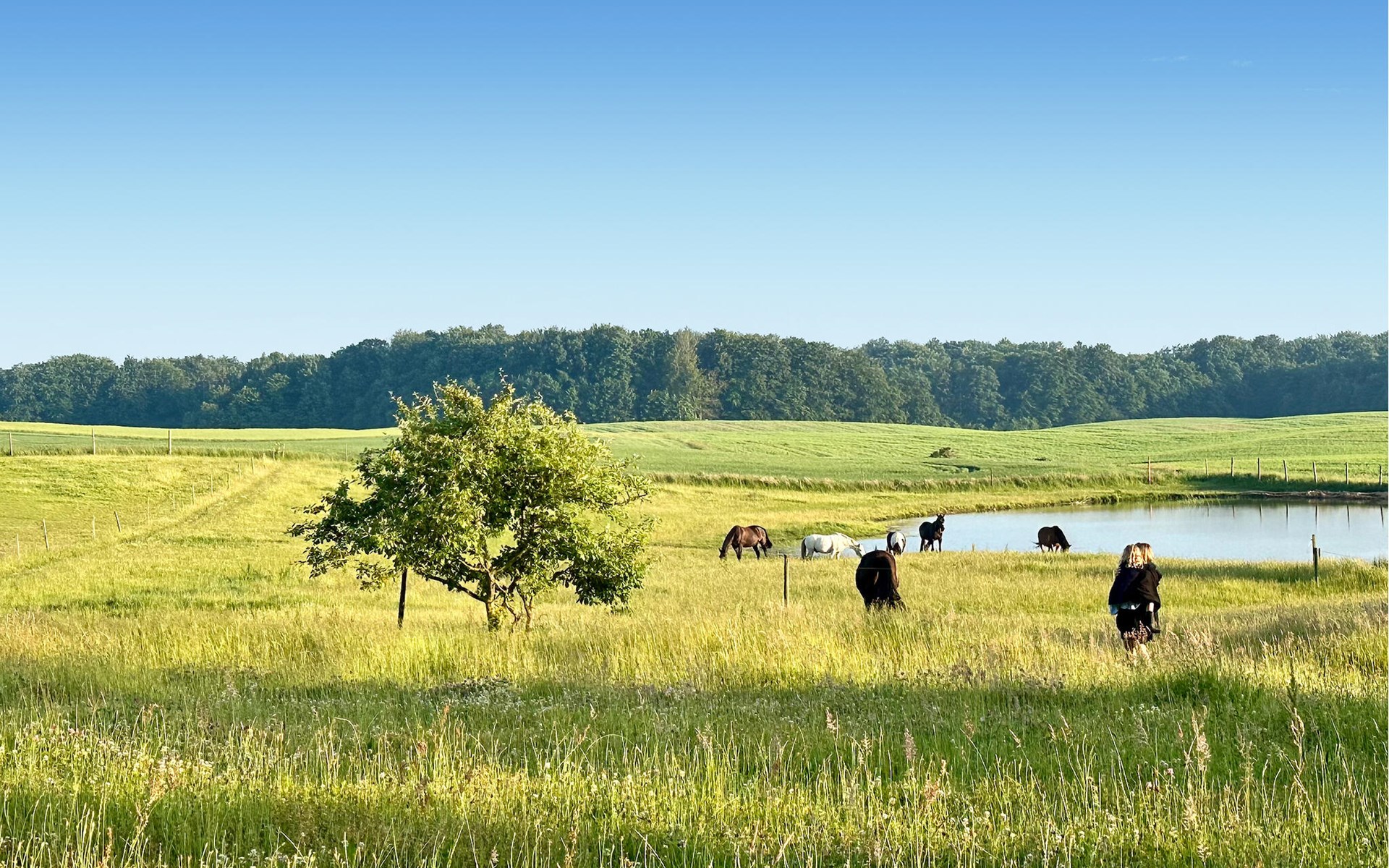 Stap de ruime tuin in en geniet van het uitzicht over de weilanden en velden. Maak het jezelf gemakkelijk in de ligstoelen, luister naar het gezang van de vogels of maak een wandeling naar het kleine meer, dat op slechts een steenworp afstand ligt. Hier kun je picknicken, je voeten in het water dompelen of gewoon genieten van de rust van de natuur.
