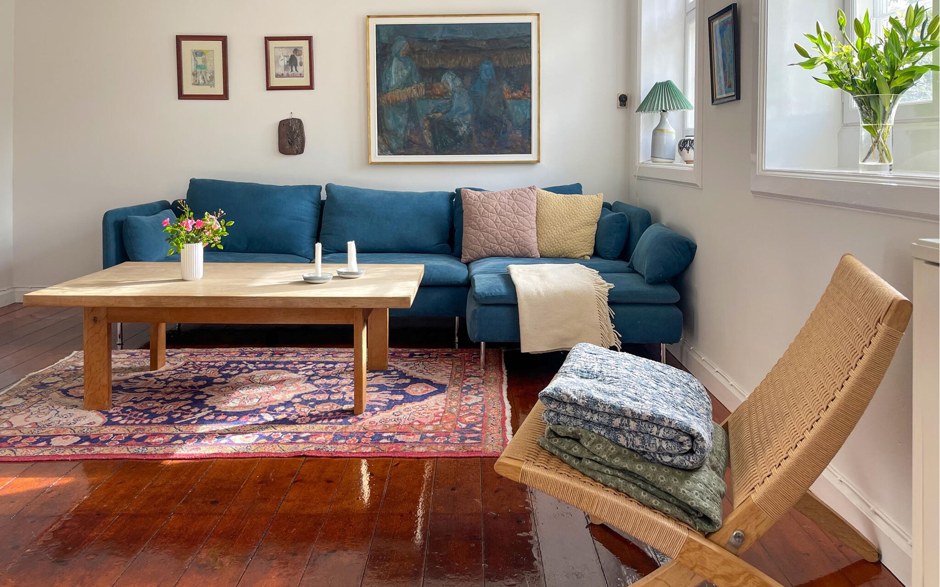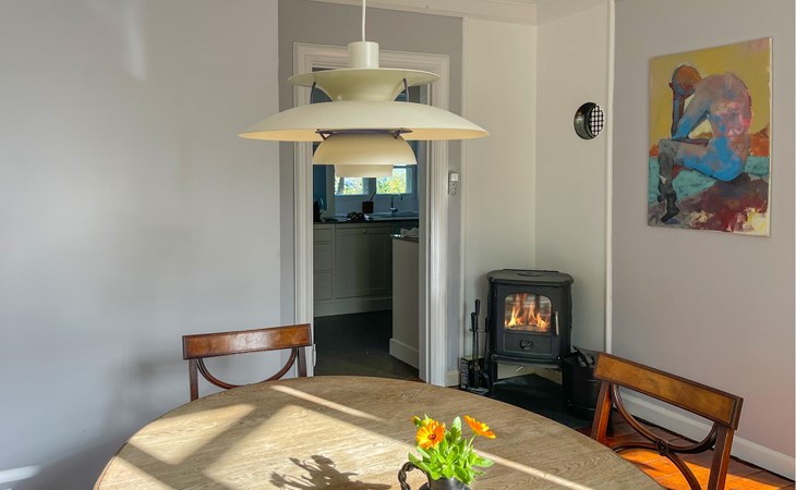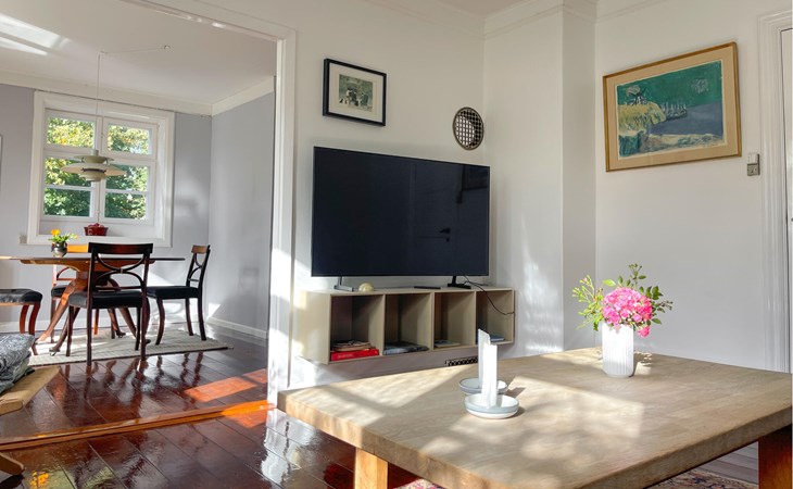 Je vakantiehuis heeft een unieke ligging direct aan het water en ook direct aan het strand van Hullehavn, een van de meest idyllische plekjes op Bornholm. Binnen vind je een liefdevol ontworpen sfeer met lichte kamers, smaakvolle meubels en mooie details. Ontspan in de gezellige woonkamer op de comfortabele bank, geniet van het uitzicht of kijk samen een film. De aangrenzende eethoek met klassieke ronde tafel nodigt uit tot gezellige maaltijden, terwijl de houtkachel voor knusse warmte zorgt op koelere dagen. In de goed uitgeruste keuken kun je naar hartenlust koken en genieten van het uitzicht op de tuin of de zee.