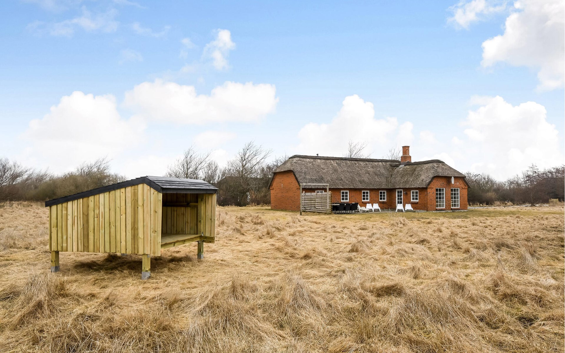 Ervaar rust en comfort in dit charmante huis met rieten dak omringd door duinen.