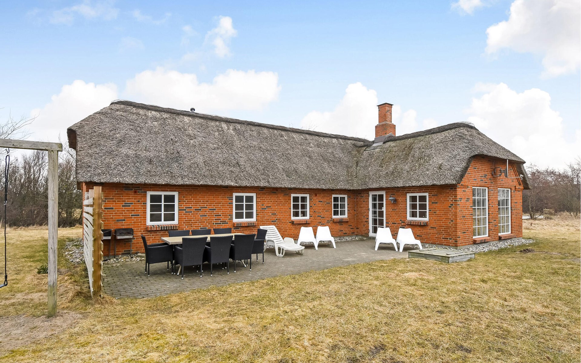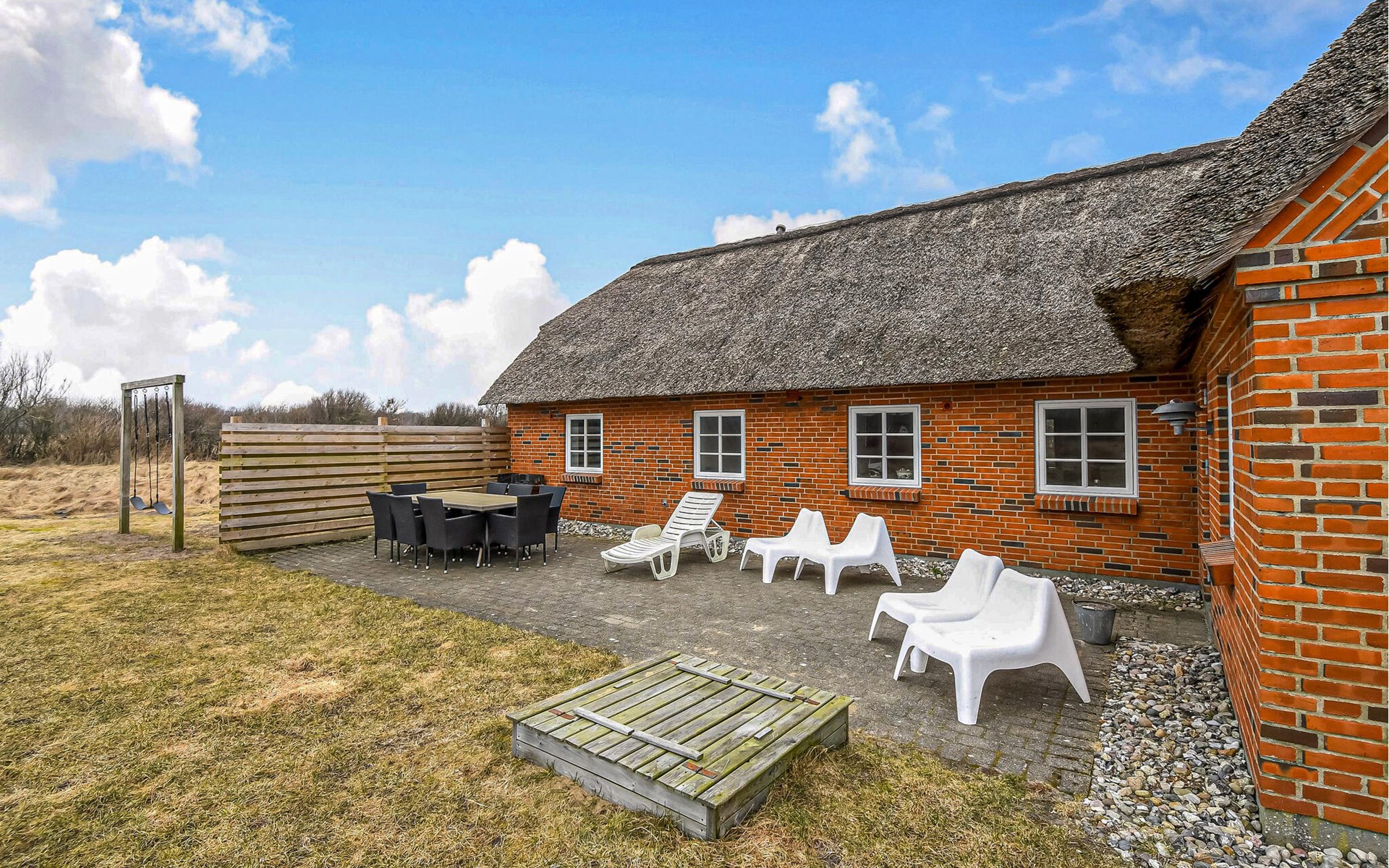 Breng de tijd buiten door op het ruime terras. Geniet van zonnige uren op de ligstoelen of kom 's avonds samen met familie of vrienden om buiten te eten. Kinderen kunnen spelen en rondrennen op het uitgestrekte natuurlijke terrein met een schuilhut en schommel, terwijl het omringende platteland je uitnodigt om te ontspannen en diep adem te halen.