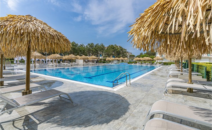 U kunt het prachtige zandstrand bereiken via het centrale pad dat daarheen leidt vanaf het zwembad. Breng uw familietijd door met zwemmen, spelen en ontspannen. U kunt ook de zee verkennen met zeilboten, catamaran en waterfietsen die bij het strand worden aangeboden.
