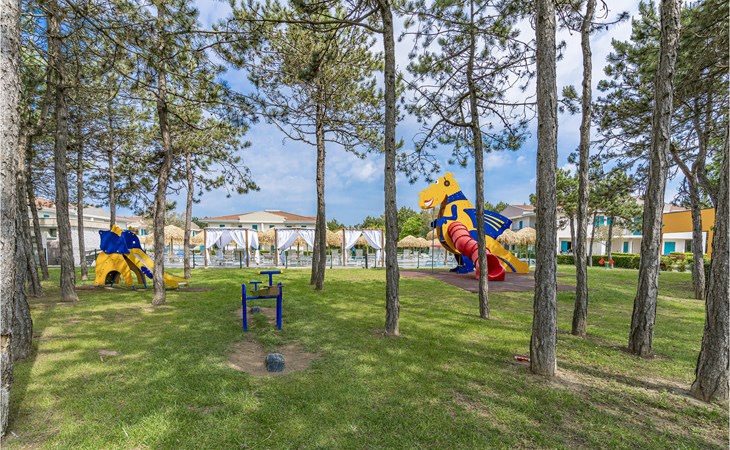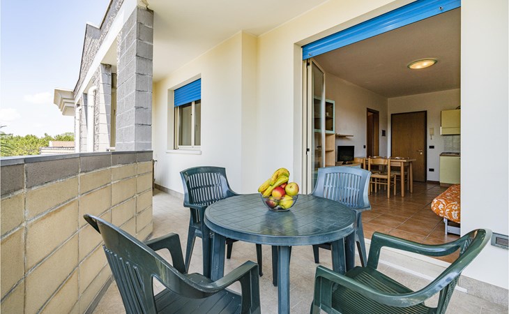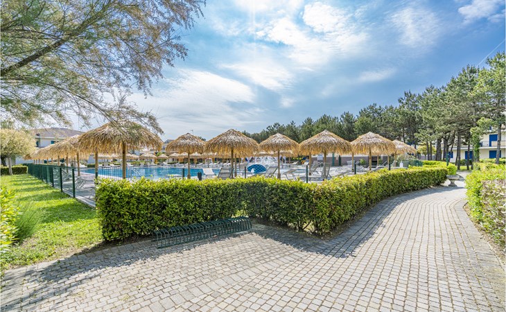 Vlakbij Caorle, verwelkomt deze compacte vakantiewoning u in een verzorgd vakantiecomplex aan zee.