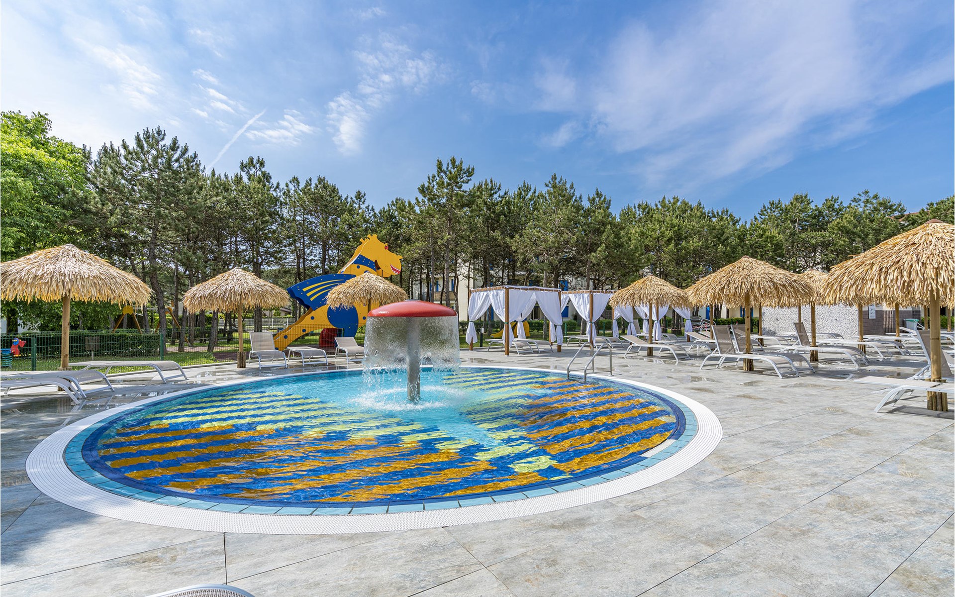 De woning heeft een groot zwembad waar uw kinderen nieuwe vrienden kunnen maken en ook kunnen spelen in de speeltuin. U kunt uw eigen BBQ bereiden op de openbare barbecue in de tuin of het restaurant van het complex bezoeken.