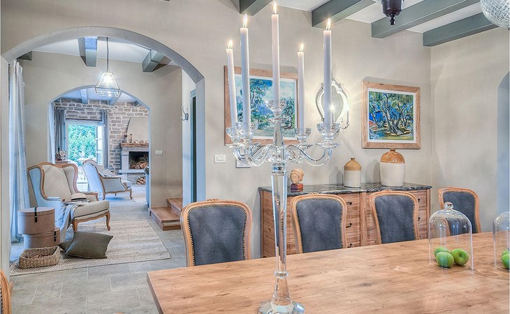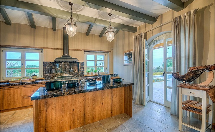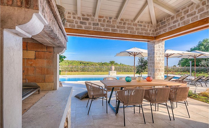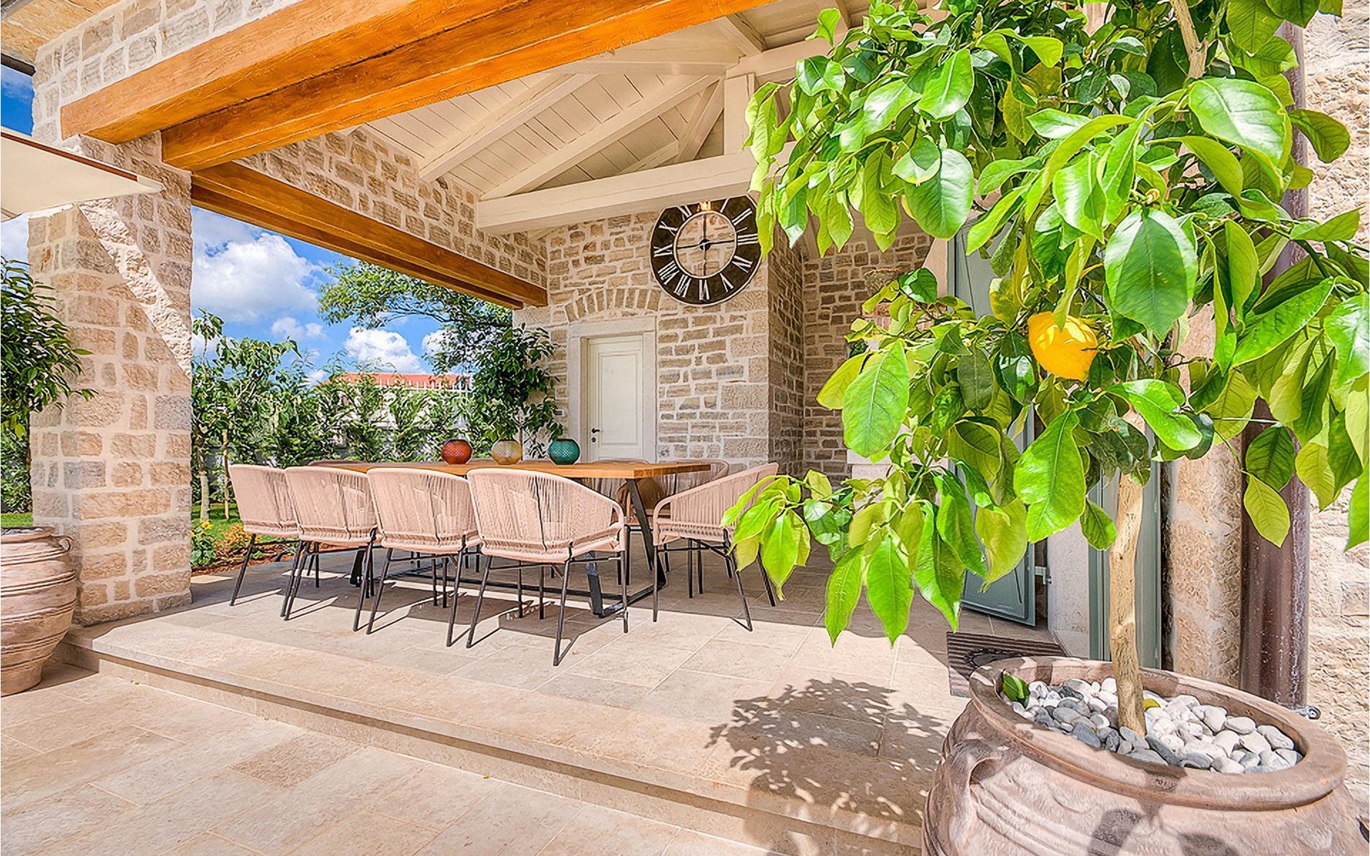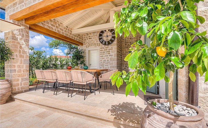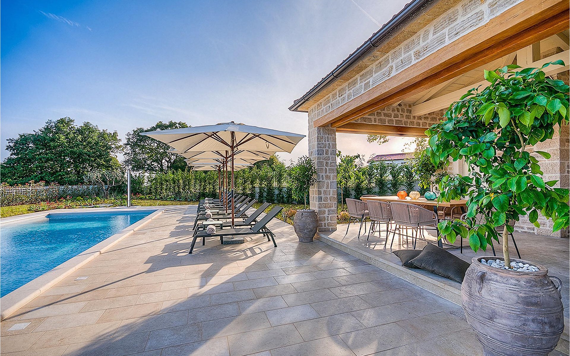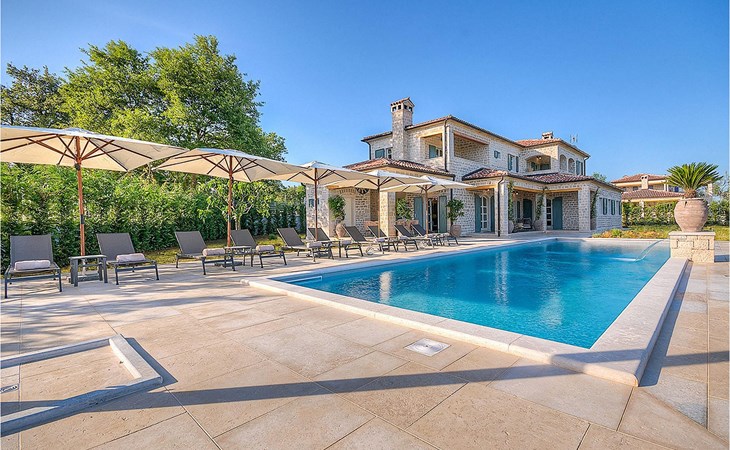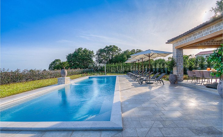 Elegant, stijlvol en prachtig gelegen te midden van het schilderachtige Istrische platteland, maar toch dicht bij zonnige stranden en levendige kustplaatsen, biedt Villa Nevia luxe accommodatie waar u kunt ontspannen en genieten van elke minuut van uw vakantie. De begane grond is volledig gewijd aan uitbundig entertainment. De heerlijk ruime kamer is verdeeld door een stenen boog in een woon-, eet- en kookgedeelte, met grote openslaande deuren die een overvloed aan warm Istrisch licht binnenbrengen. Natuurstenen muren, plafonds met houten balken en de prachtige open haard creëren een warme, gezellige sfeer, terwijl de mix van modern en vintage meubilair en een uitstekende inrichting u voorzien van eersteklas comfort. Drie slaapkamers zijn verdeeld over de bovenverdieping, terwijl de andere twee op de begane grond direct uitkomen op het verleidelijke privézwembad, een heerlijke plek om te ontspannen en tot rust te komen. De mooie, overdekte veranda met authentieke ingebouwde barbecue en grote eettafel is een aantrekkelijk toevluchtsoord voor de zomerhitte, maar ook de perfecte plek om gezellig buiten te eten.