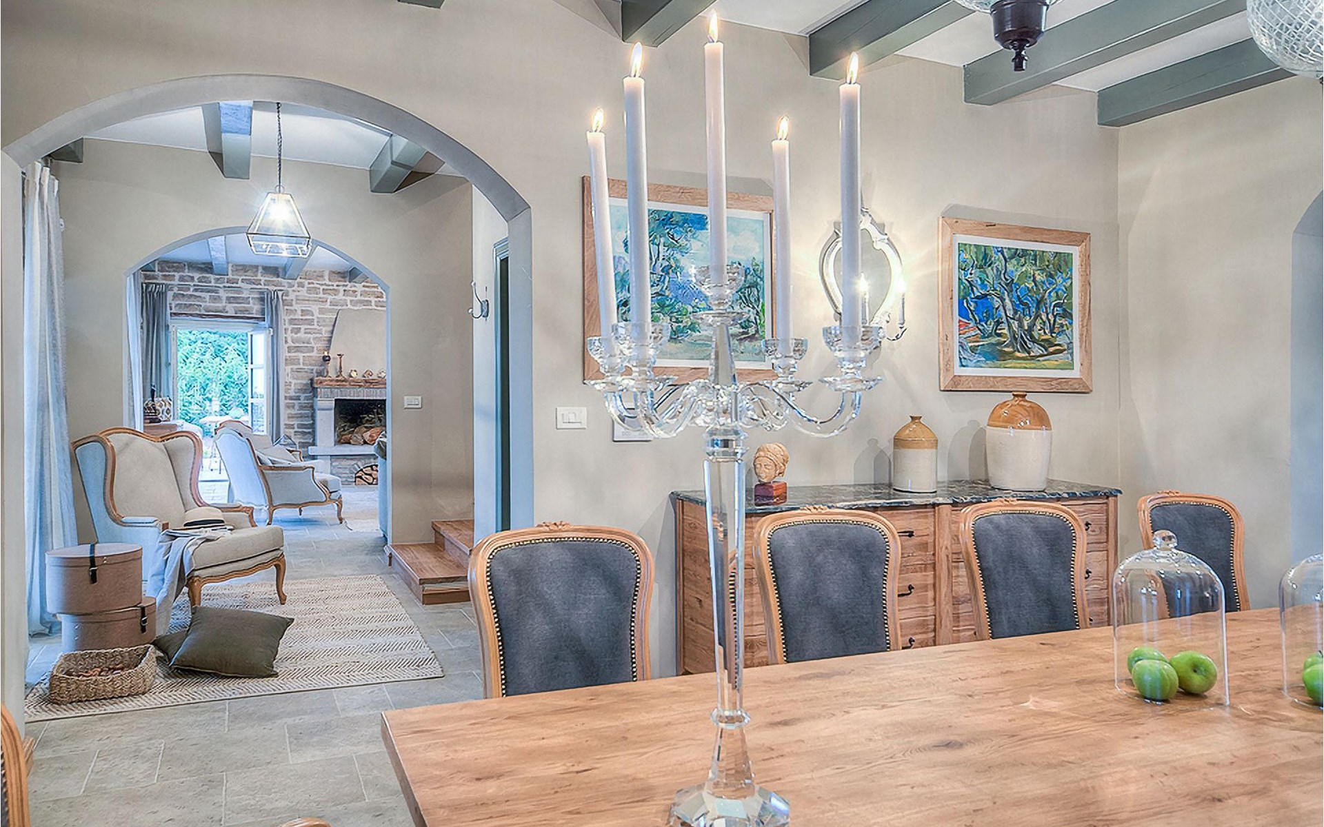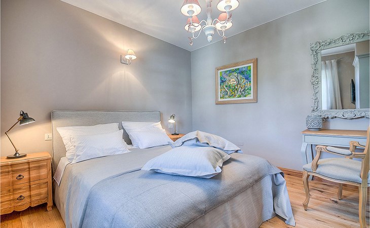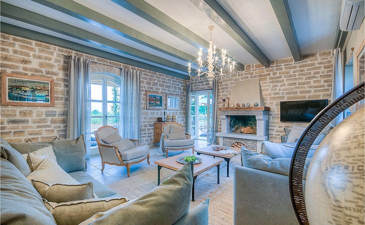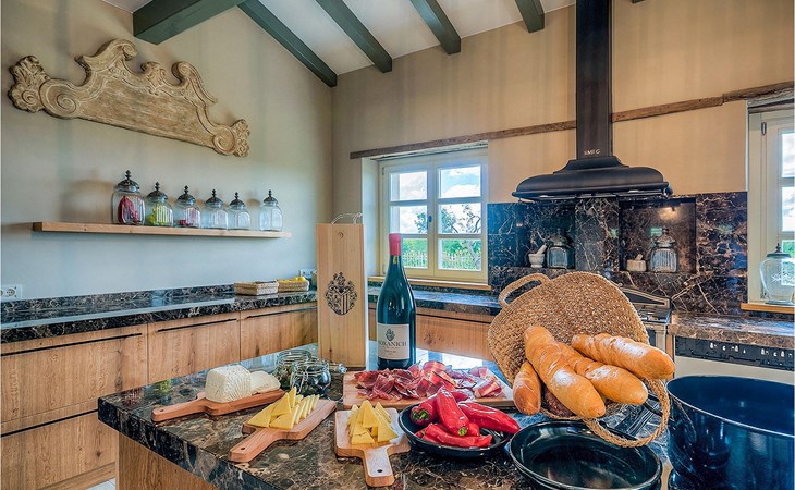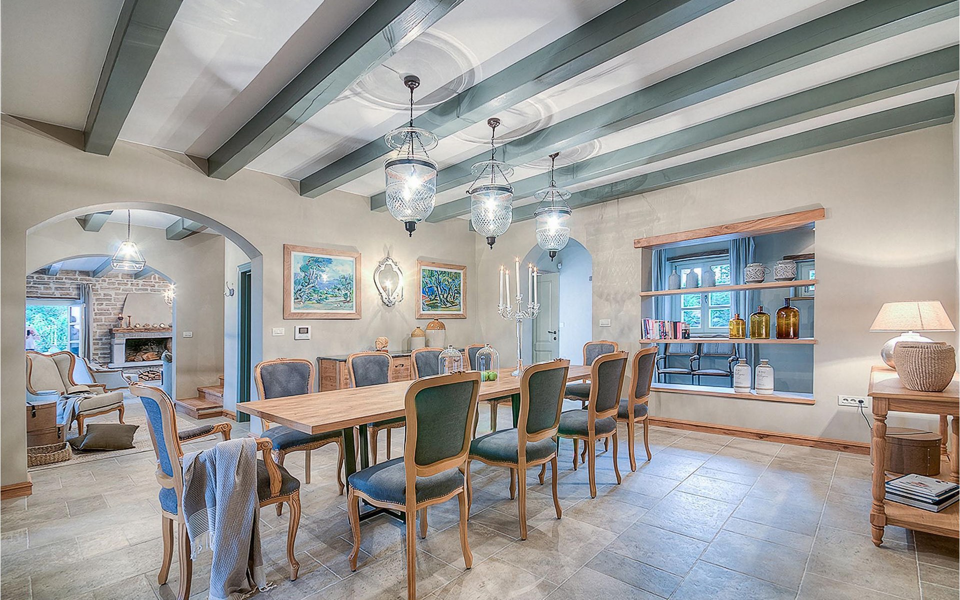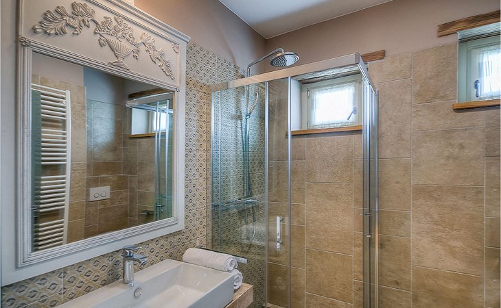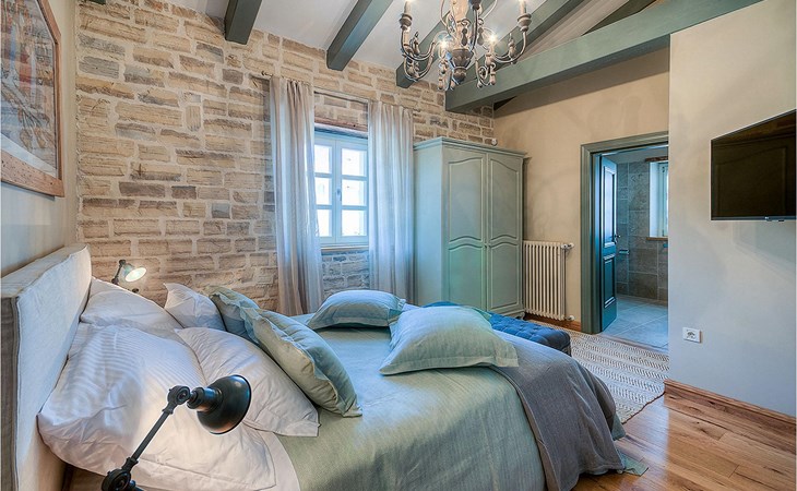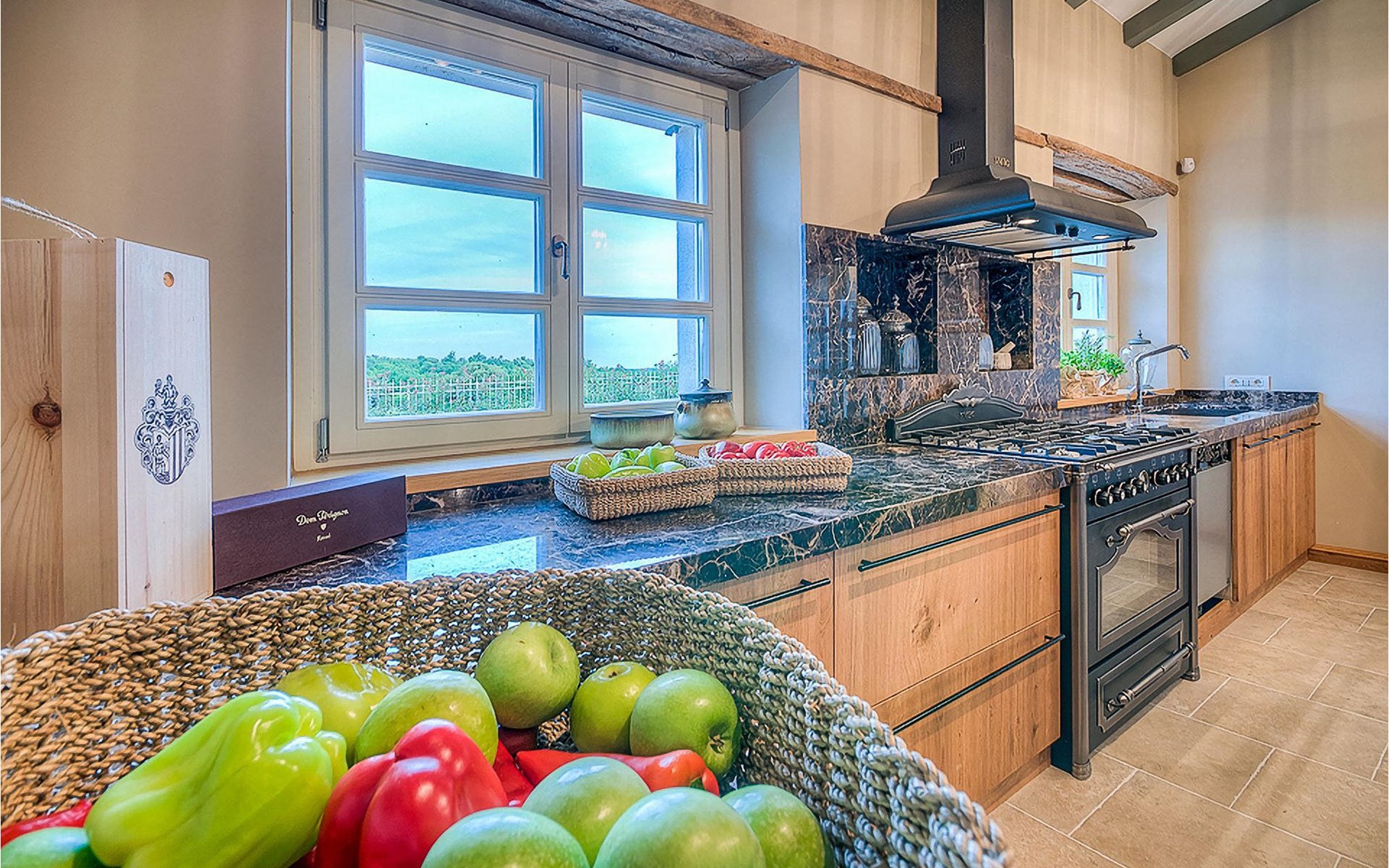 Elegant, stijlvol en prachtig gelegen te midden van het schilderachtige Istrische platteland, maar toch dicht bij zonnige stranden en levendige kustplaatsen, biedt Villa Nevia luxe accommodatie waar u kunt ontspannen en genieten van elke minuut van uw vakantie. De begane grond is volledig gewijd aan uitbundig entertainment. De heerlijk ruime kamer is verdeeld door een stenen boog in een woon-, eet- en kookgedeelte, met grote openslaande deuren die een overvloed aan warm Istrisch licht binnenbrengen. Natuurstenen muren, plafonds met houten balken en de prachtige open haard creëren een warme, gezellige sfeer, terwijl de mix van modern en vintage meubilair en een uitstekende inrichting u voorzien van eersteklas comfort. Drie slaapkamers zijn verdeeld over de bovenverdieping, terwijl de andere twee op de begane grond direct uitkomen op het verleidelijke privézwembad, een heerlijke plek om te ontspannen en tot rust te komen. De mooie, overdekte veranda met authentieke ingebouwde barbecue en grote eettafel is een aantrekkelijk toevluchtsoord voor de zomerhitte, maar ook de perfecte plek om gezellig buiten te eten.