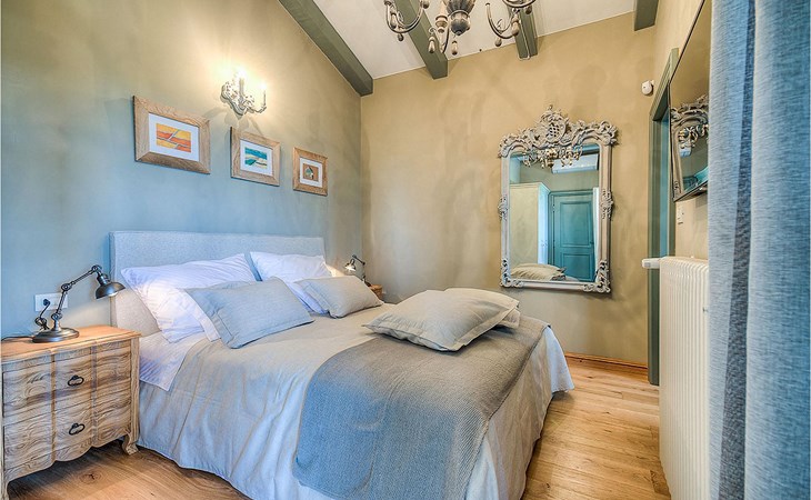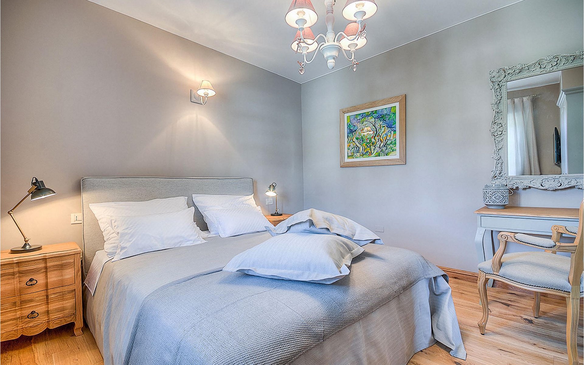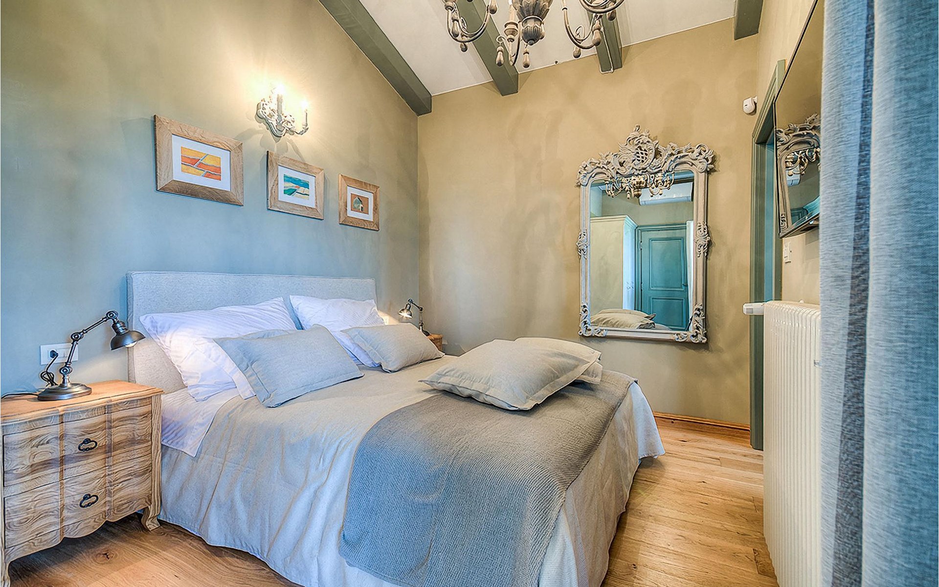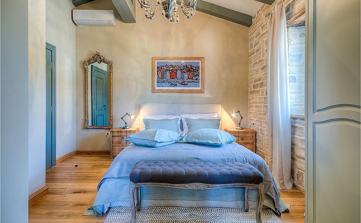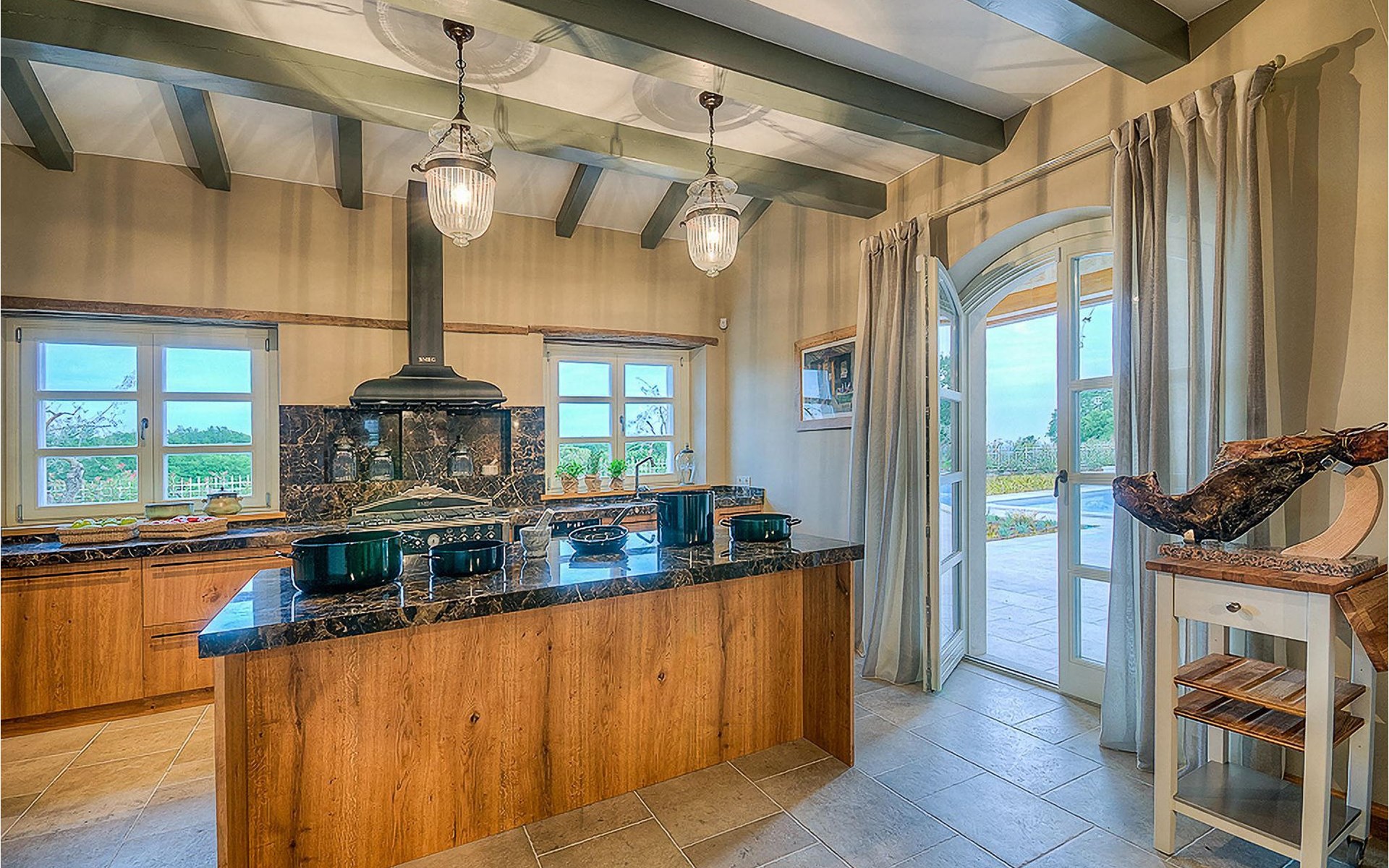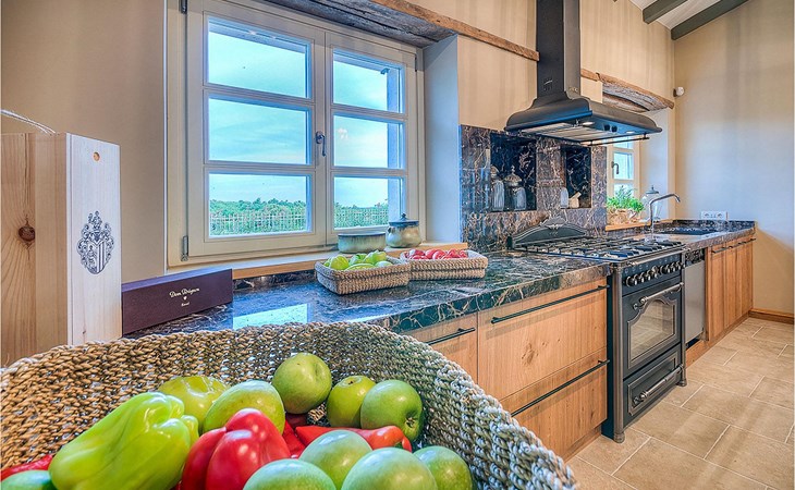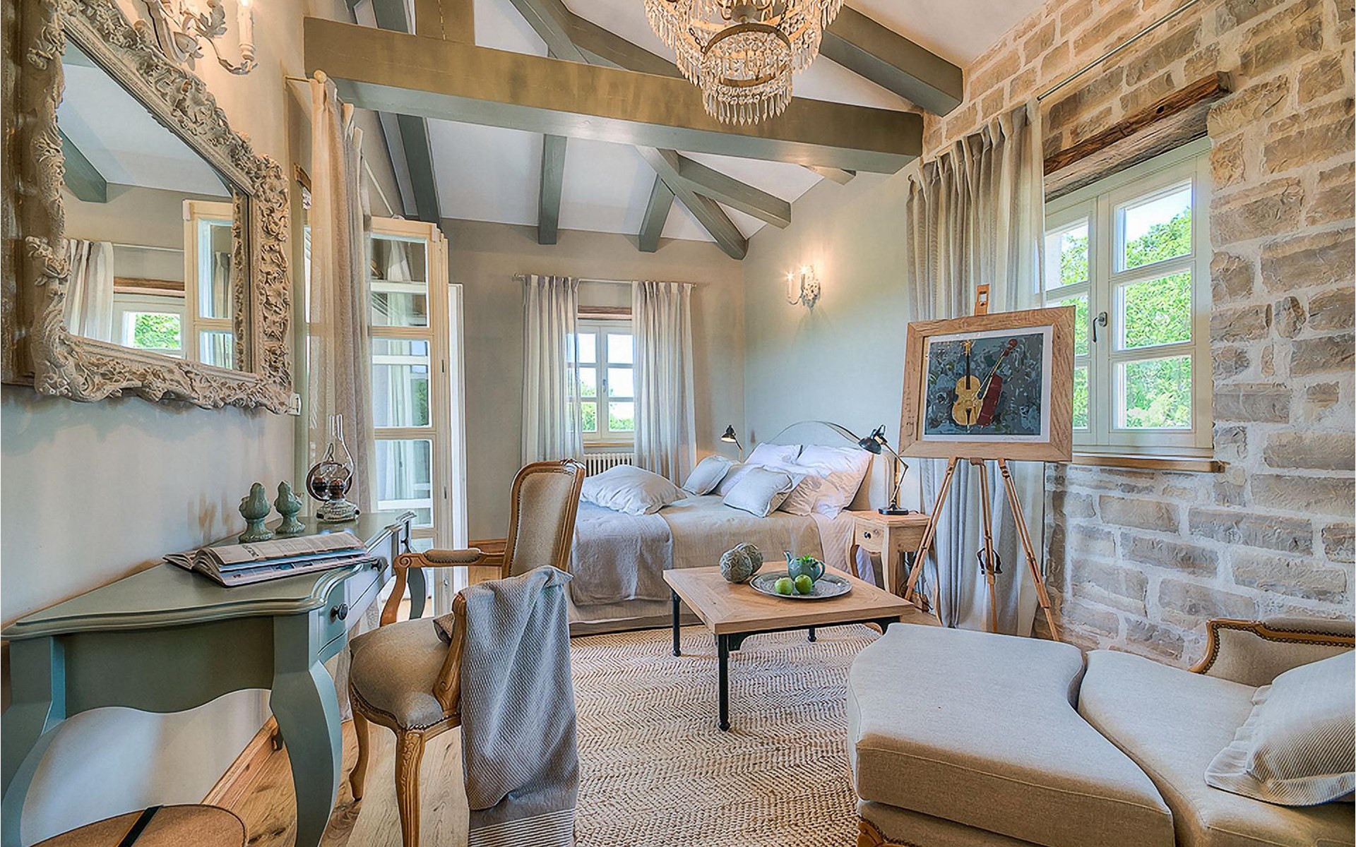 Elegant, stijlvol en prachtig gelegen te midden van het schilderachtige Istrische platteland, maar toch dicht bij zonnige stranden en levendige kustplaatsen, biedt Villa Nevia luxe accommodatie waar u kunt ontspannen en genieten van elke minuut van uw vakantie. De begane grond is volledig gewijd aan uitbundig entertainment. De heerlijk ruime kamer is verdeeld door een stenen boog in een woon-, eet- en kookgedeelte, met grote openslaande deuren die een overvloed aan warm Istrisch licht binnenbrengen. Natuurstenen muren, plafonds met houten balken en de prachtige open haard creëren een warme, gezellige sfeer, terwijl de mix van modern en vintage meubilair en een uitstekende inrichting u voorzien van eersteklas comfort. Drie slaapkamers zijn verdeeld over de bovenverdieping, terwijl de andere twee op de begane grond direct uitkomen op het verleidelijke privézwembad, een heerlijke plek om te ontspannen en tot rust te komen. De mooie, overdekte veranda met authentieke ingebouwde barbecue en grote eettafel is een aantrekkelijk toevluchtsoord voor de zomerhitte, maar ook de perfecte plek om gezellig buiten te eten.