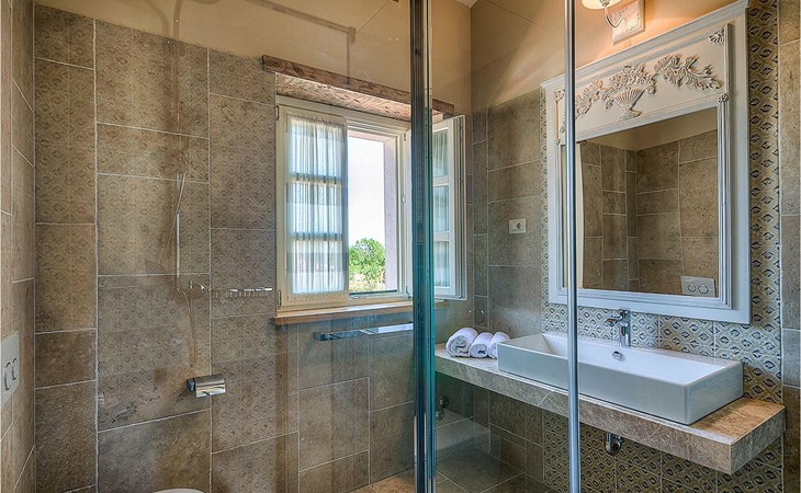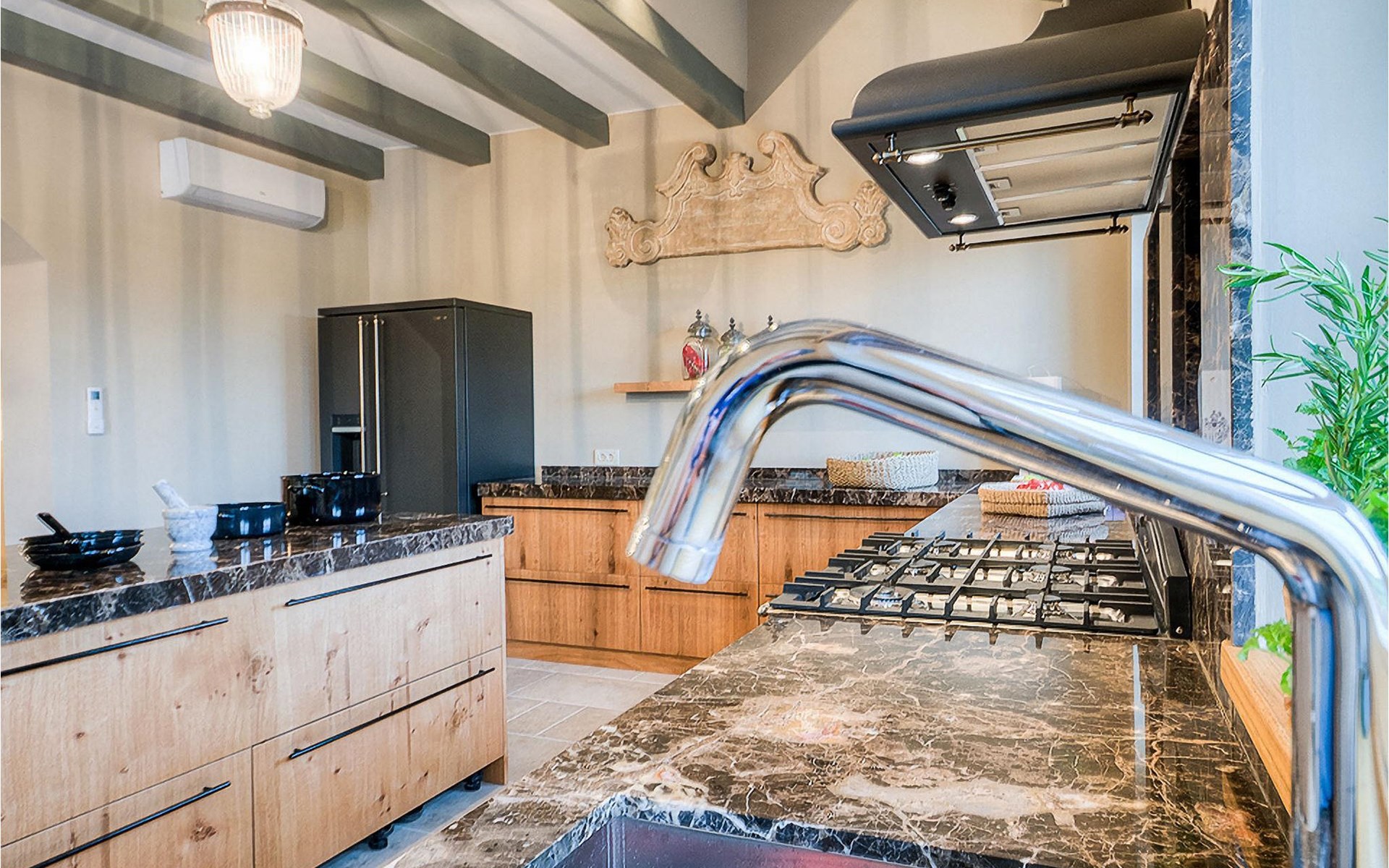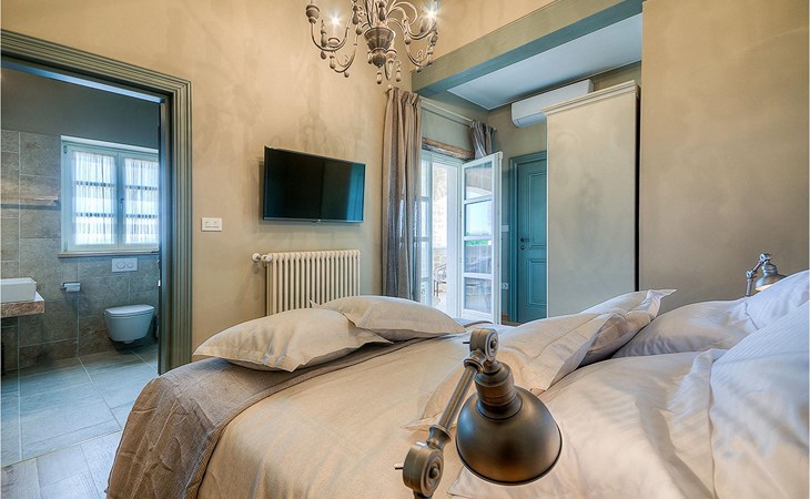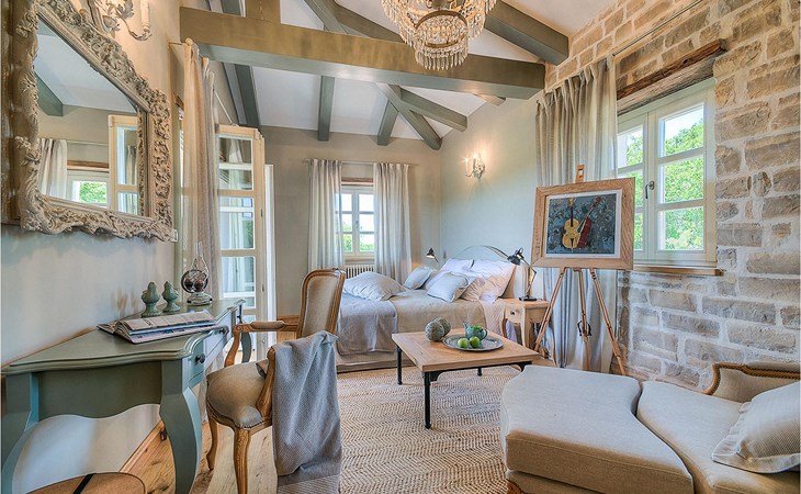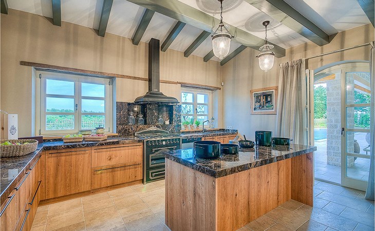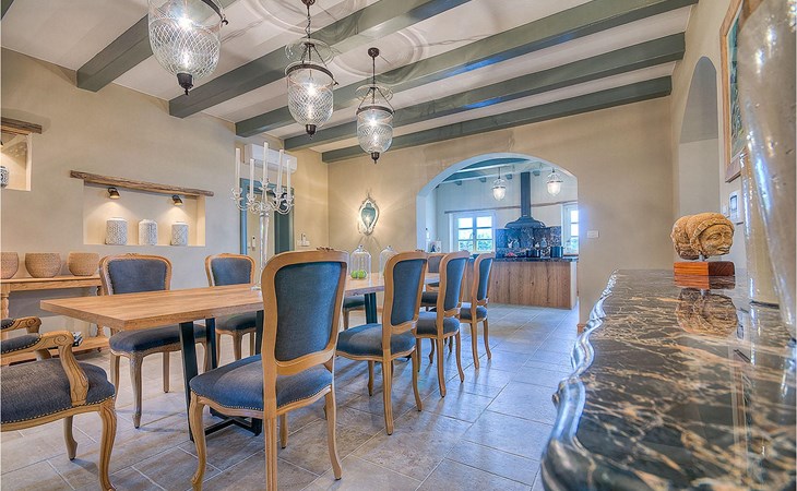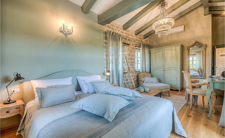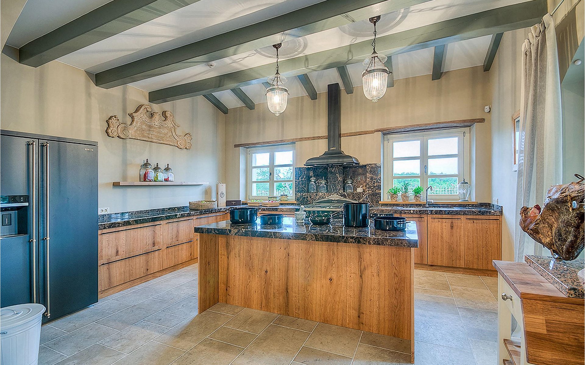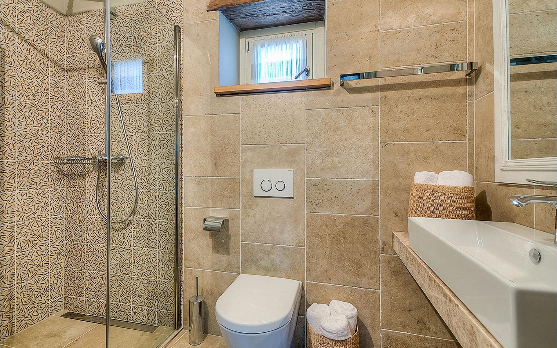 Elegant, stijlvol en prachtig gelegen te midden van het schilderachtige Istrische platteland, maar toch dicht bij zonnige stranden en levendige kustplaatsen, biedt Villa Nevia luxe accommodatie waar u kunt ontspannen en genieten van elke minuut van uw vakantie. De begane grond is volledig gewijd aan uitbundig entertainment. De heerlijk ruime kamer is verdeeld door een stenen boog in een woon-, eet- en kookgedeelte, met grote openslaande deuren die een overvloed aan warm Istrisch licht binnenbrengen. Natuurstenen muren, plafonds met houten balken en de prachtige open haard creëren een warme, gezellige sfeer, terwijl de mix van modern en vintage meubilair en een uitstekende inrichting u voorzien van eersteklas comfort. Drie slaapkamers zijn verdeeld over de bovenverdieping, terwijl de andere twee op de begane grond direct uitkomen op het verleidelijke privézwembad, een heerlijke plek om te ontspannen en tot rust te komen. De mooie, overdekte veranda met authentieke ingebouwde barbecue en grote eettafel is een aantrekkelijk toevluchtsoord voor de zomerhitte, maar ook de perfecte plek om gezellig buiten te eten.