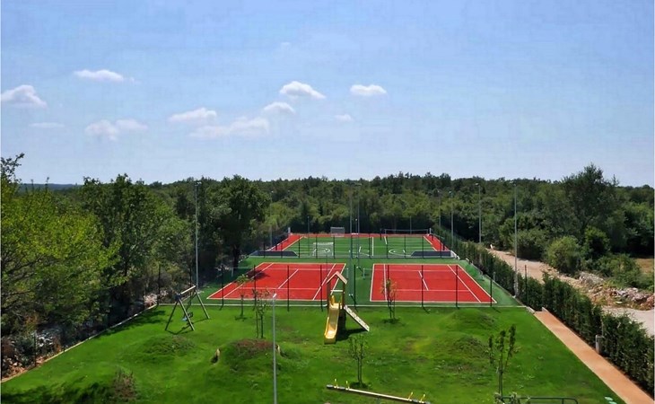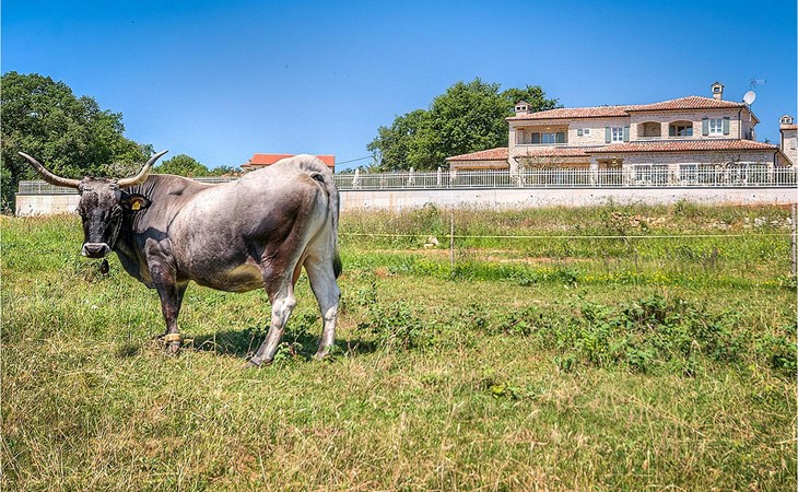 Deze droomvilla maakt samen met Villa Elli, Villa Elena en Villa Zoe deel uit van een luxeproject met 5600 m2 eigen grond, dat de gasten van deze 4 villa's een biologische tuin met seizoensgroenten, openluchtfitness, 2 tennisbanen, 2 jeu de boulesbanen en sportvelden voor handbal, voetbal, basketbal en volleybal biedt. Voor een echte Istrische ervaring kun je ook 3 Boskarins, witgrijze langhoornige runderen, het symbool van de regio, op het landgoed bekijken.