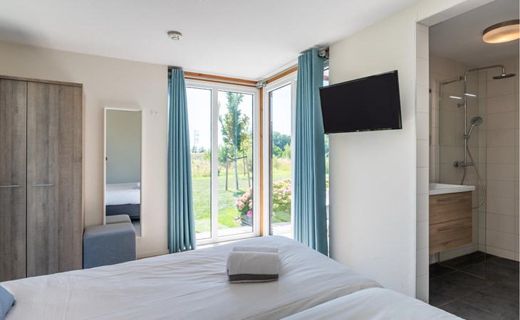Maak een aangename wandeling langs de waterkant. De jachthaven met restaurant ligt op loopafstand van de residentie. De residentie heeft een gedeelde afsluitbare berging waar je je fietsen kunt stallen.