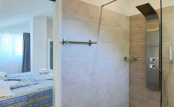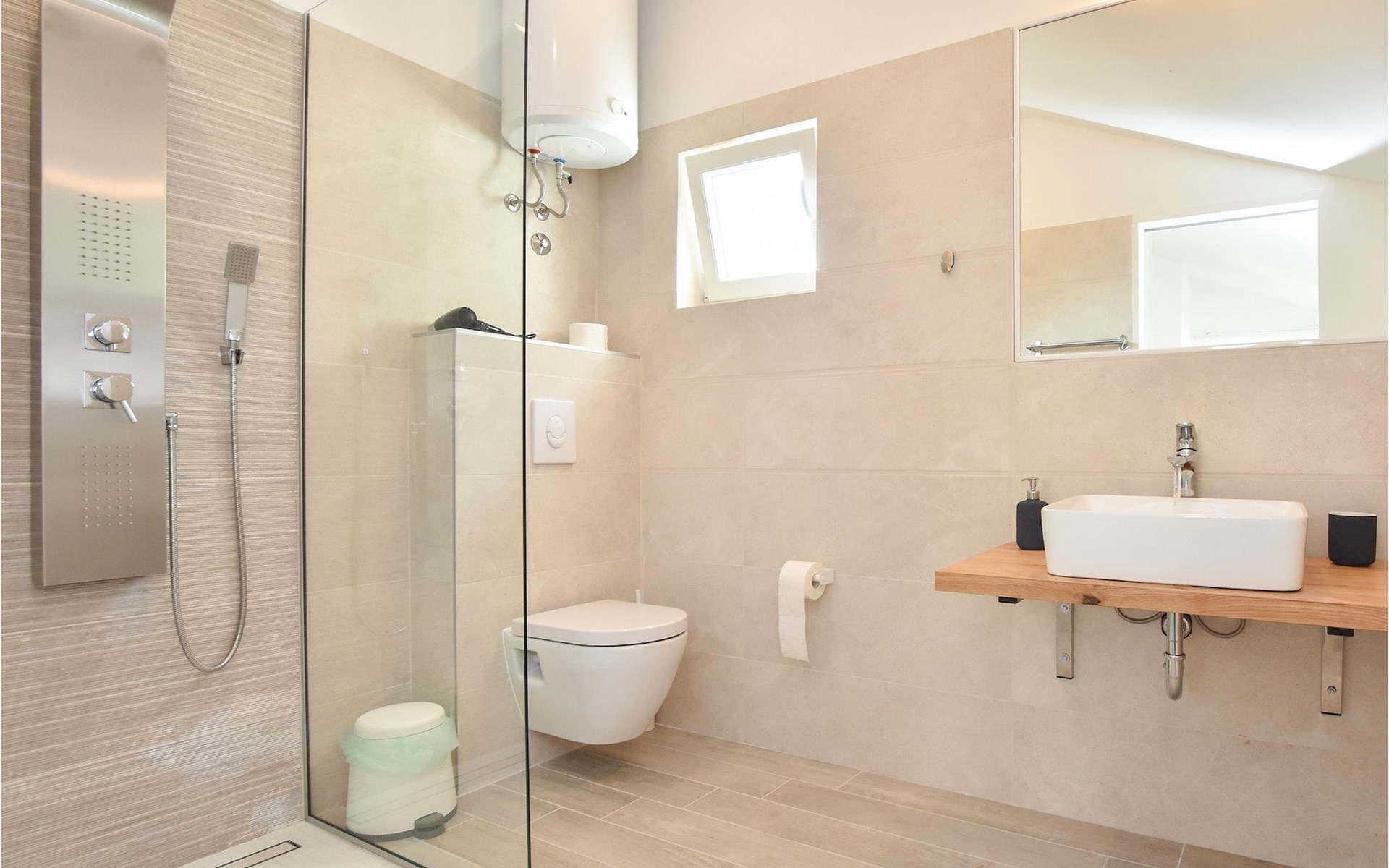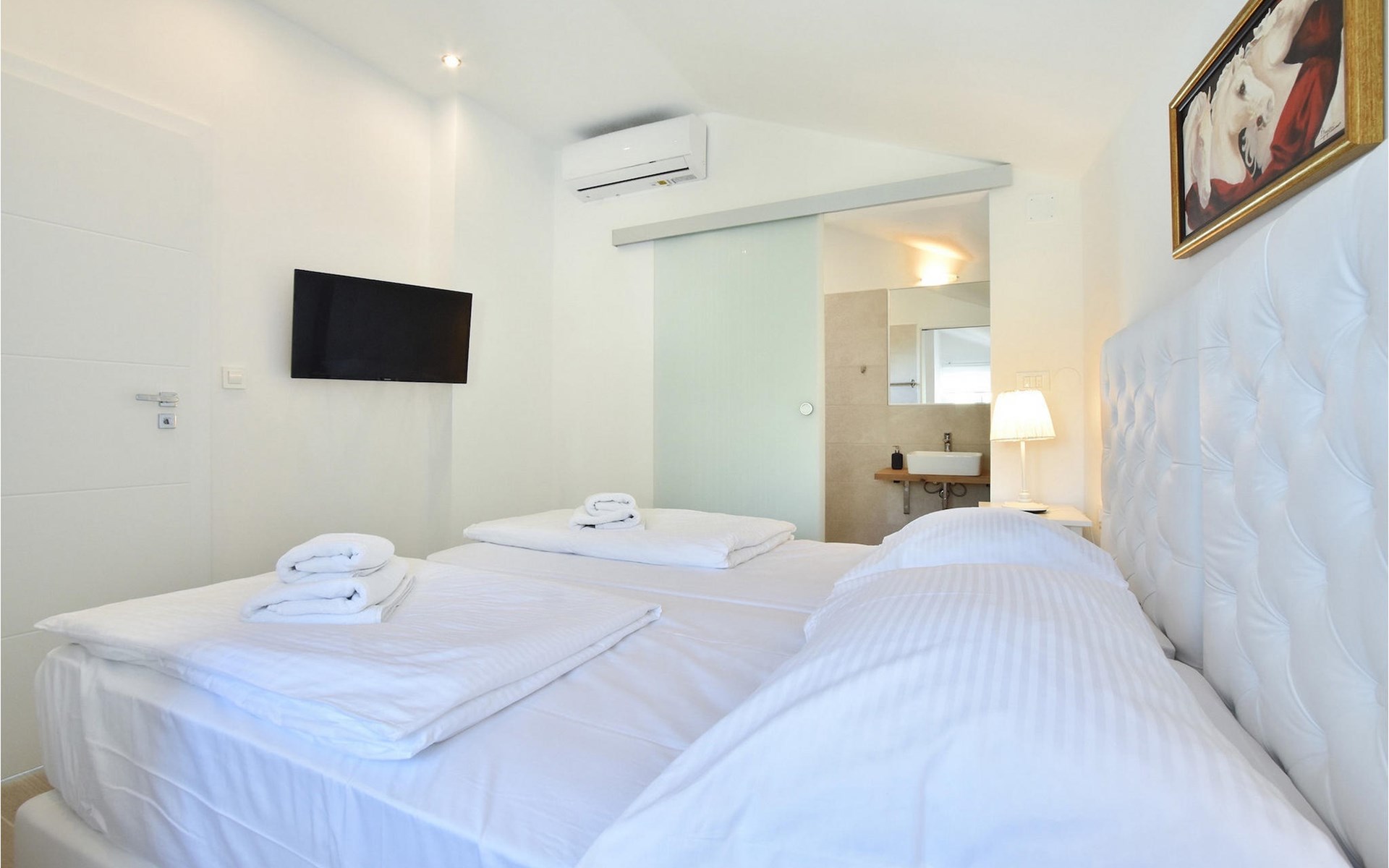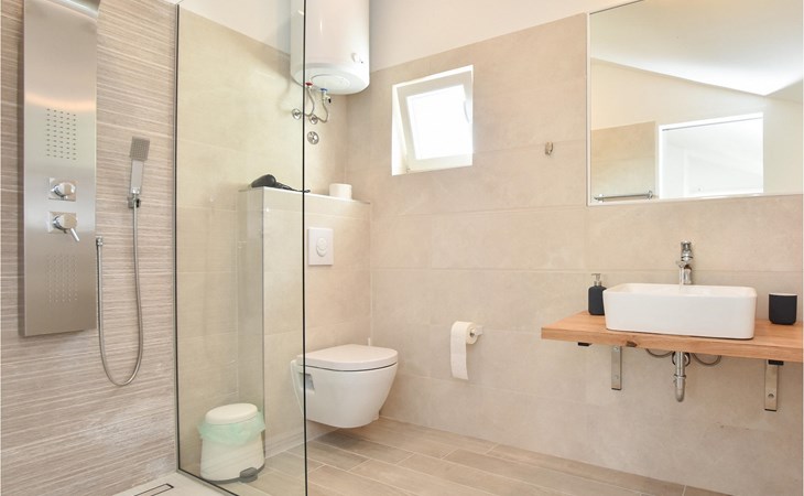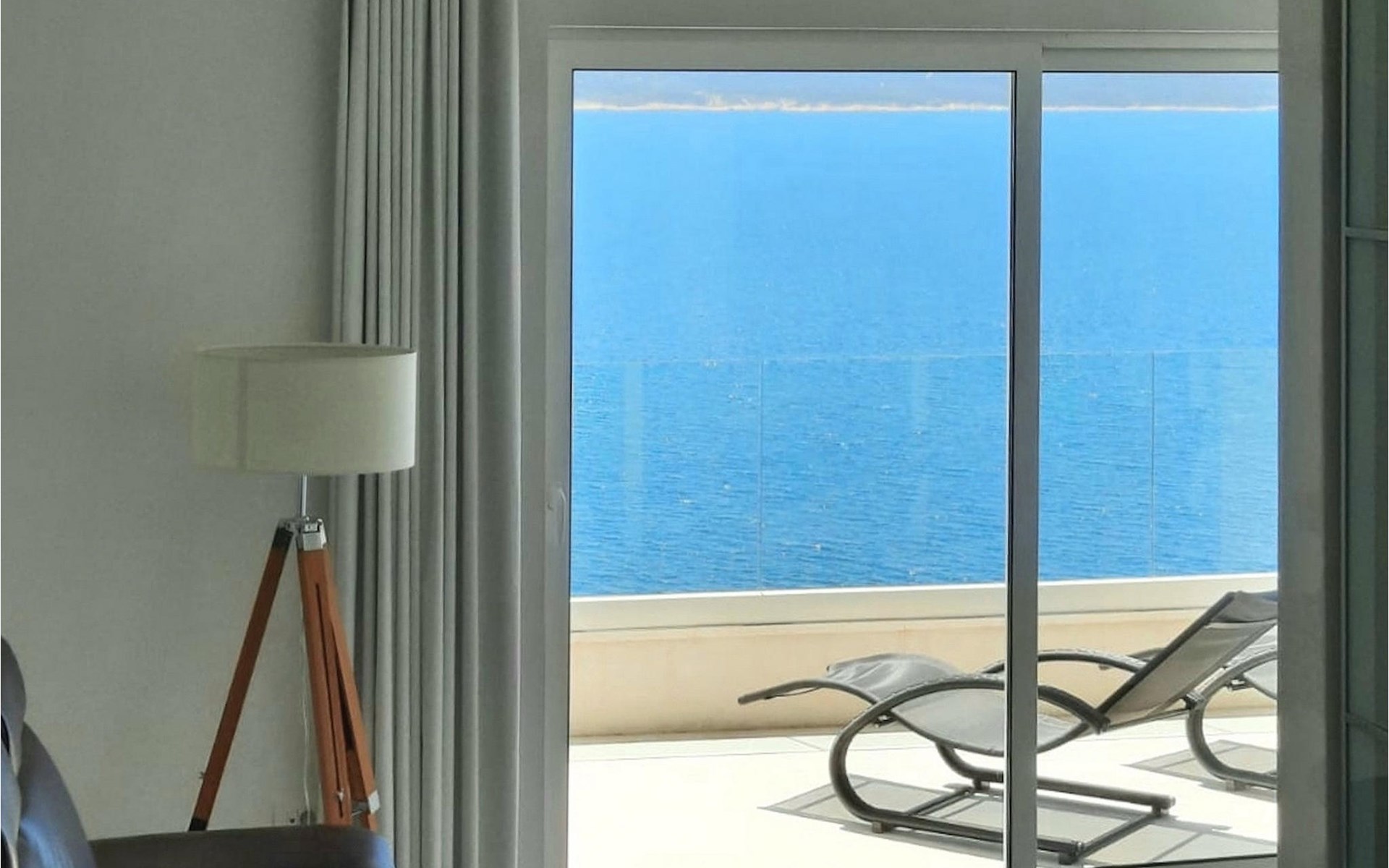 Op de bovenverdieping van de villa vind je twee slaapkamers, ook modern en neutraal ingericht, beide met een eigen badkamer. Een van de slaapkamers heeft zelfs een eigen balkon met loungemeubels en direct uitzicht op zee. Begroet rustige ochtenden met koffie op je eigen balkon met de eerste zonnestralen en een onovertroffen uitzicht.