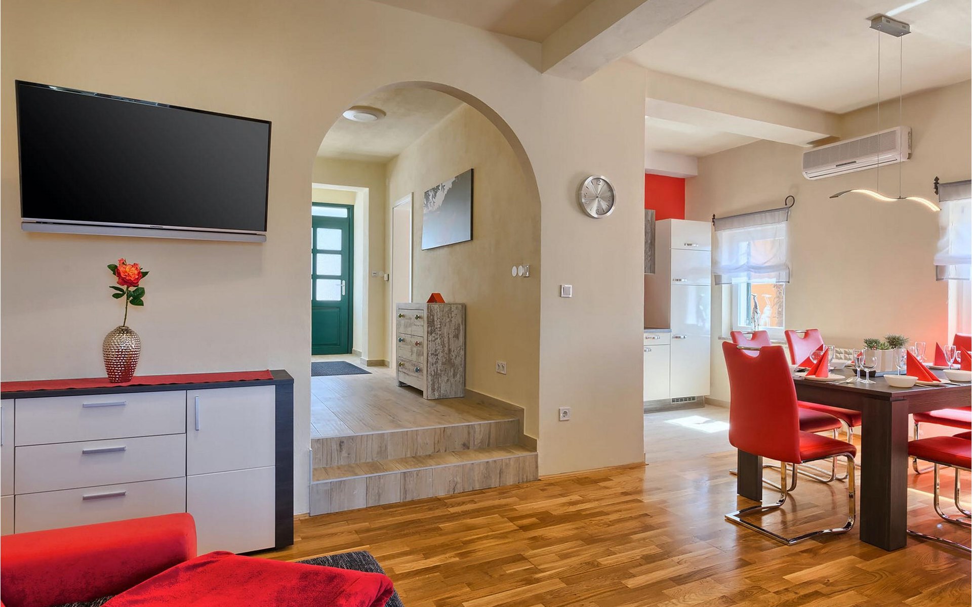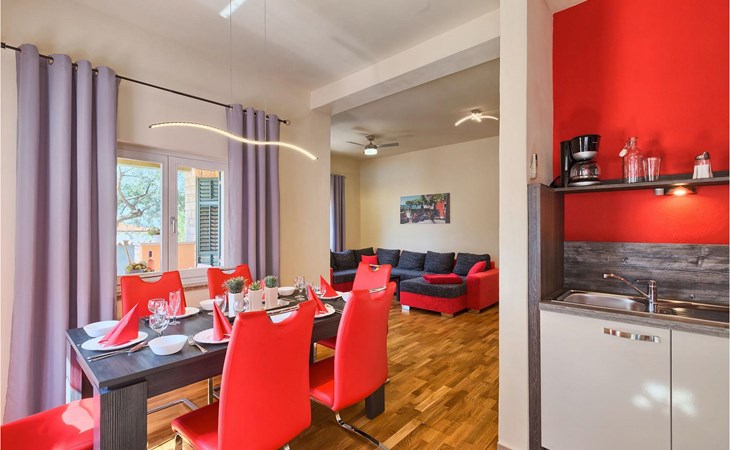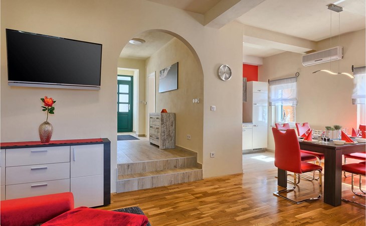 Villa Casa Susanna ligt in de gemeente Kastelir bij Pore. Het is perfect als uitvalsbasis als je de omgeving wilt verkennen. De villa is geschikt voor maximaal 8 personen. Het heeft 3 slaapkamers, elk met een tweepersoonsbed, en een slaapbank in de woonkamer waar nog 2 mensen kunnen slapen. Er is ook een volledig uitgeruste keuken en eethoek, die direct verbonden zijn met de moderne woonkamer, van waaruit je toegang hebt tot het terras. Daar kun je genieten van een ontspannen ontbijt of romantische avonden met een glas van je favoriete drankje met uitzicht op zee. De buitenruimte is perfect om van de zon te genieten of een duik te nemen in het zwembad. Naast het zwembad staat een heerlijke barbecue, ideaal voor het bereiden van heerlijke maaltijden die je kunt nuttigen in de schaduwrijke eethoek buiten. Om je verblijf nog aangenamer te maken, organiseren de eigenaren motor- en boottochten, een perfecte manier om het hele schiereiland Istrië te leren kennen. Neem bij aankomst contact op met de eigenaren voor meer informatie en prijzen, en geniet natuurlijk van je verblijf! De villa is gelegen in het charmante dorpje Katelir. Het ligt dicht bij Pore en de stranden. Pore is de grootste toeristische hotspot in Istrië, waar allerlei activiteiten te vinden zijn. Als u op zoek bent naar activiteiten, buitengewone ervaringen en een rijk cultureel erfgoed, dan is Pore met zijn 100 jaar ervaring in gastvrijheid
