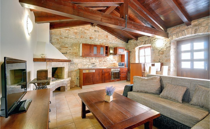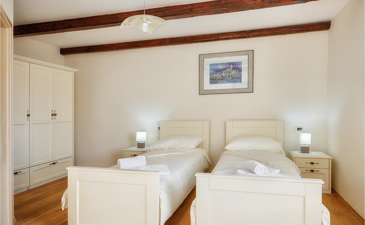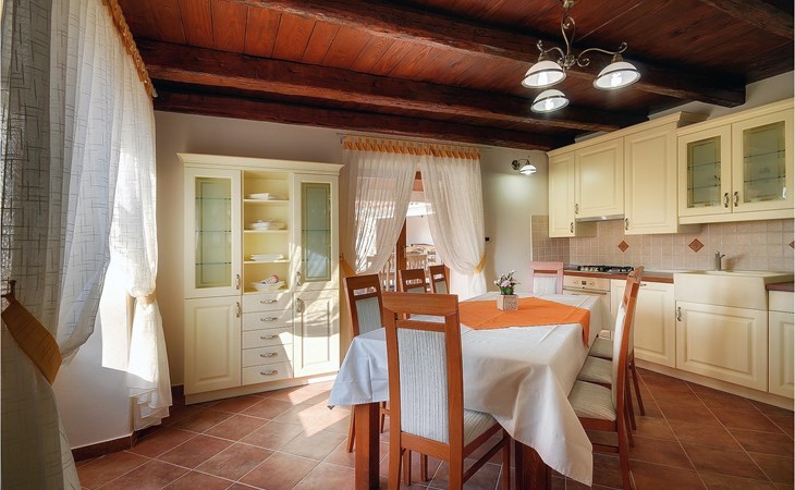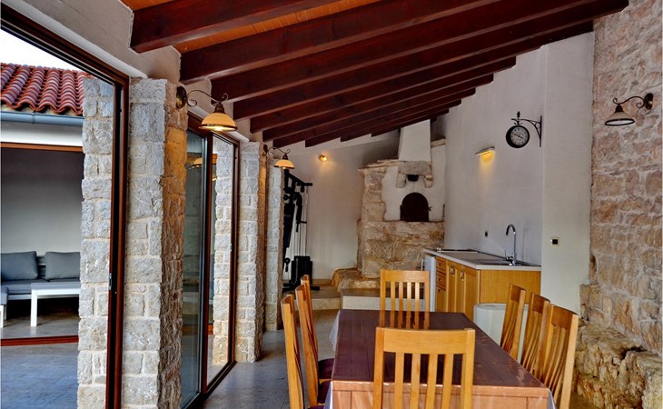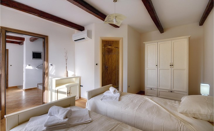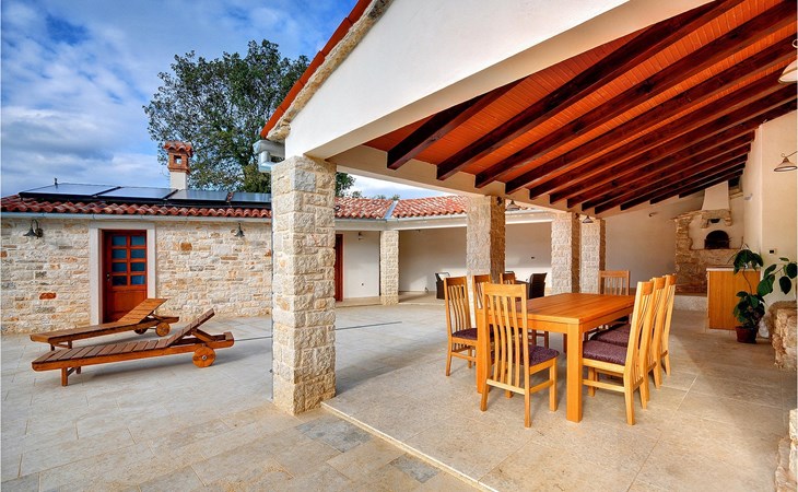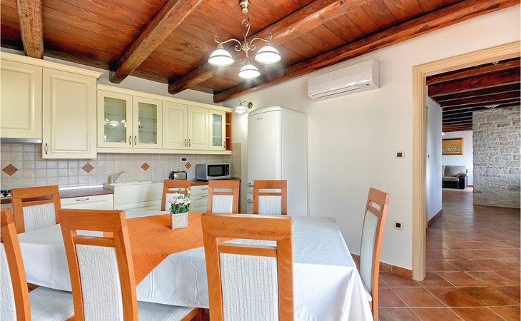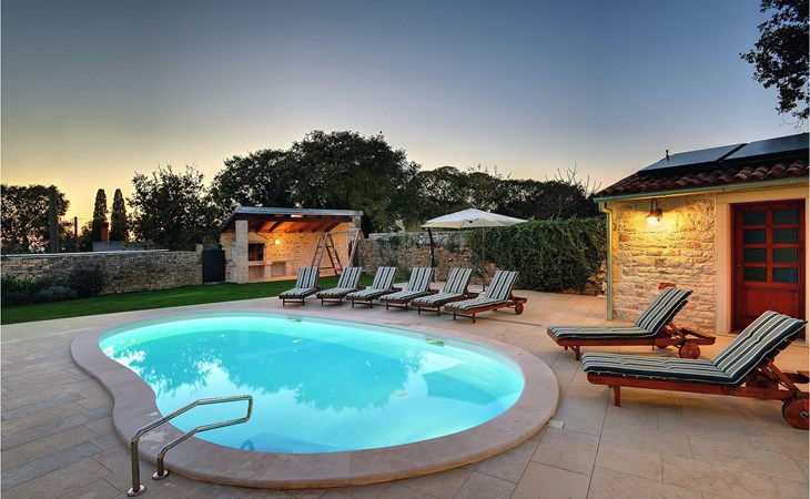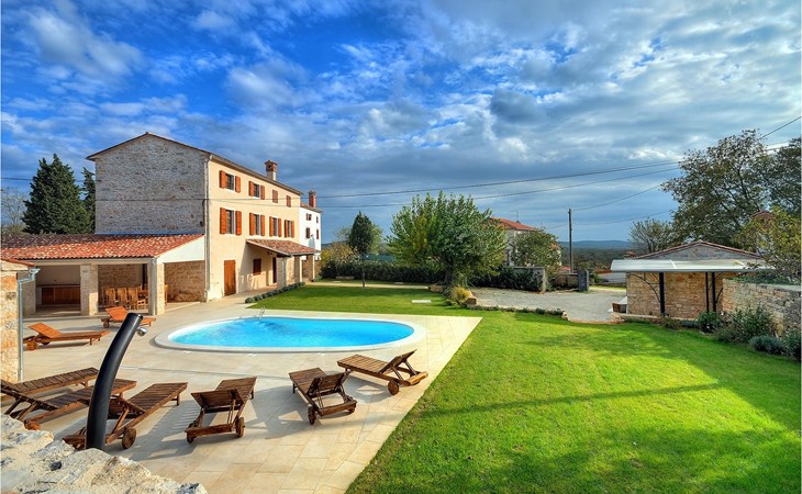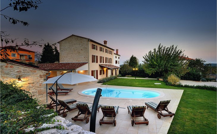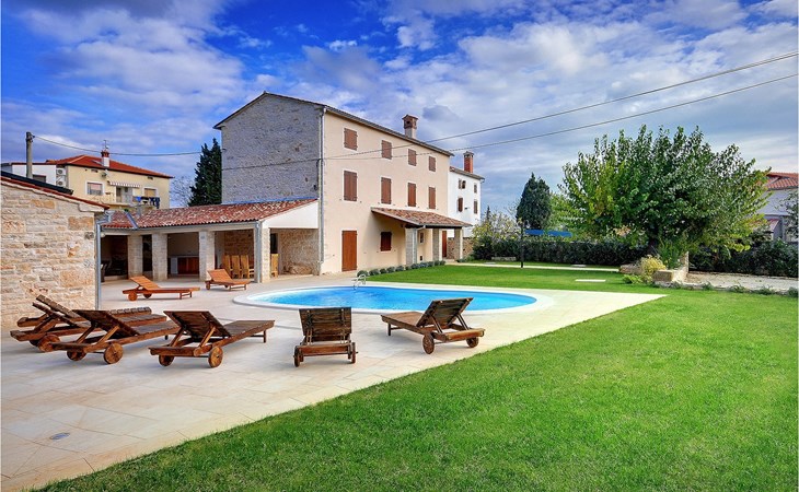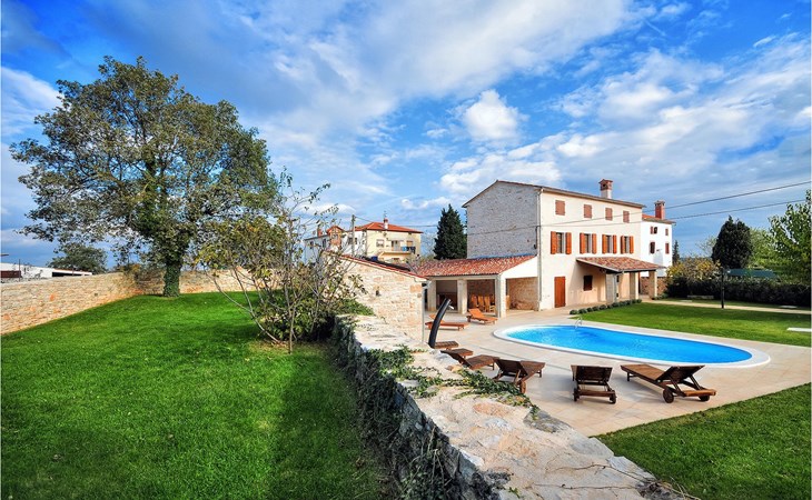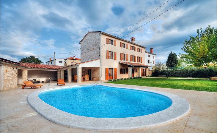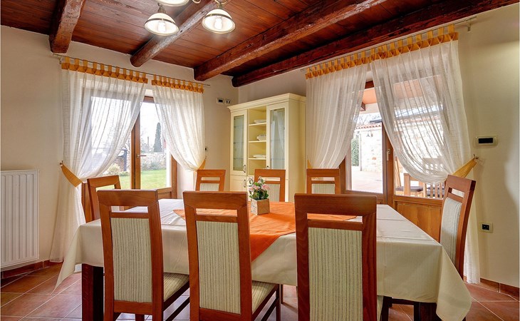 Dit prachtige, onlangs gerenoveerde pand ligt in een rustig dorpje in Istrië, op slechts een klein eindje rijden van de kust van Rovinj. Het pand is liefdevol gerenoveerd en biedt alle voordelen van het moderne leven: 6 en-suite badkamers, airconditioning en WiFi internet. De tuin is volledig omheind en biedt privacy rond het zwembad. Buiten is er ook een grote overdekte eet- en woonruimte met een buitenkeuken. De natuurstenen barbecue heeft ook een broodoven en pizzaoven. De woning bestaat uit twee gebouwen in dezelfde tuin. In het ene bevindt zich een tweepersoonsslaapkamer, een badkamer, een keuken en een woongedeelte - ideaal als een stel meer privacy nodig heeft. Het grote gebouw heeft 4 slaapkamers, een keuken en een grote woonkamer met open haard. Alle kamers hebben een eigen badkamer en airconditioning. De tuin heeft een irrigatiesysteem zodat het gras altijd mooi groen is. Het strand in Lim Fjord is maar een klein stukje rijden (5 km) en een goed restaurant is in de directe omgeving.