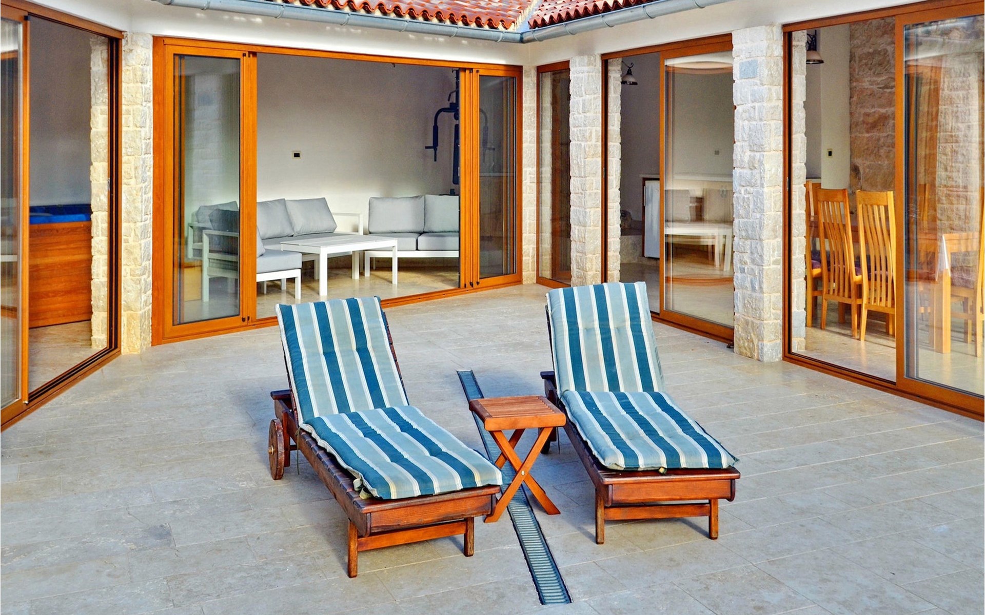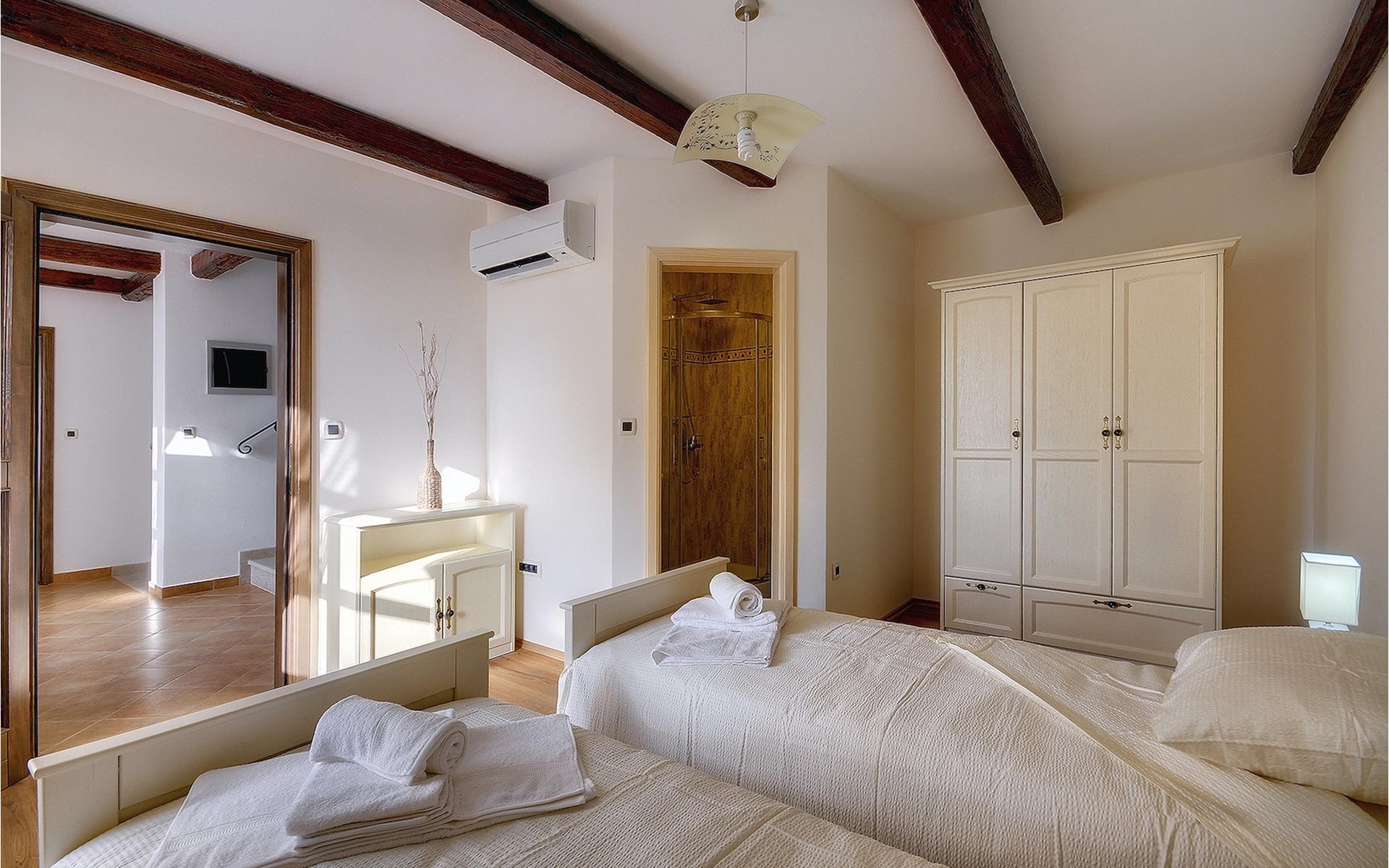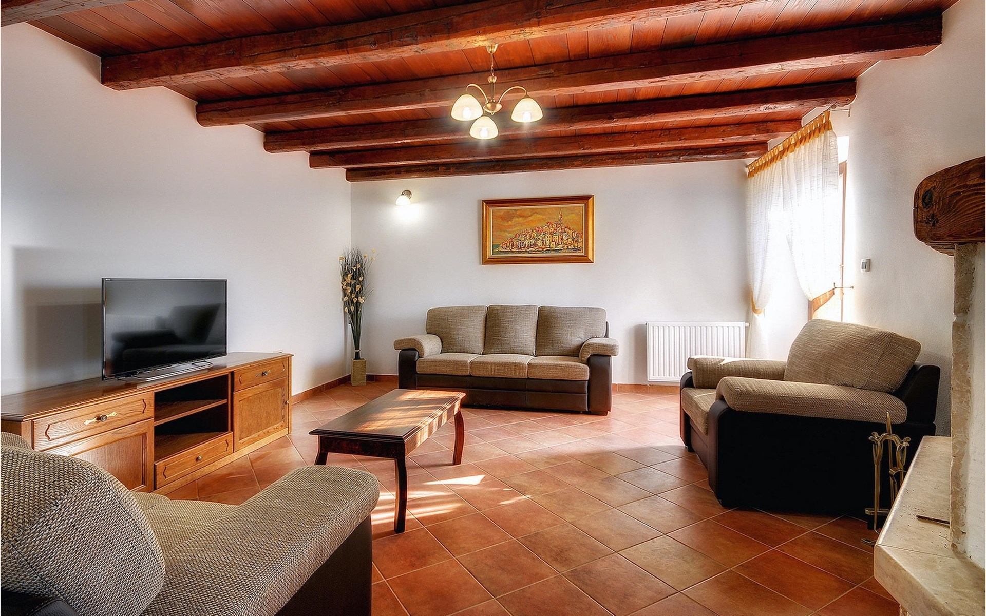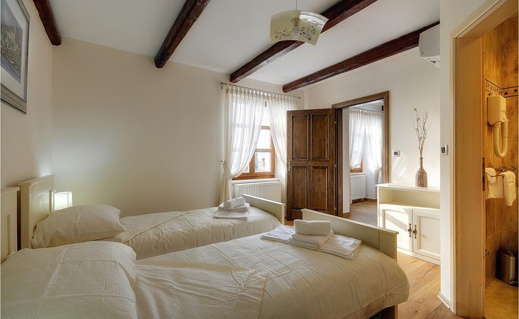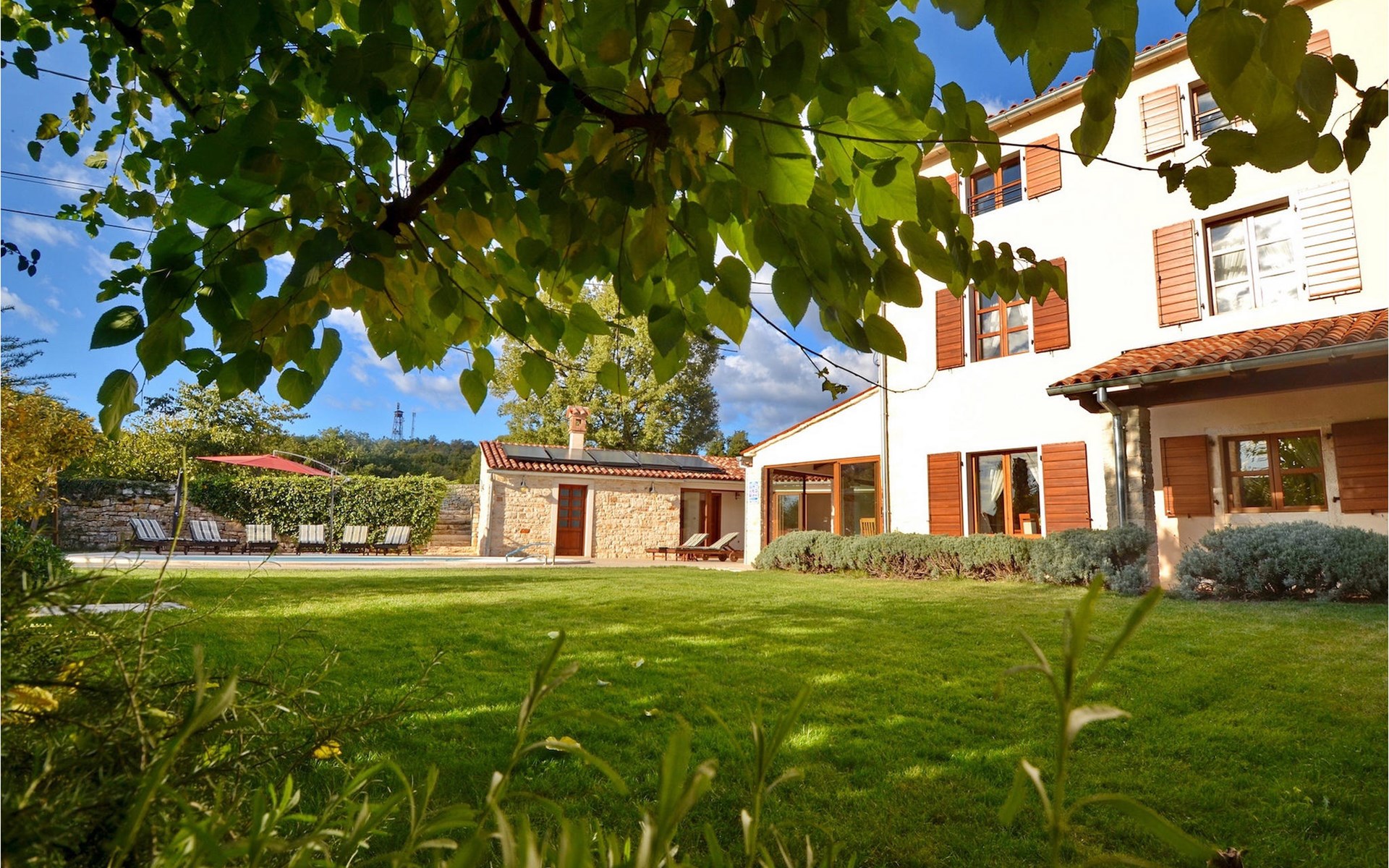 Dit prachtige, onlangs gerenoveerde pand ligt in een rustig dorpje in Istrië, op slechts een klein eindje rijden van de kust van Rovinj. Het pand is liefdevol gerenoveerd en biedt alle voordelen van het moderne leven: 6 en-suite badkamers, airconditioning en WiFi internet. De tuin is volledig omheind en biedt privacy rond het zwembad. Buiten is er ook een grote overdekte eet- en woonruimte met een buitenkeuken. De natuurstenen barbecue heeft ook een broodoven en pizzaoven. De woning bestaat uit twee gebouwen in dezelfde tuin. In het ene bevindt zich een tweepersoonsslaapkamer, een badkamer, een keuken en een woongedeelte - ideaal als een stel meer privacy nodig heeft. Het grote gebouw heeft 4 slaapkamers, een keuken en een grote woonkamer met open haard. Alle kamers hebben een eigen badkamer en airconditioning. De tuin heeft een irrigatiesysteem zodat het gras altijd mooi groen is. Het strand in Lim Fjord is maar een klein stukje rijden (5 km) en een goed restaurant is in de directe omgeving.