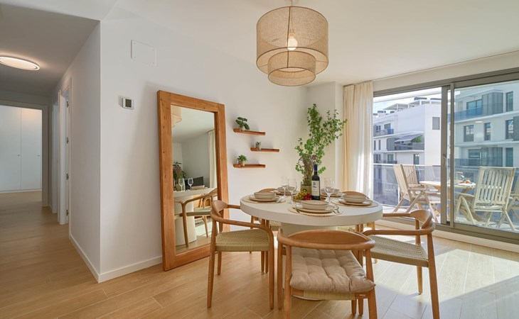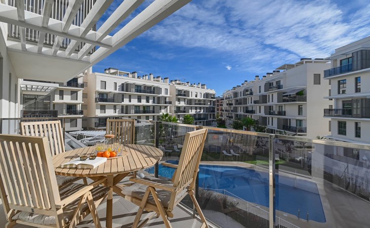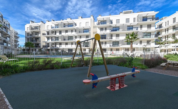 Modern en comfortabel appartement met gemeenschappelijk zwembad in Denia, Costa Blanca, Spanje voor 6 personen. Het appartement is gelegen in een residentiële strandomgeving, dicht bij restaurants en bars, 1 km van Playa de la Marineta strand en 1 km van de Middellandse Zee.