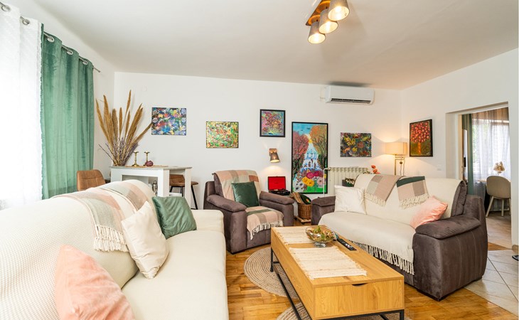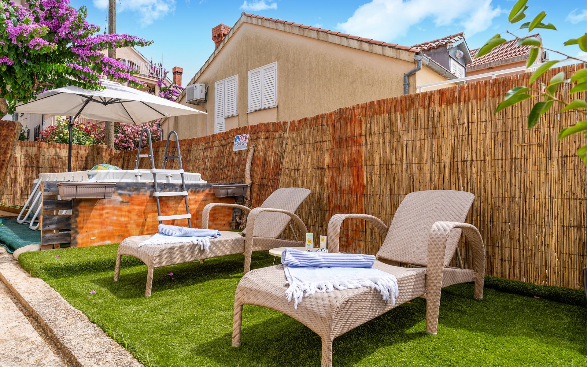 De vriendelijke vakantiewoning maakt indruk met zijn rustige ligging en een sfeer die pure ontspanning belooft. De smaakvolle inrichting combineert moderne voorzieningen met kleurrijke en decoratieve flair. De lichte woonruimtes nodigen uit om te blijven hangen, terwijl verschillende terrassen, waaronder een met een gemetselde barbecue in de gemeenschappelijke tuin, ideale plekken bieden om 's avonds gezellig samen te zijn. Het zwembad in de tuin biedt verfrissing en zwemplezier voor het hele gezin.