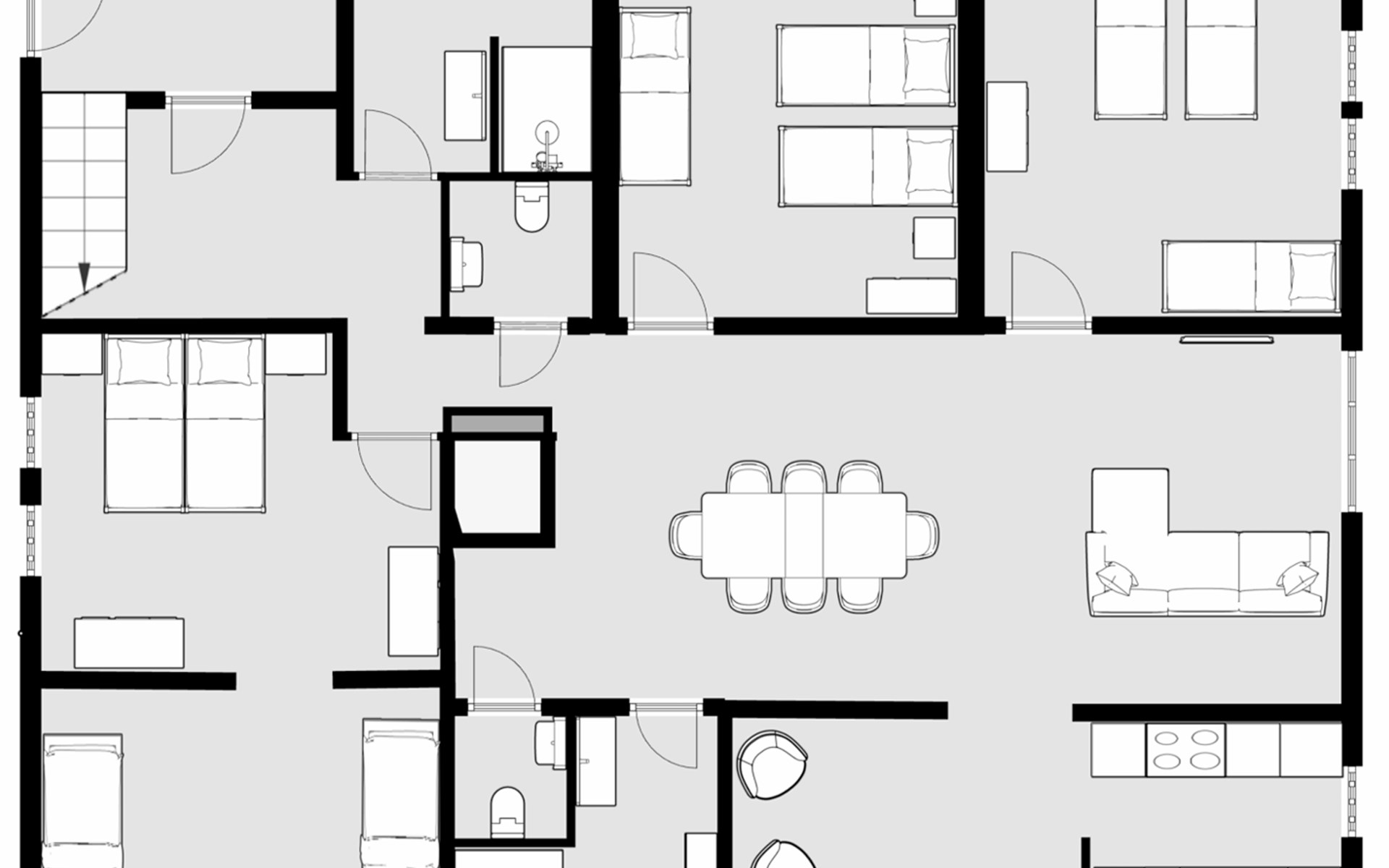 Dadurch dass es mehrere Bäder gibt und die Toiletten nochmal separat ausgebracht sind, ist es super sich auch mit einer großen Gruppe zu organisieren.
