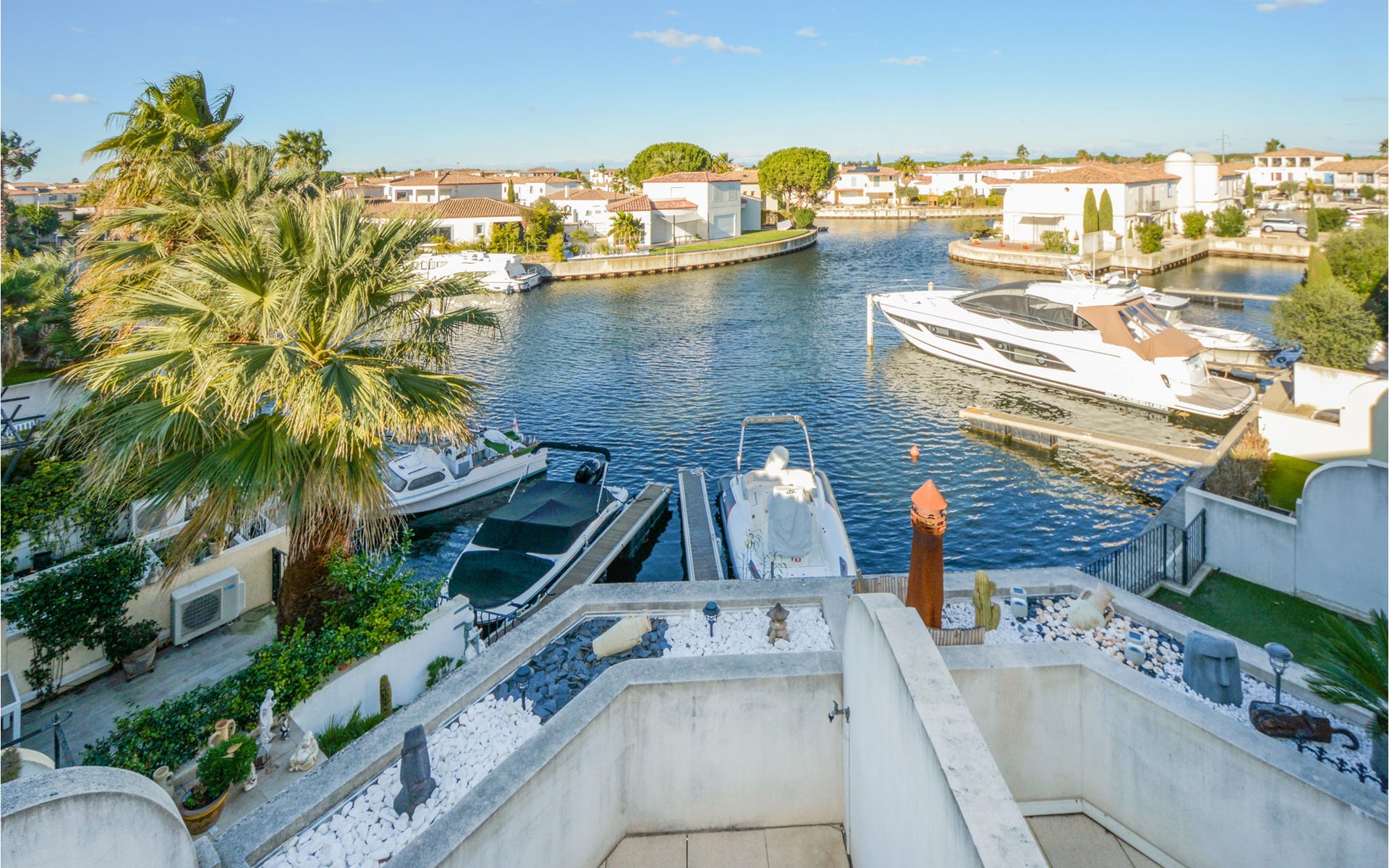 De woonkamers bevinden zich op de eerste en tweede verdieping, en er is een privégarage op de begane grond. Dit mooie vakantiehuis is licht en verfijnd ingericht en heeft 3 slaapkamers en 2 badkamers op de eerste verdieping. Op de tweede verdieping bevindt zich de aangename woonkamer en open keuken. Elk van deze verdiepingen heeft een panoramisch terras ingericht met meubilair van hoge kwaliteit. De residentie wordt gekenmerkt door traditionele architectuur en kwaliteitsdiensten die u vindt langs het Rhône-kanaal in Sète.